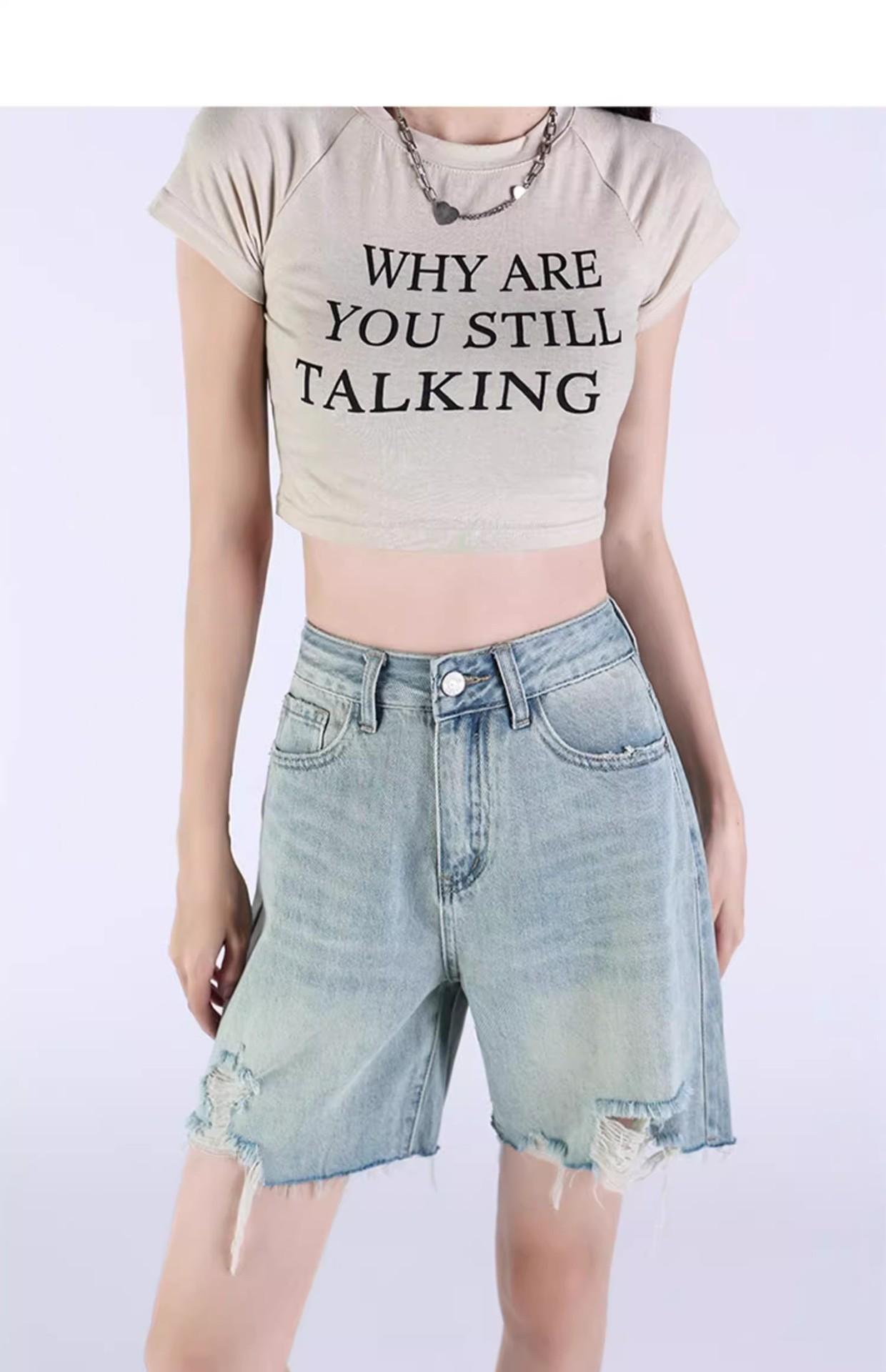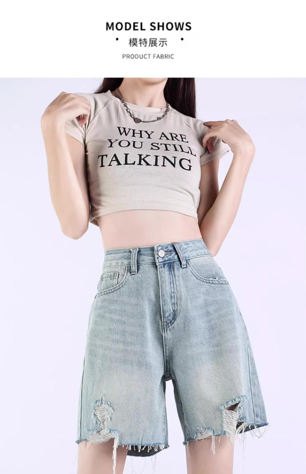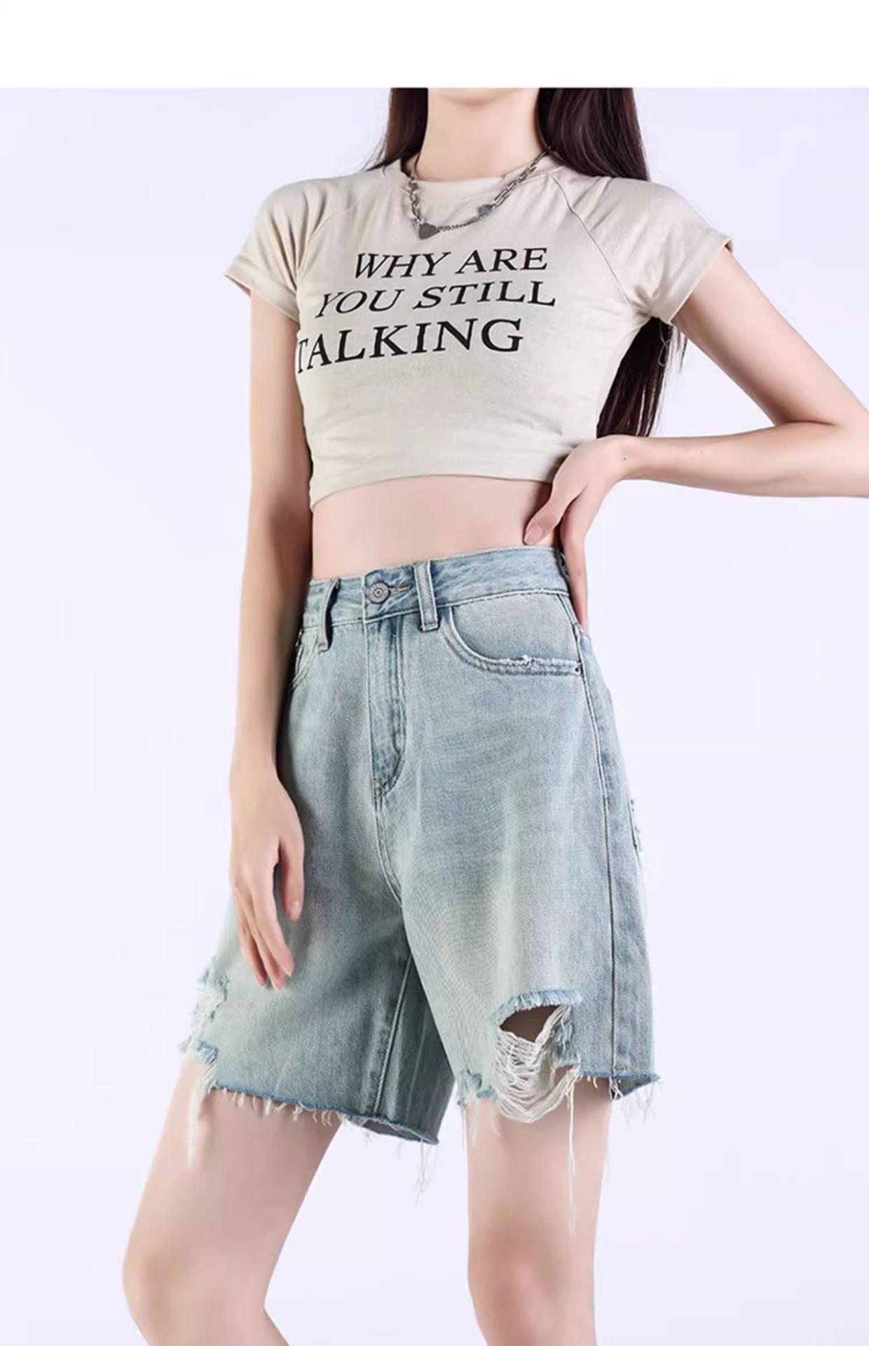 Pantalones cortos vaqueros Tencel azul claro para mujer, novedad de verano 2024, cintura alta, sueltos, adelgazantes, casuales, rectos
