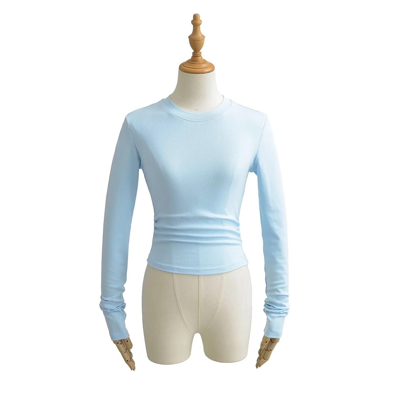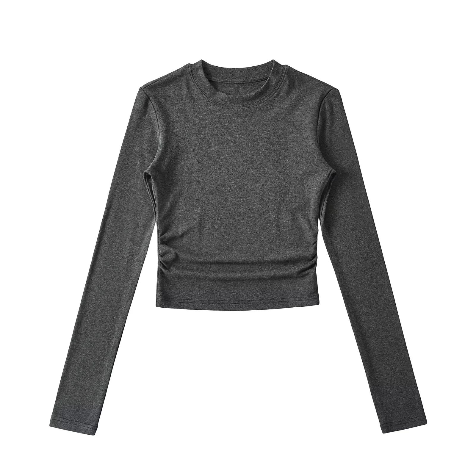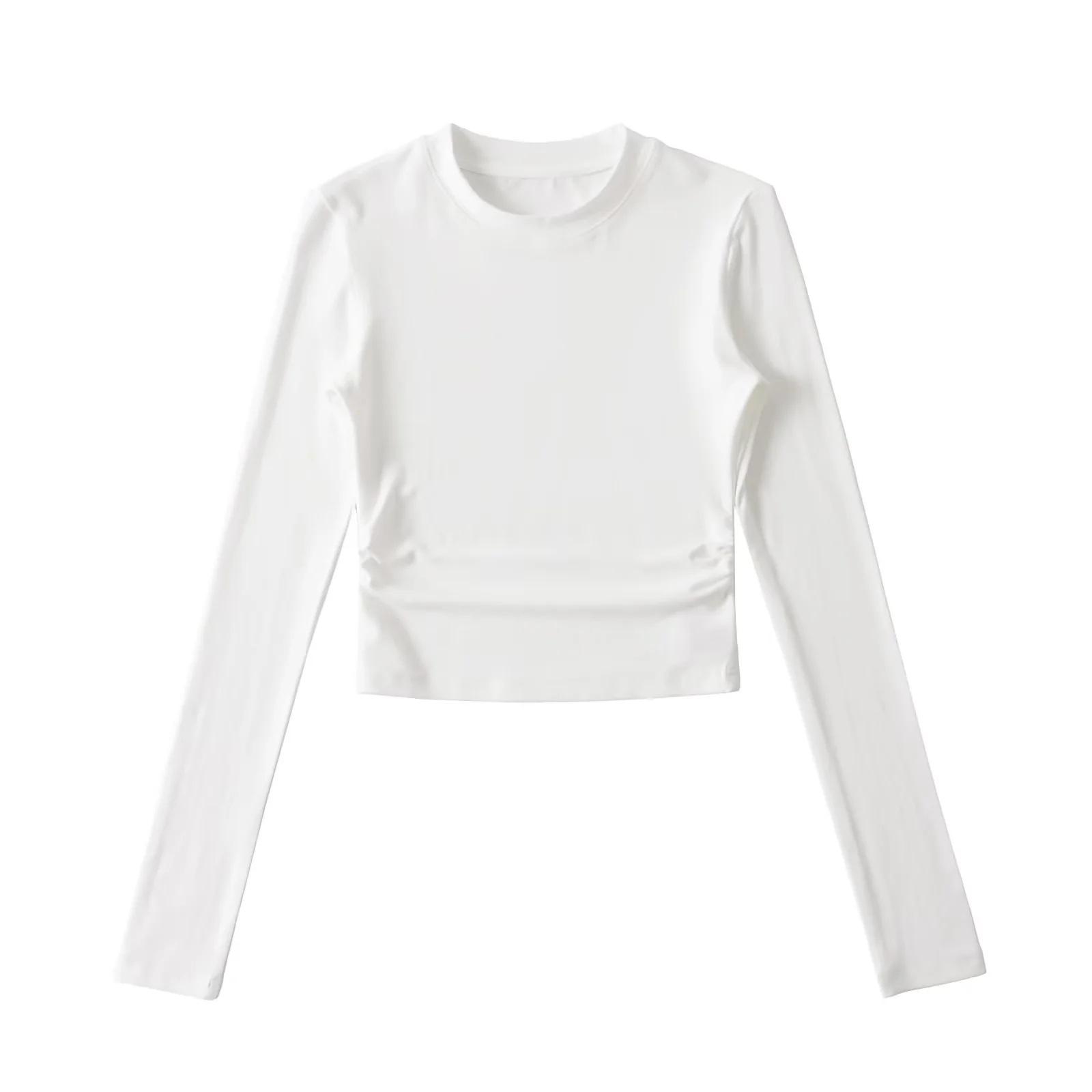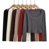 Camiseta de manga larga para mujer, otoño e invierno, ajustada, con base interior ajustada, diseño corto para chica sexy, con hombros descubiertos