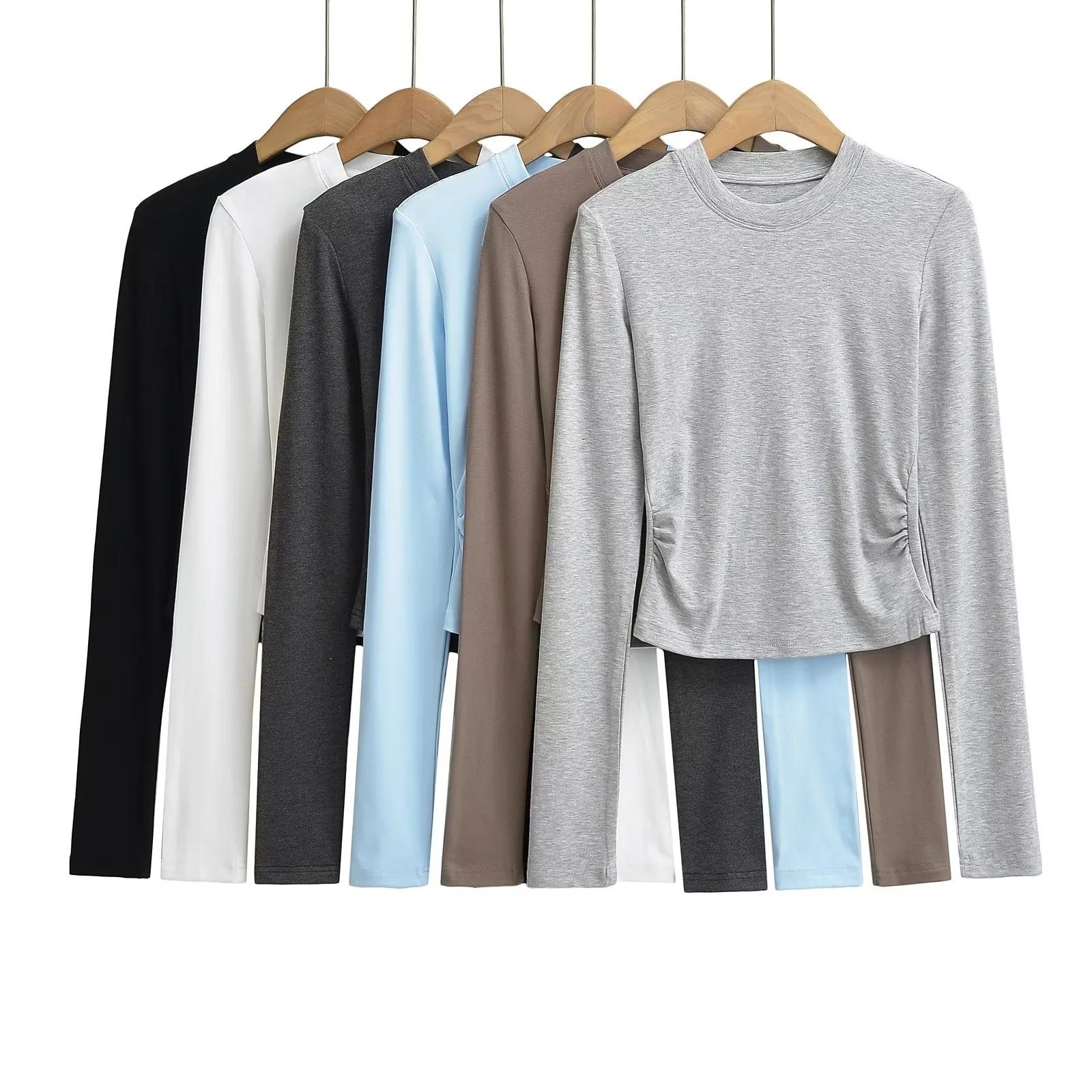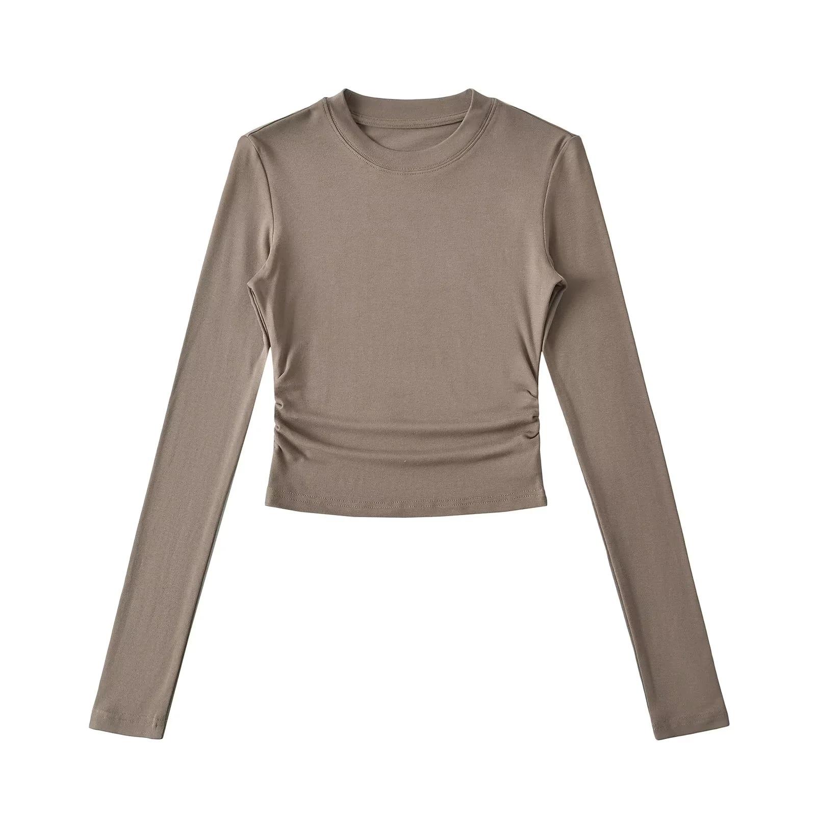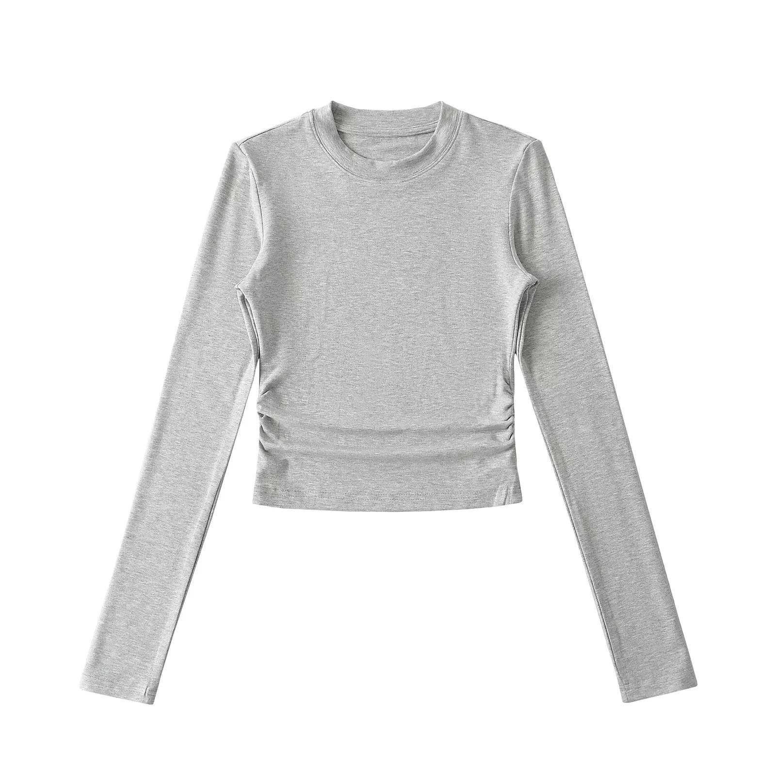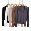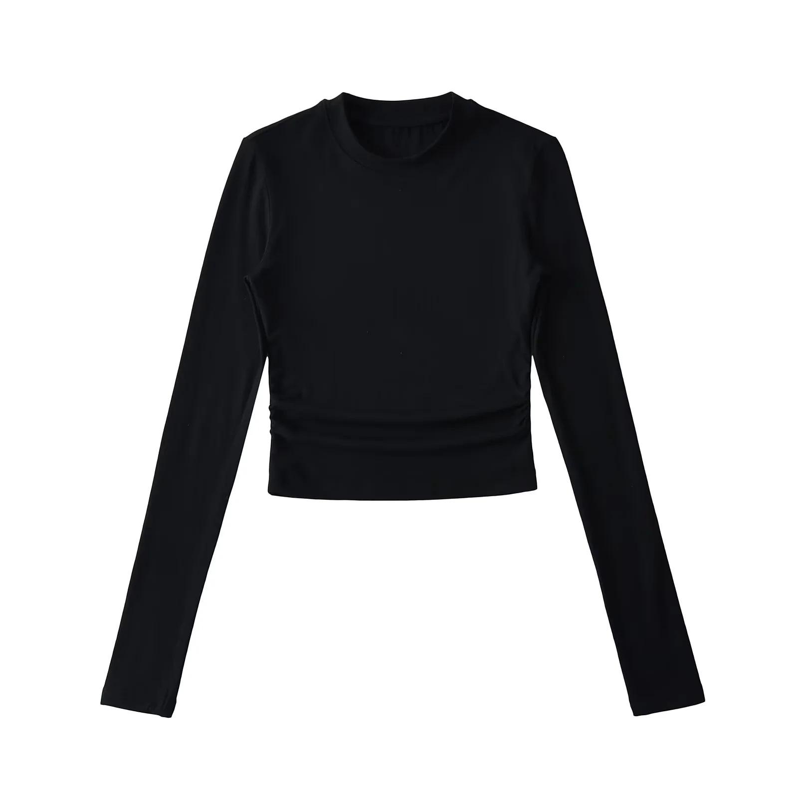 Camiseta de manga larga para mujer, otoño e invierno, ajustada, con base interior ajustada, diseño corto para chica sexy, con hombros descubiertos