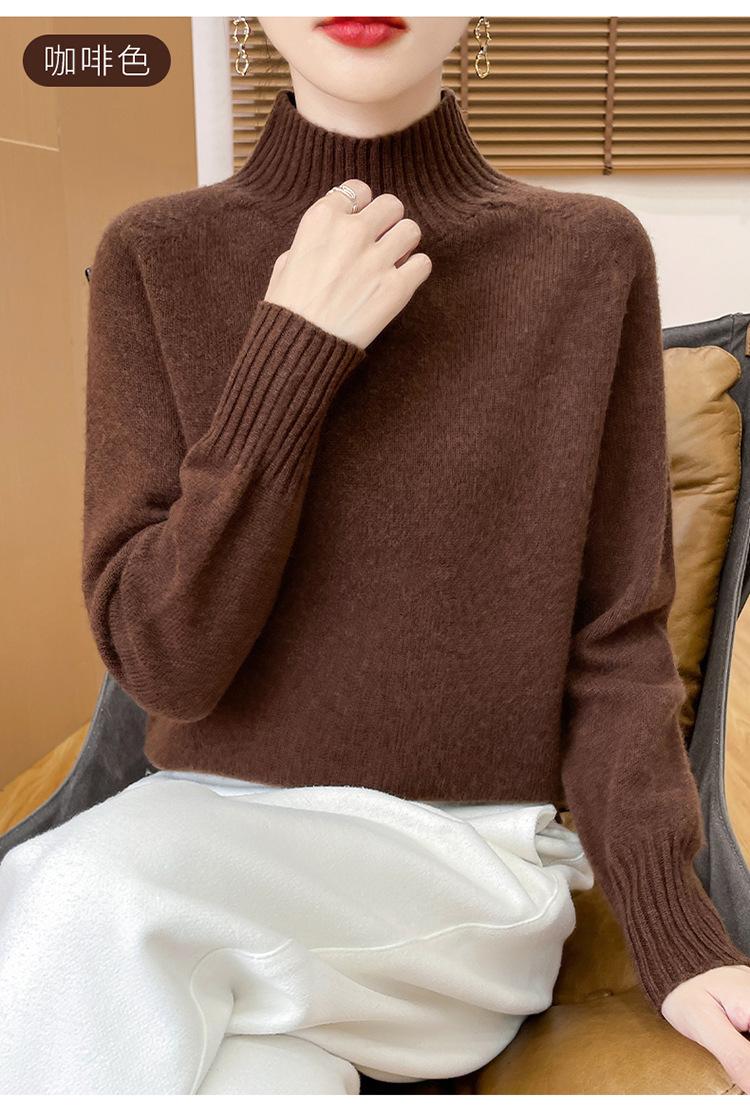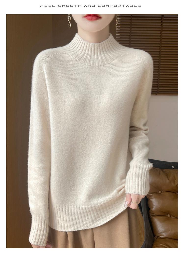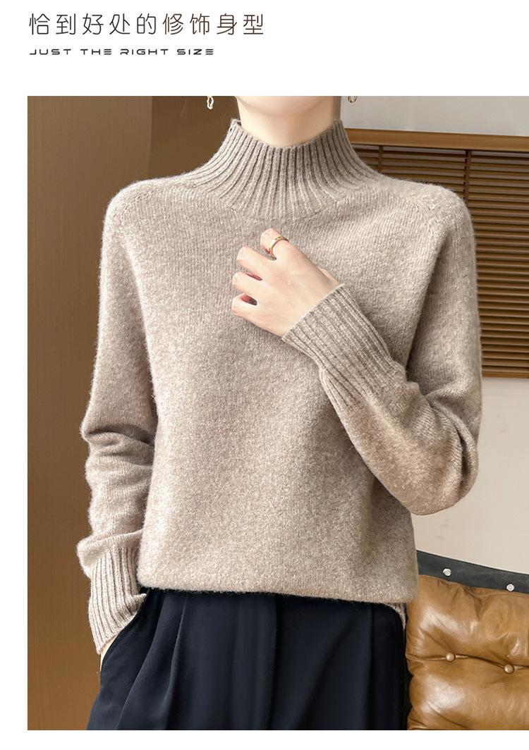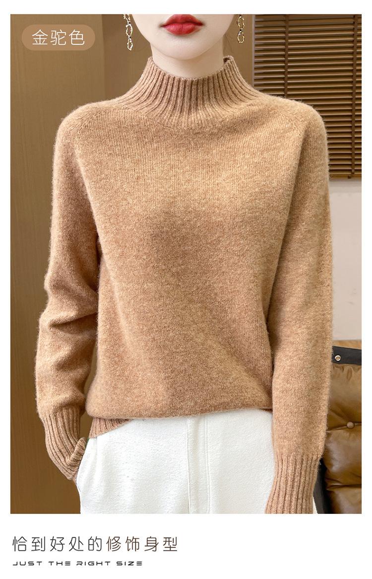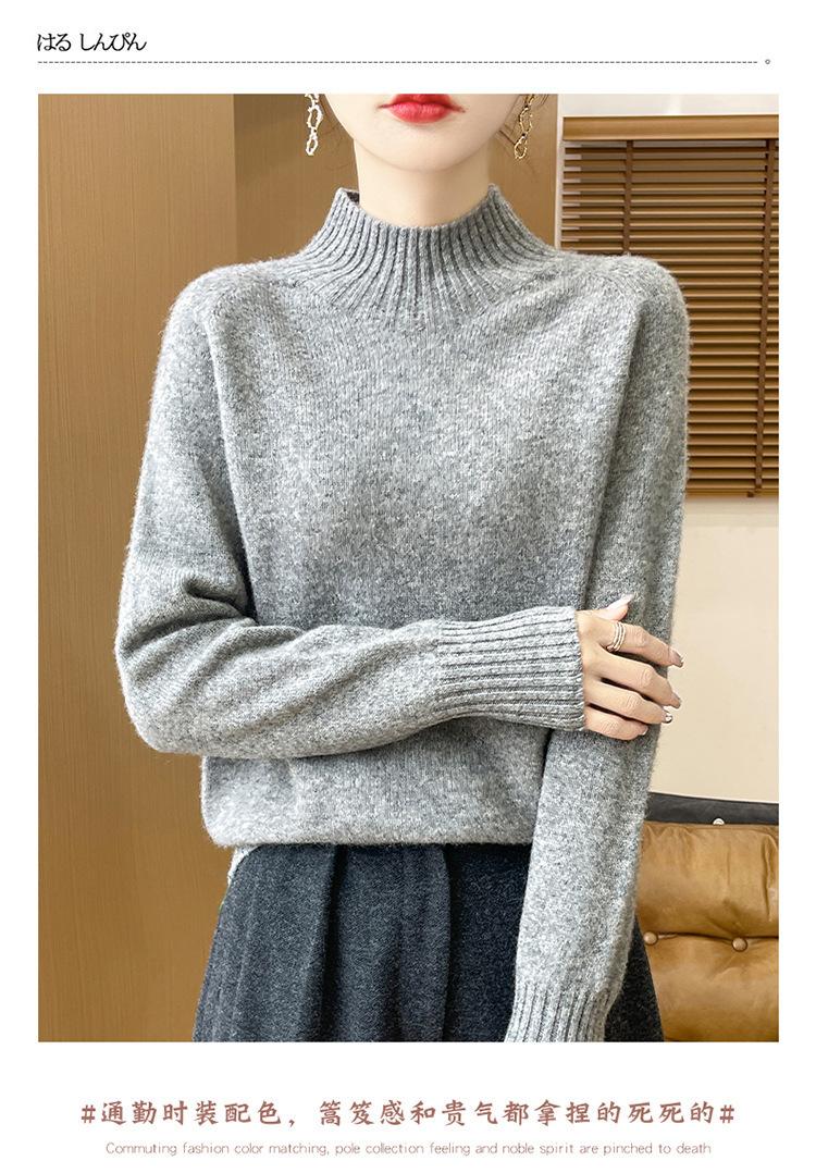 Suéter nuevo de otoño e invierno grueso de medio cuello alto para mujer, suéter de punto holgado, fabricante de suéter de cuello medio