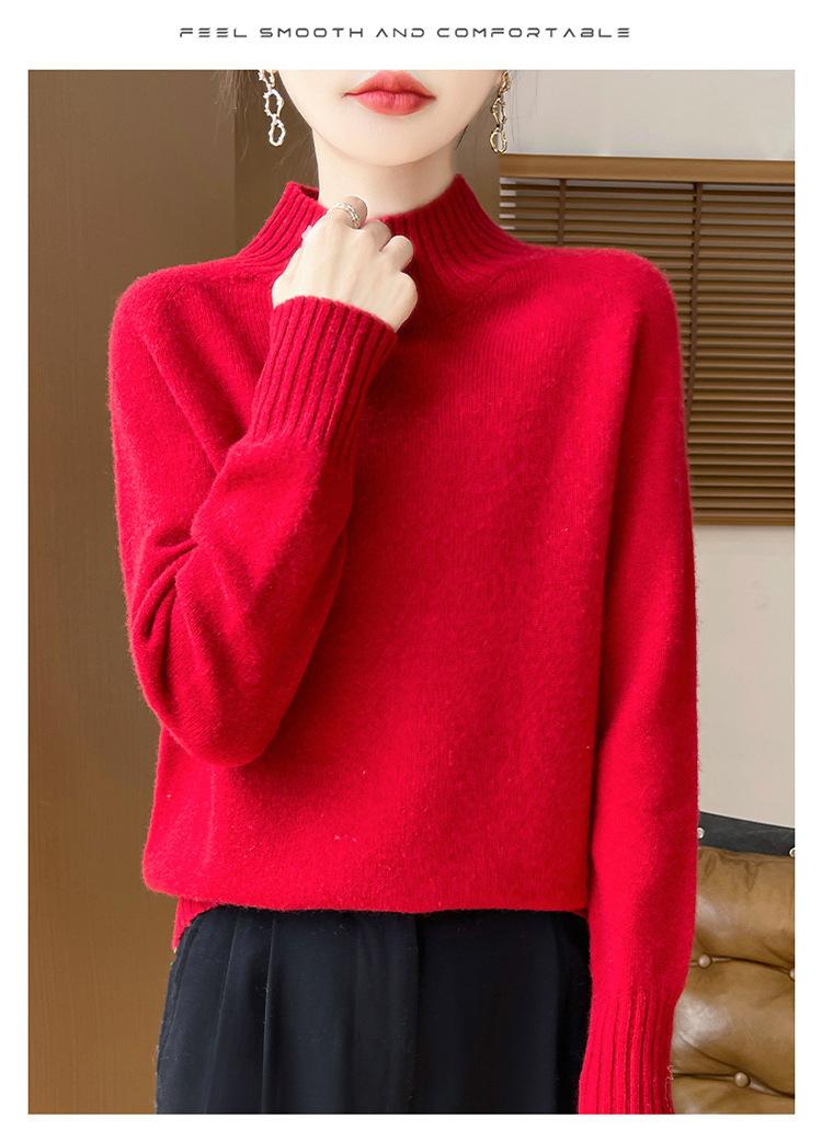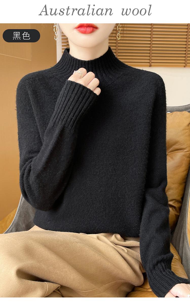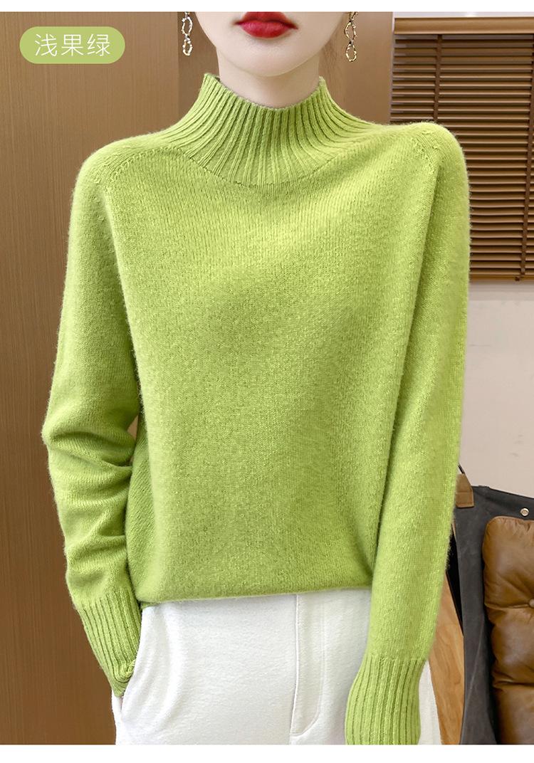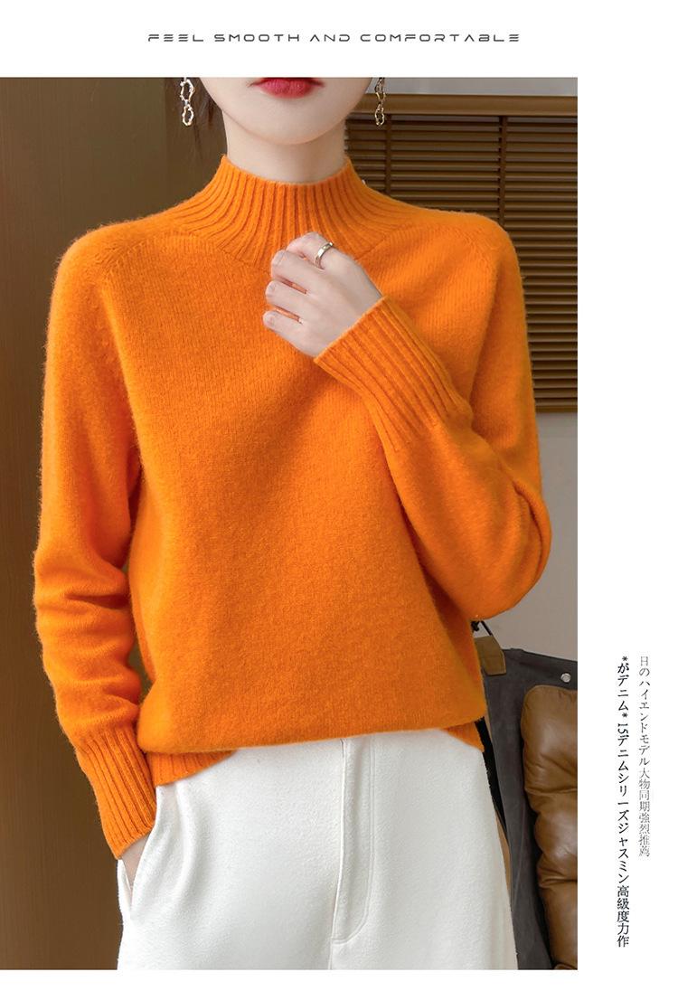 Suéter nuevo de otoño e invierno grueso de medio cuello alto para mujer, suéter de punto holgado, fabricante de suéter de cuello medio