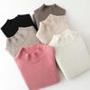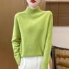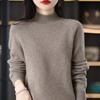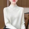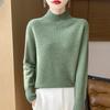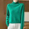 Otoño e Invierno Nuevo Tejido Grueso de Siete Agujas 100% Lana Pura Manga Larga Base Clásico Color Puro Cuello Alto Medio Suéter Jersey de Mujer