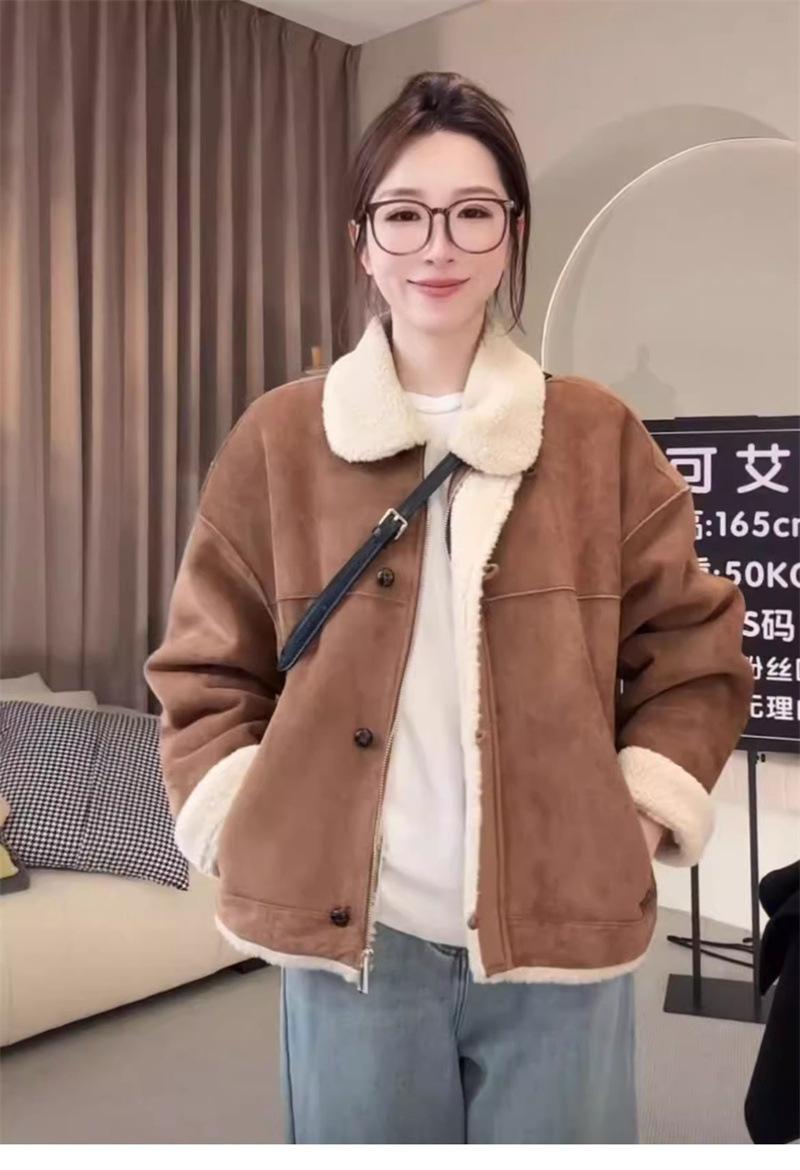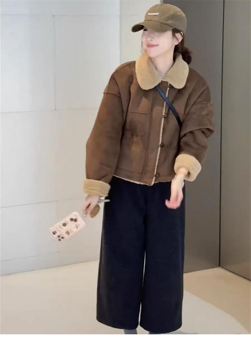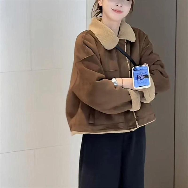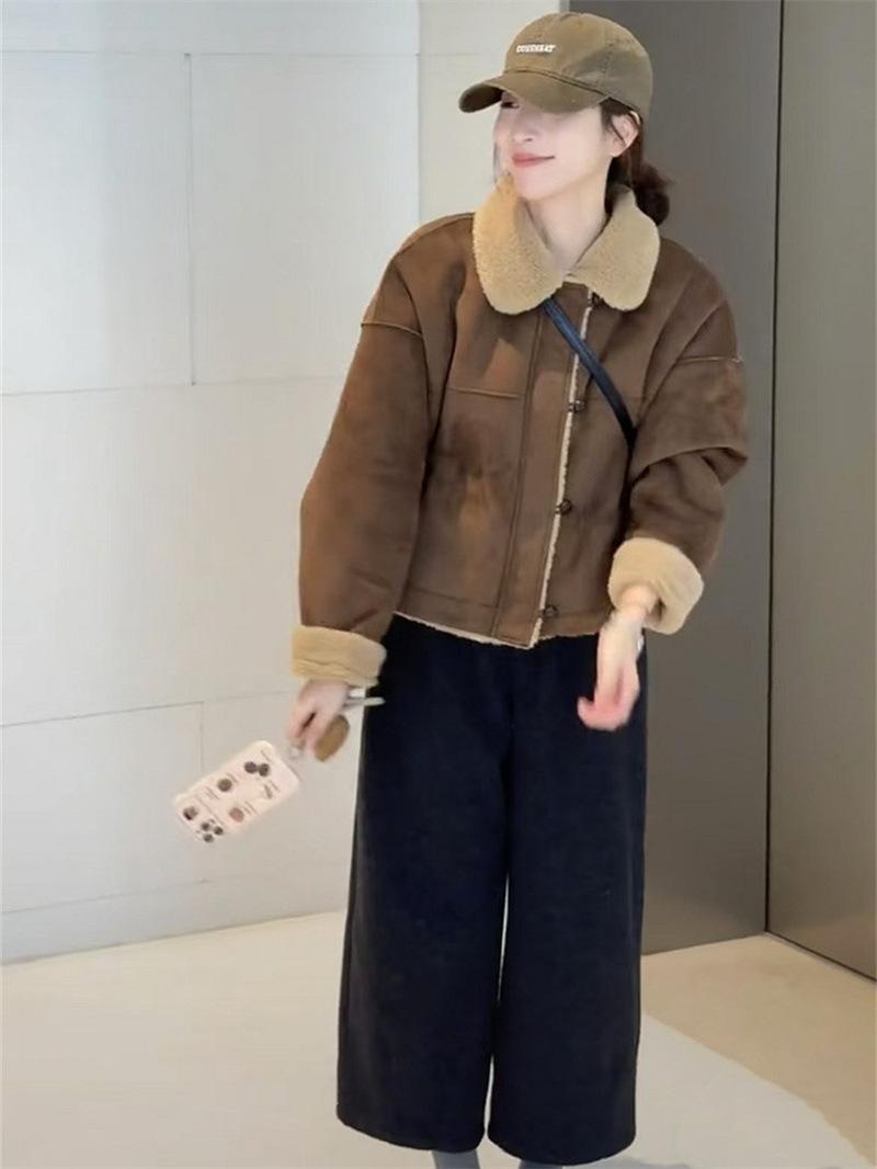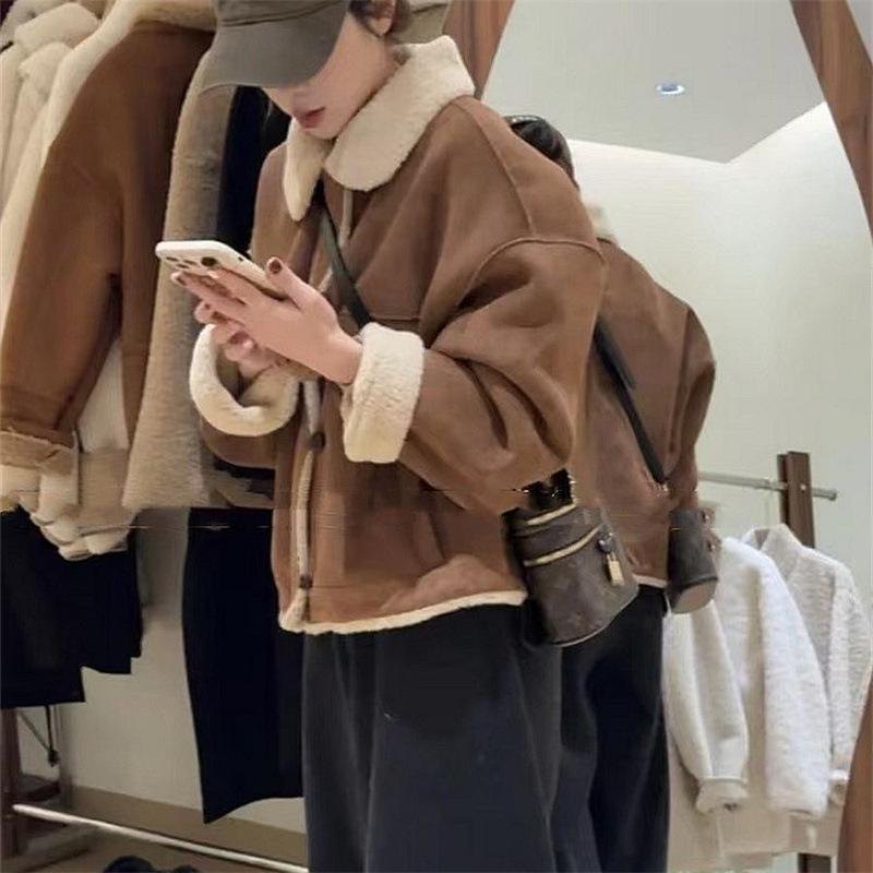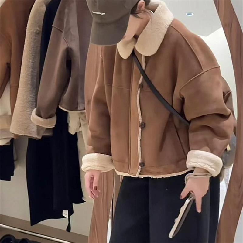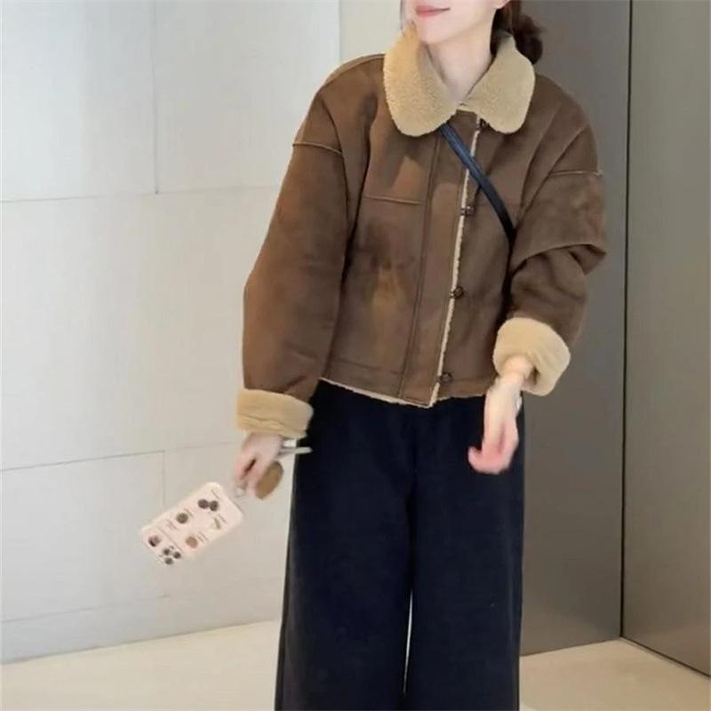 Abrigo de piel de cordero de algodón para mujer, novedad de invierno 2024, retro, holgado, adelgazante, de piel de ciervo, de polar, moderno.