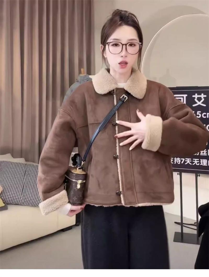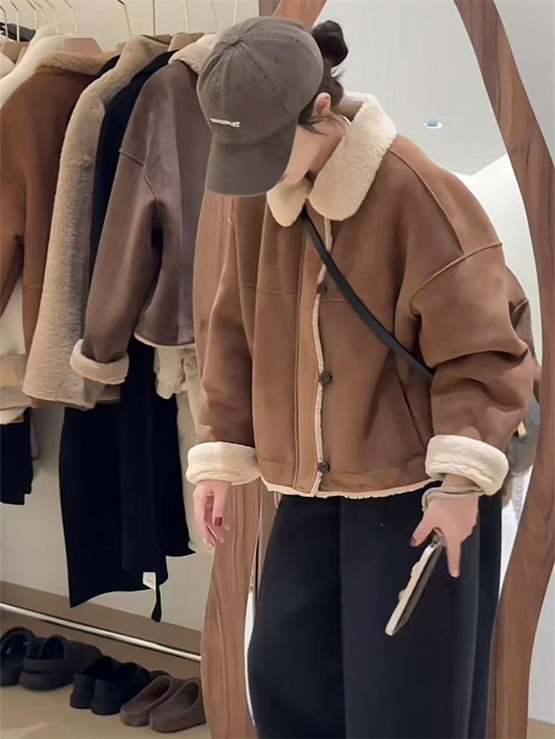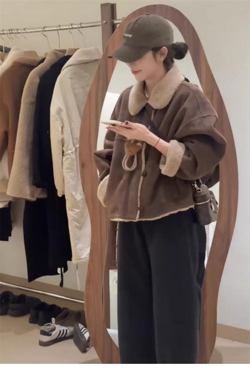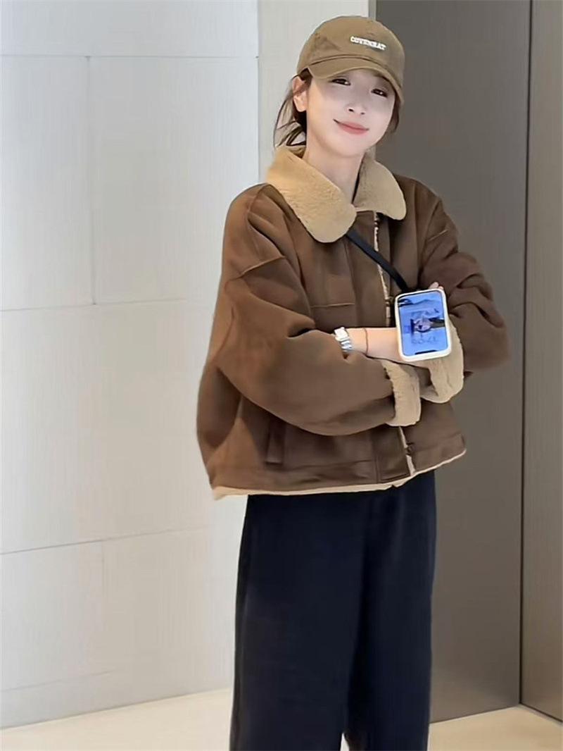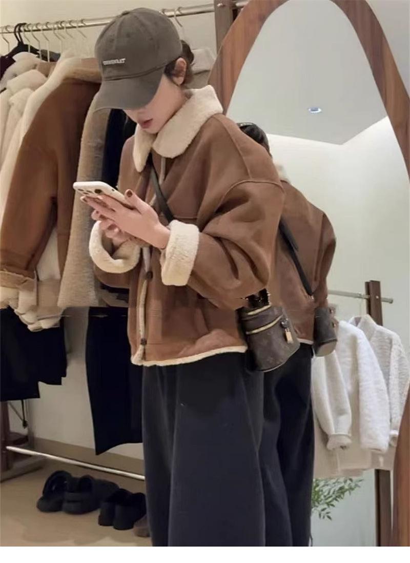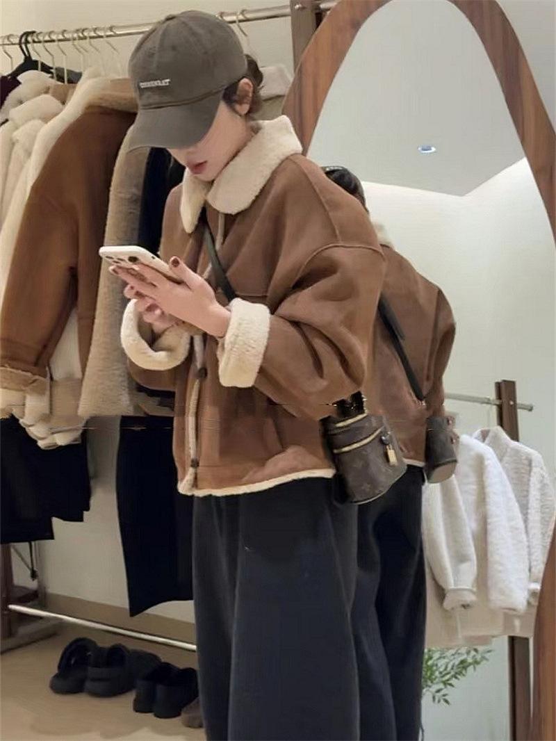 Abrigo de piel de cordero de algodón para mujer, novedad de invierno 2024, retro, holgado, adelgazante, de piel de ciervo, de polar, moderno.
