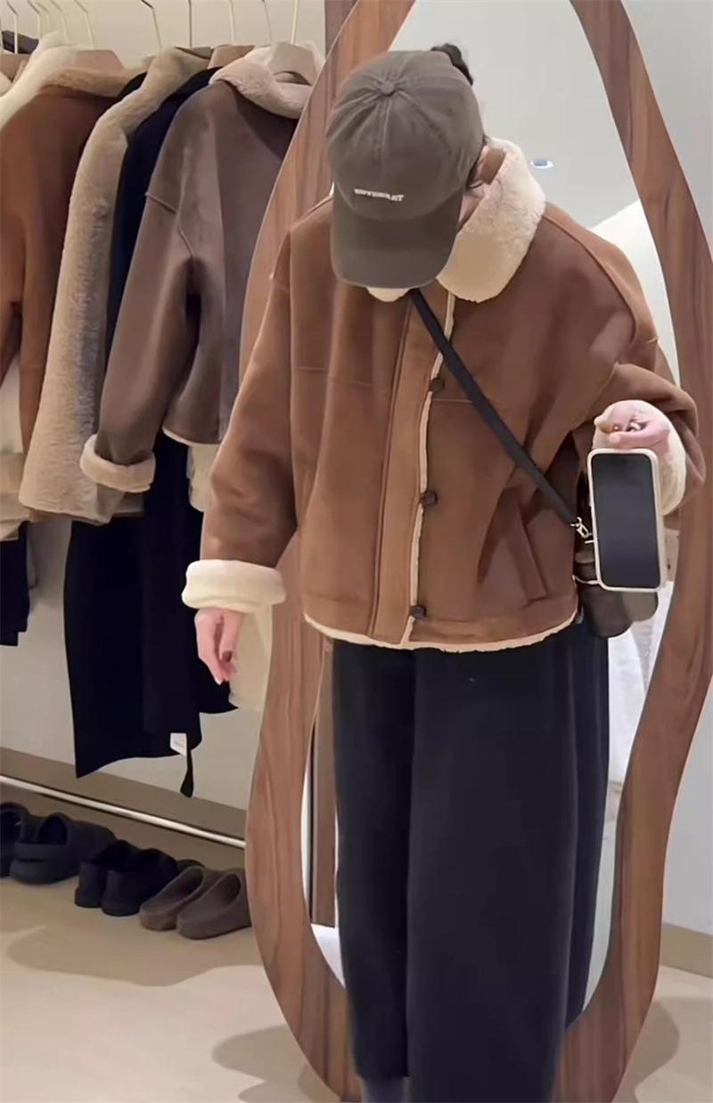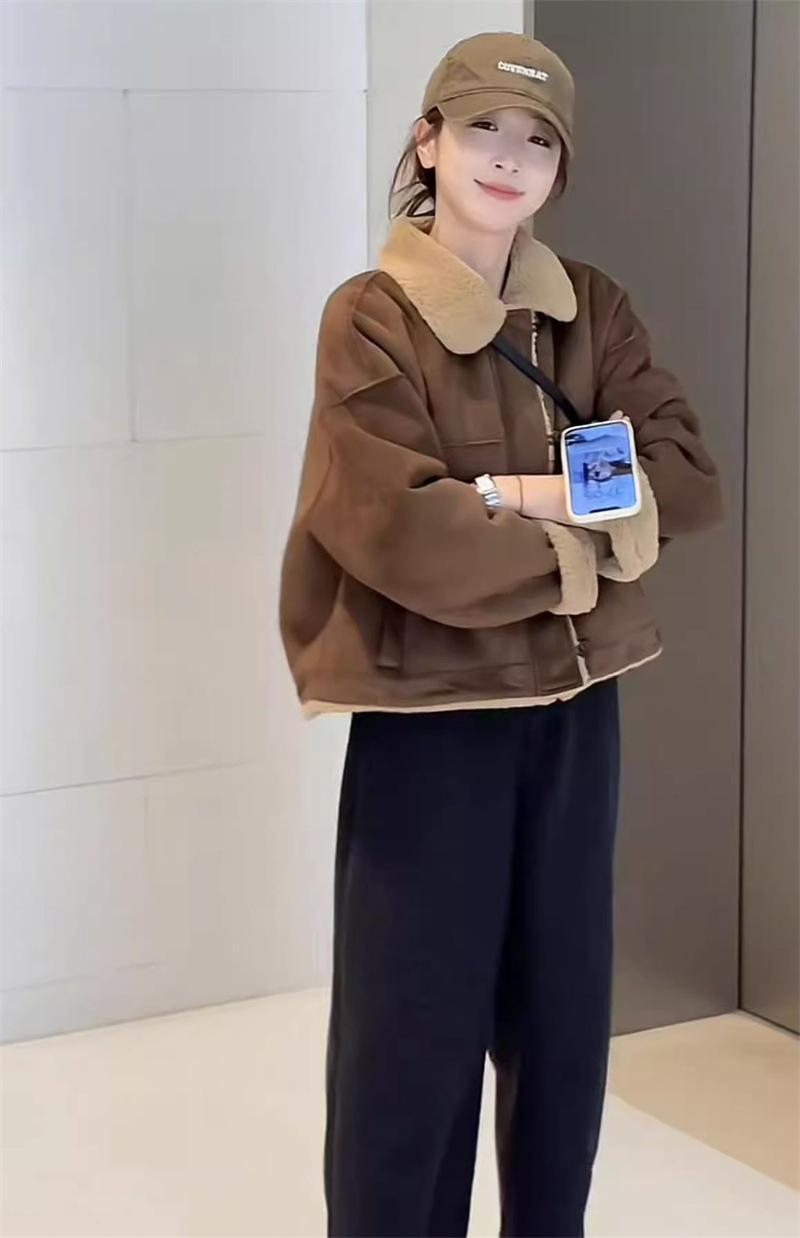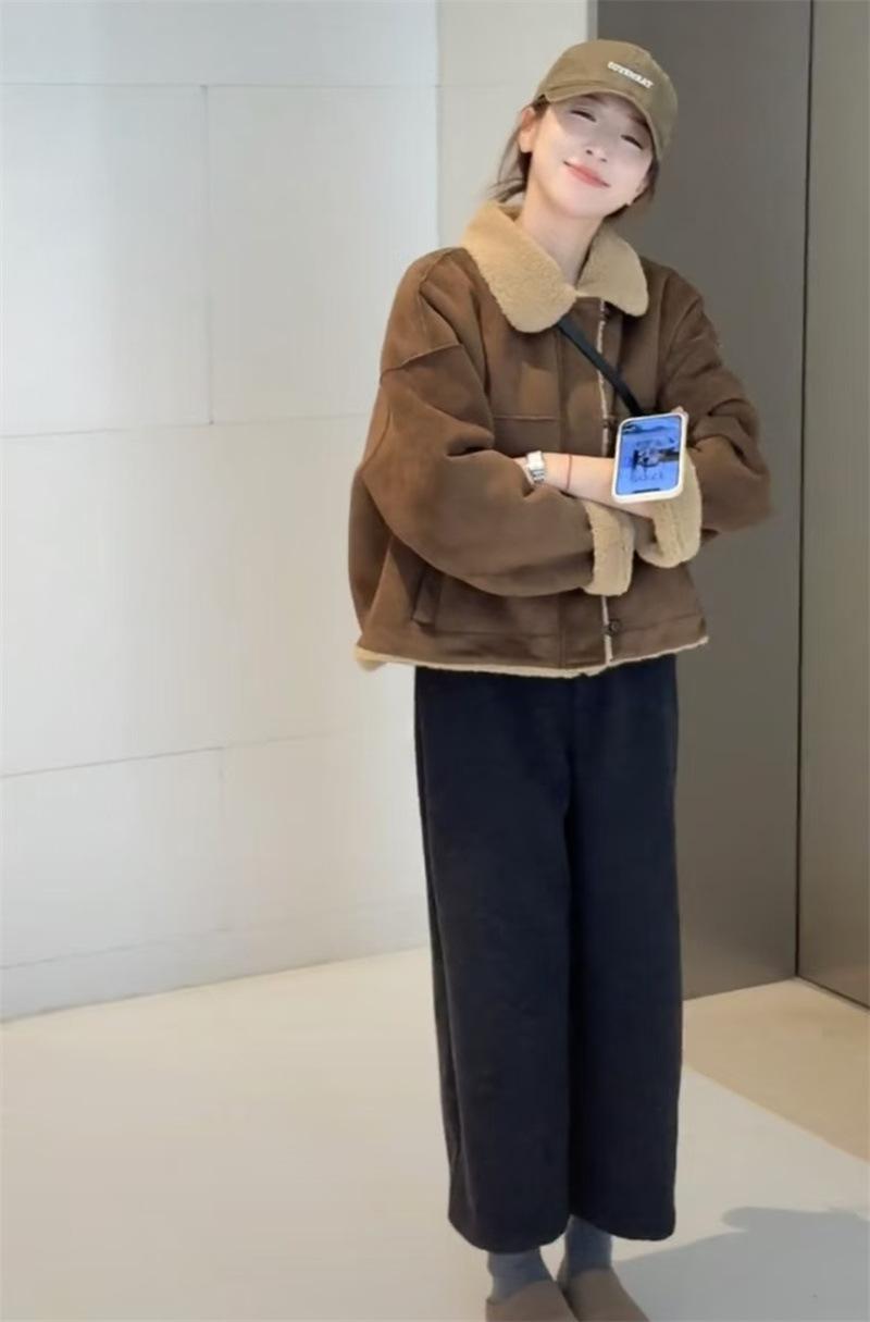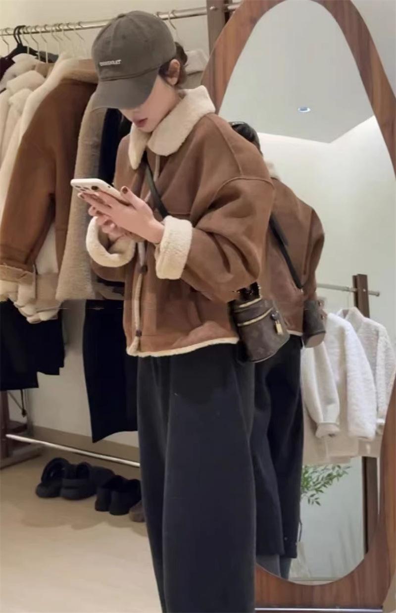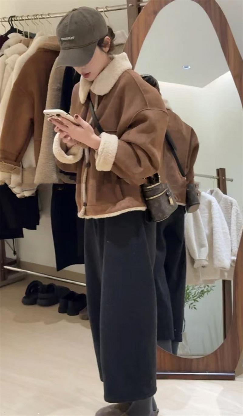 Abrigo de piel de cordero de algodón para mujer, novedad de invierno 2024, retro, holgado, adelgazante, de piel de ciervo, de polar, moderno.