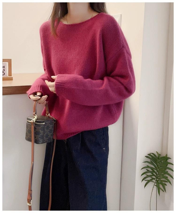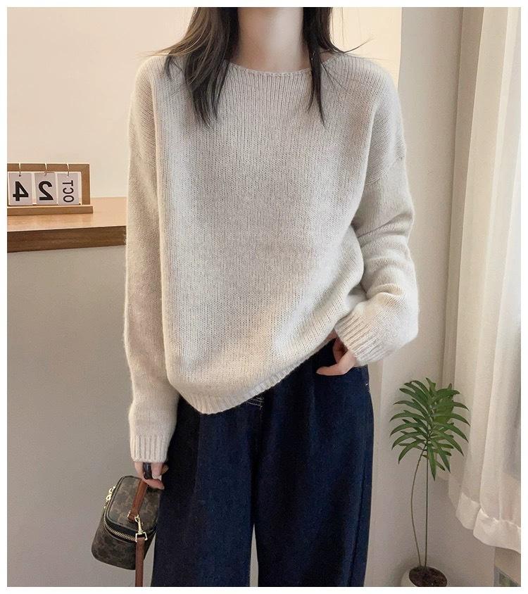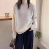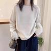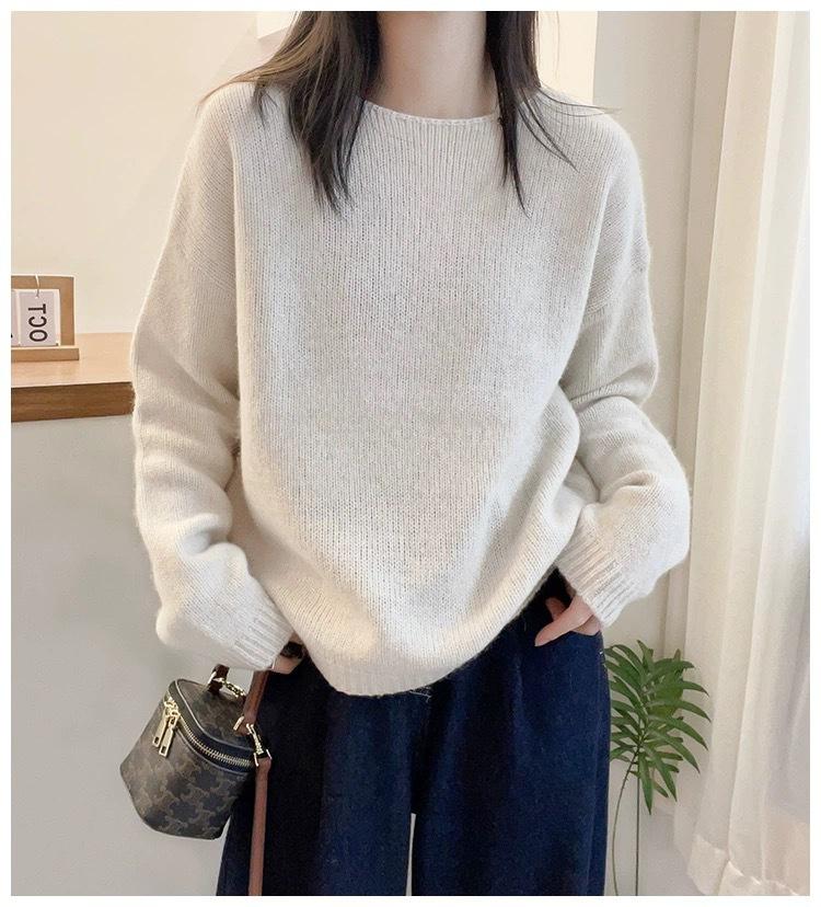 Suéter de punto de lana pura con cuello redondo y hombros descubiertos para otoño e invierno, holgado, estilo coreano, de cachemira gruesa para mujer