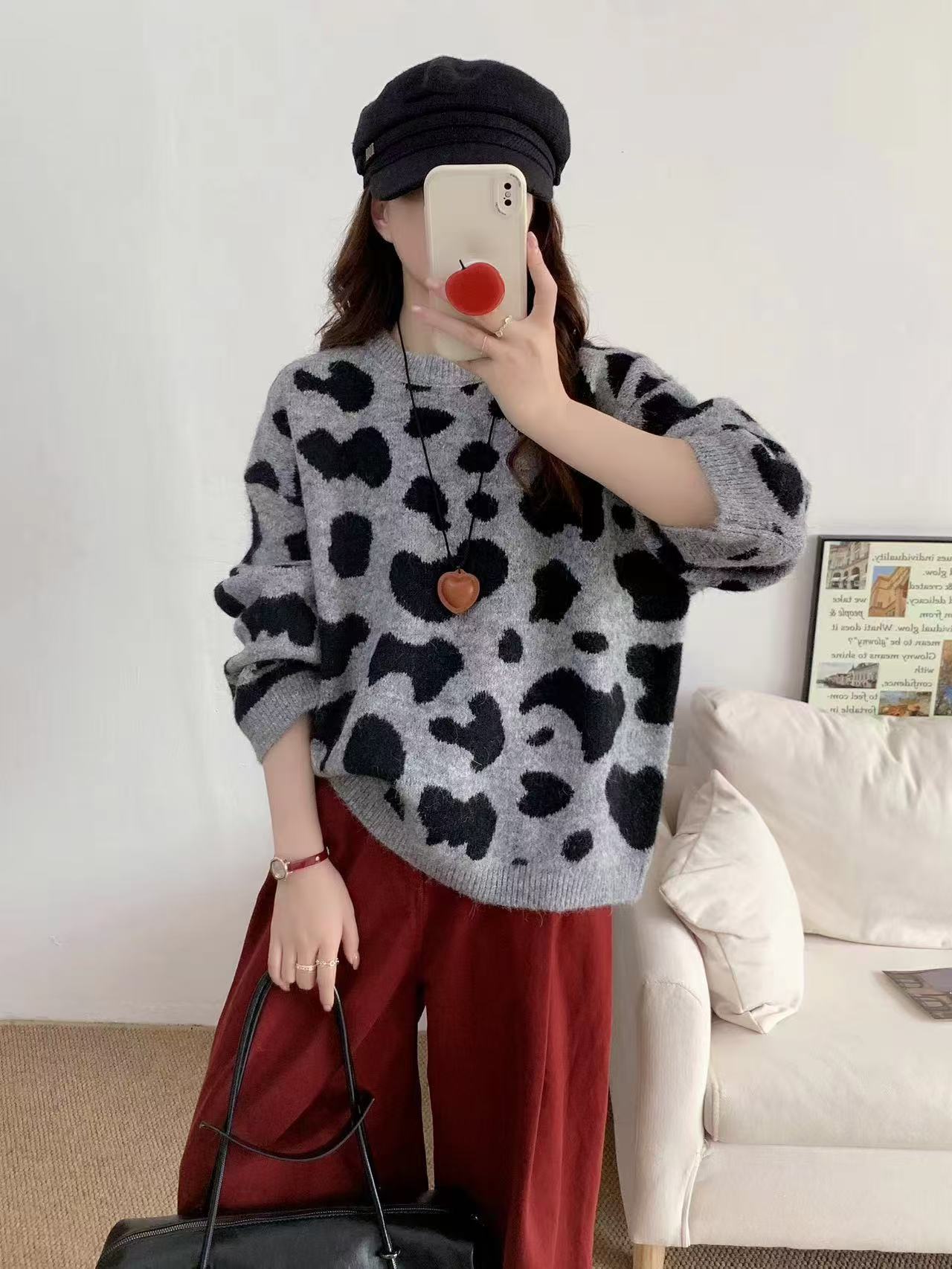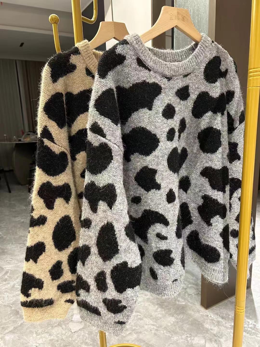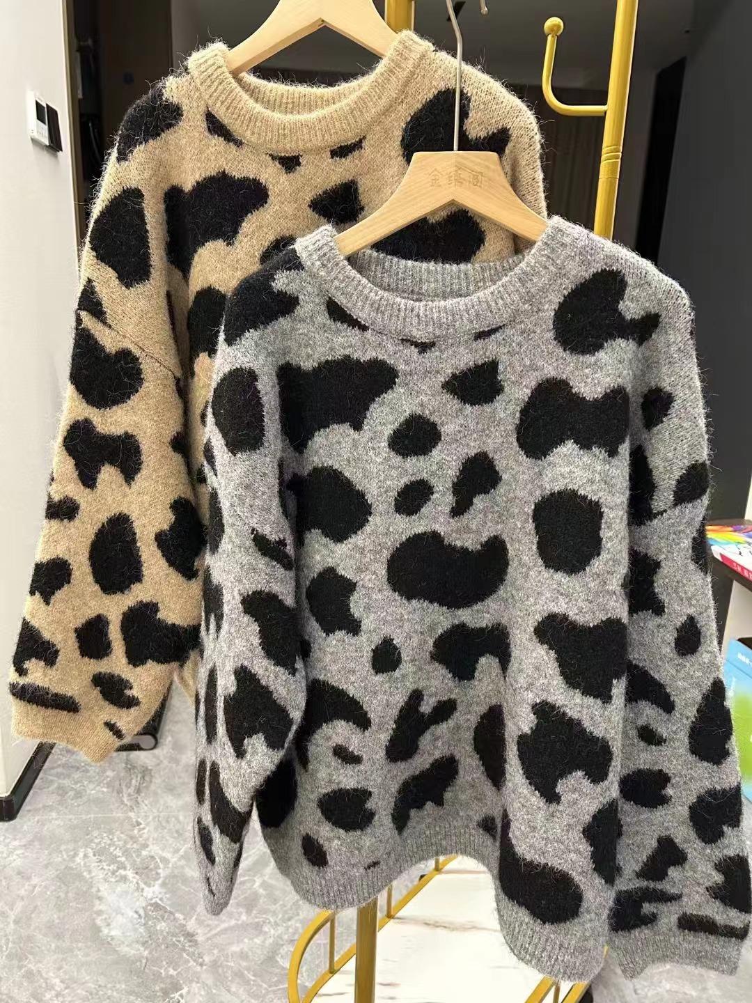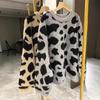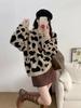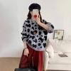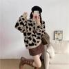 Moda Europea Cuello Redondo Jacquard Leopardo Suéter Tejido Pulóver para Mujer Suelto Casual Grueso Adelgazante Perezoso Tejido