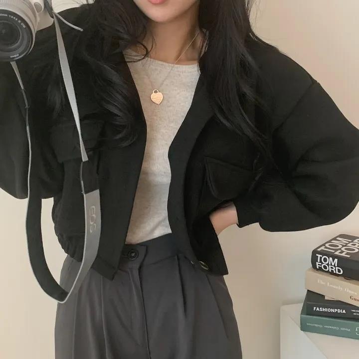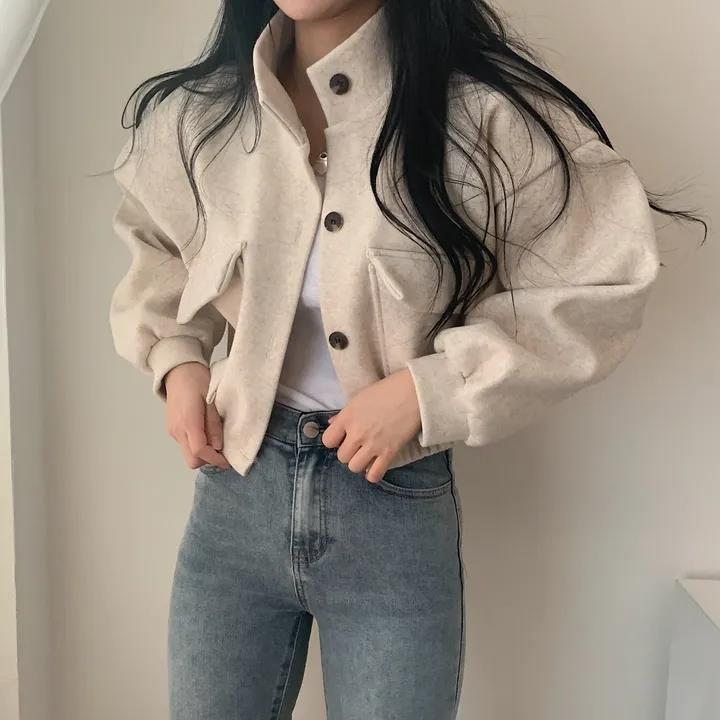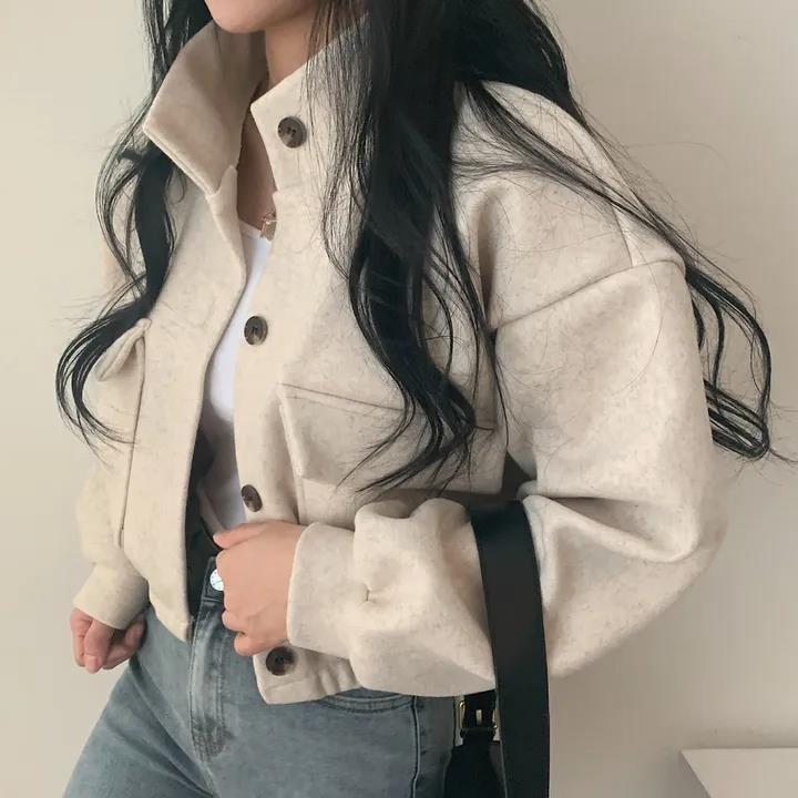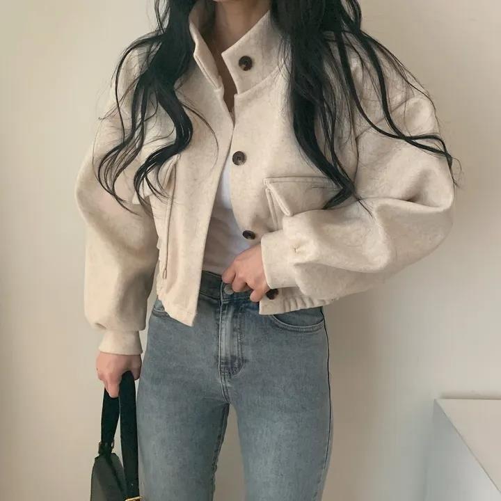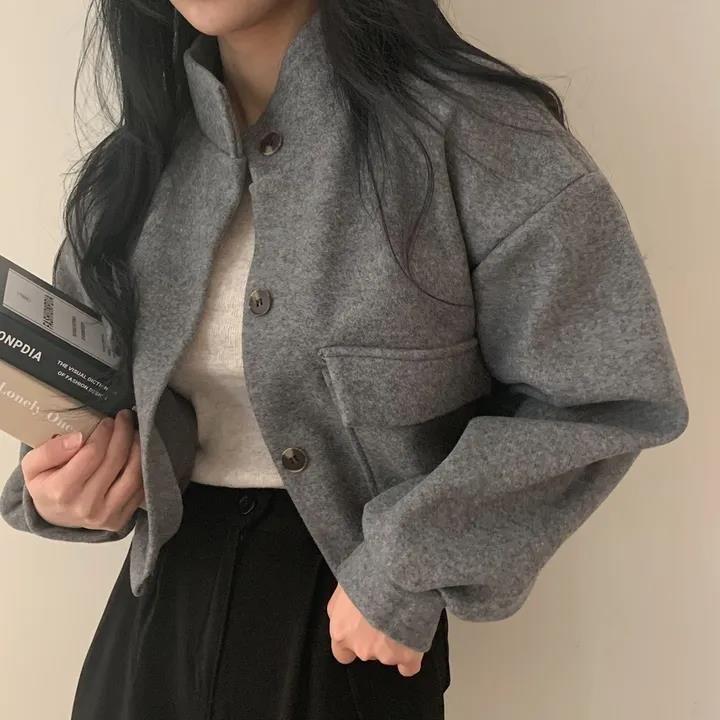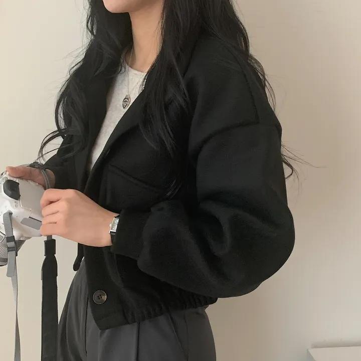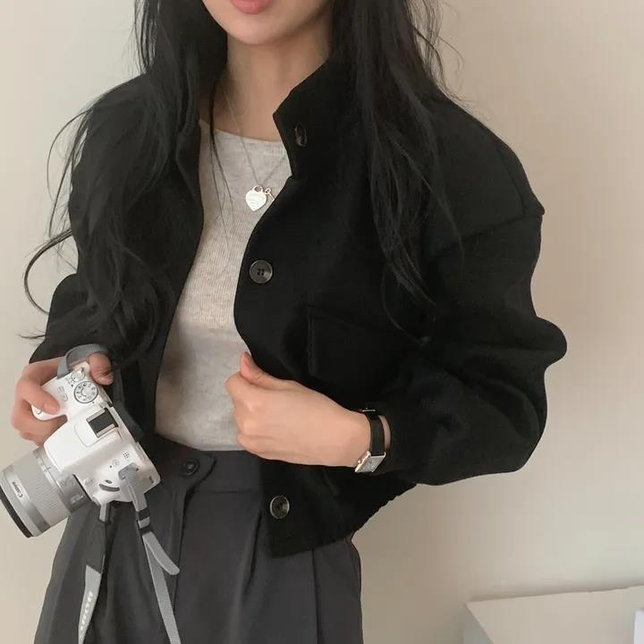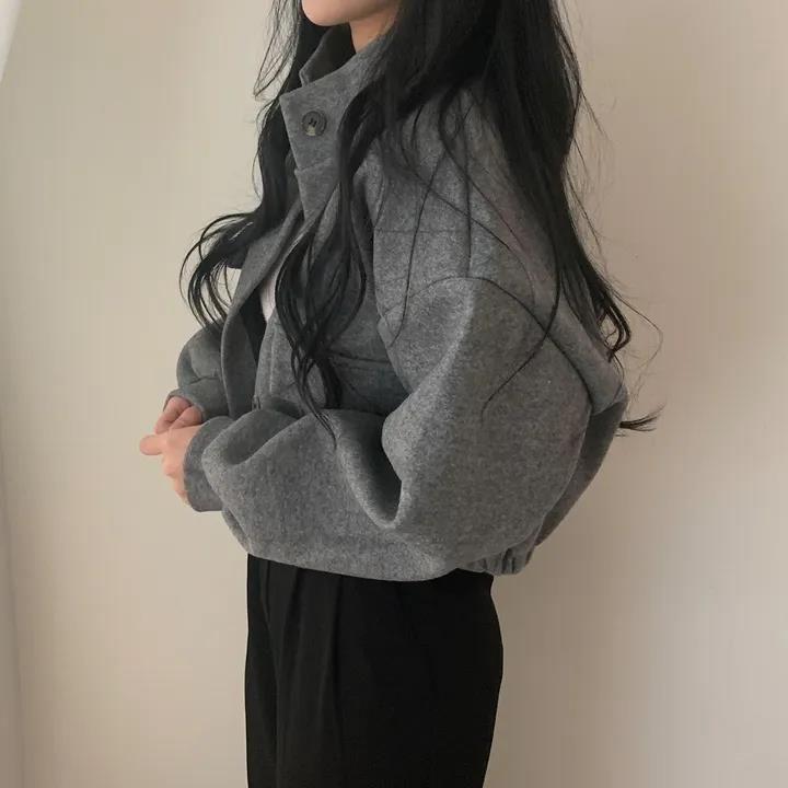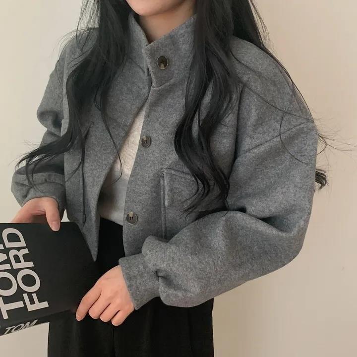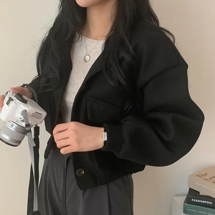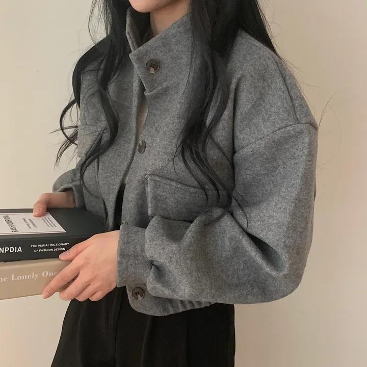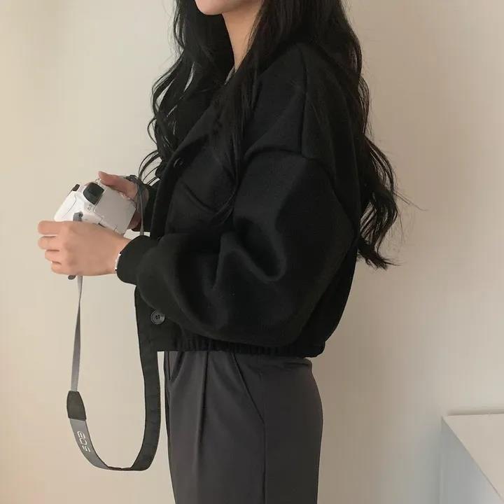 Otoño e Invierno 2025 Chic Coreano Cuello Alto Cruzado Suelto Casual Perezoso Manga Larga Corto Abrigo para Mujer