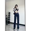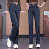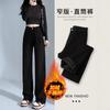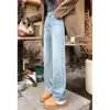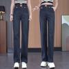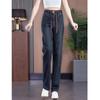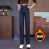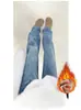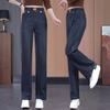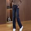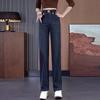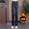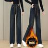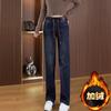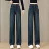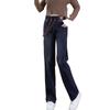 Jeans de pierna ancha con cintura elástica para mujer otoño e invierno nuevos pantalones de cintura alta pantalones rectos estrechos vintage con forro polar