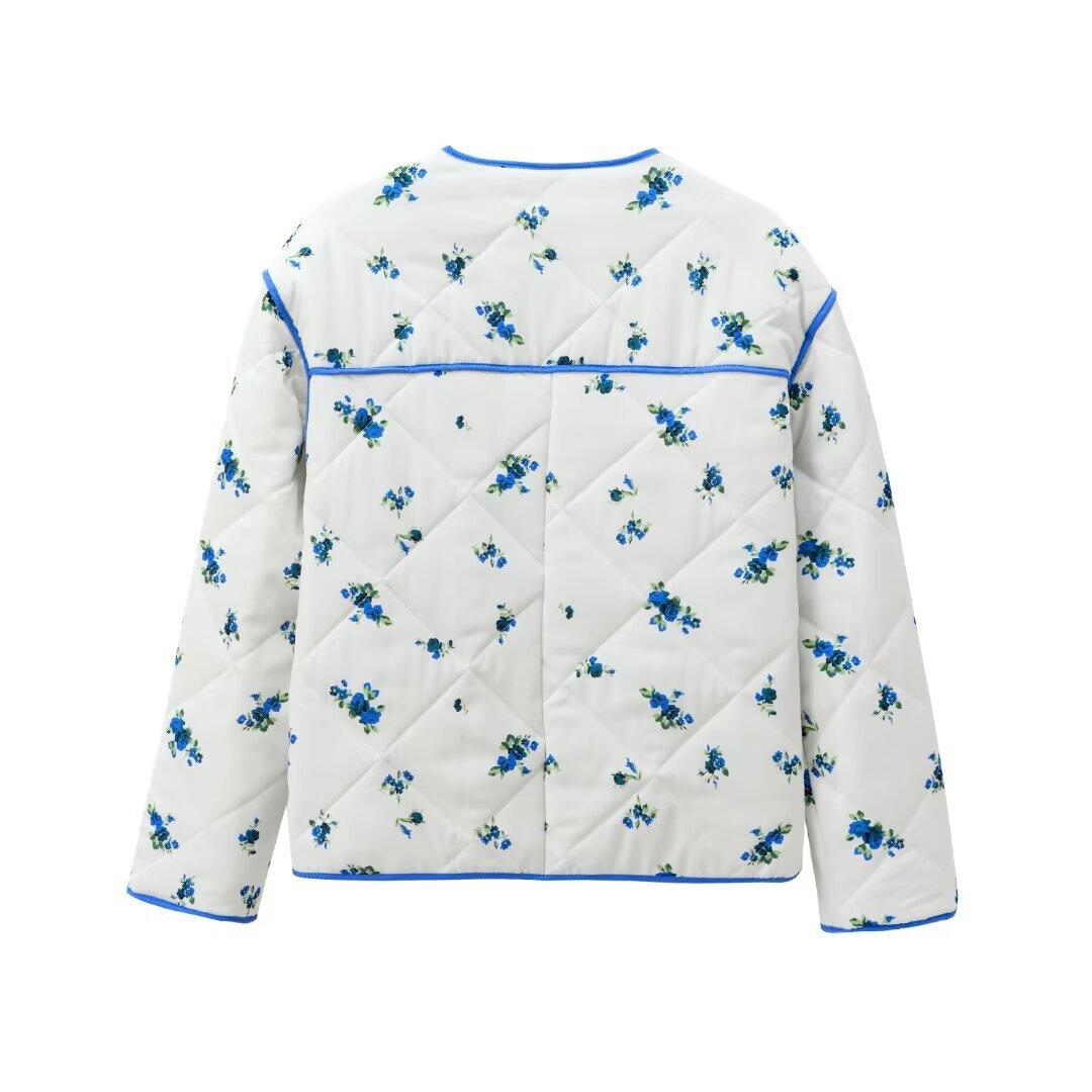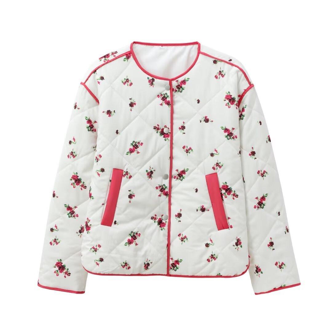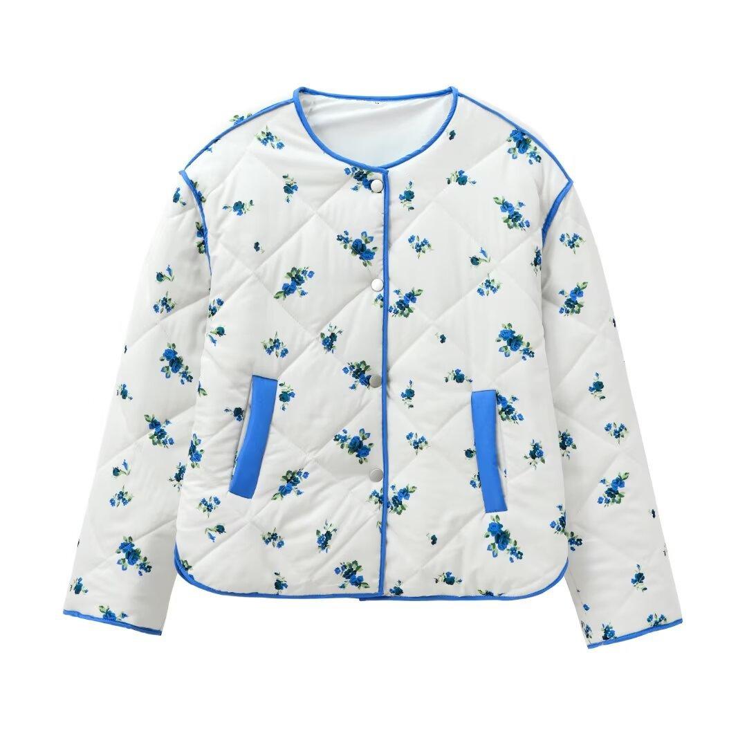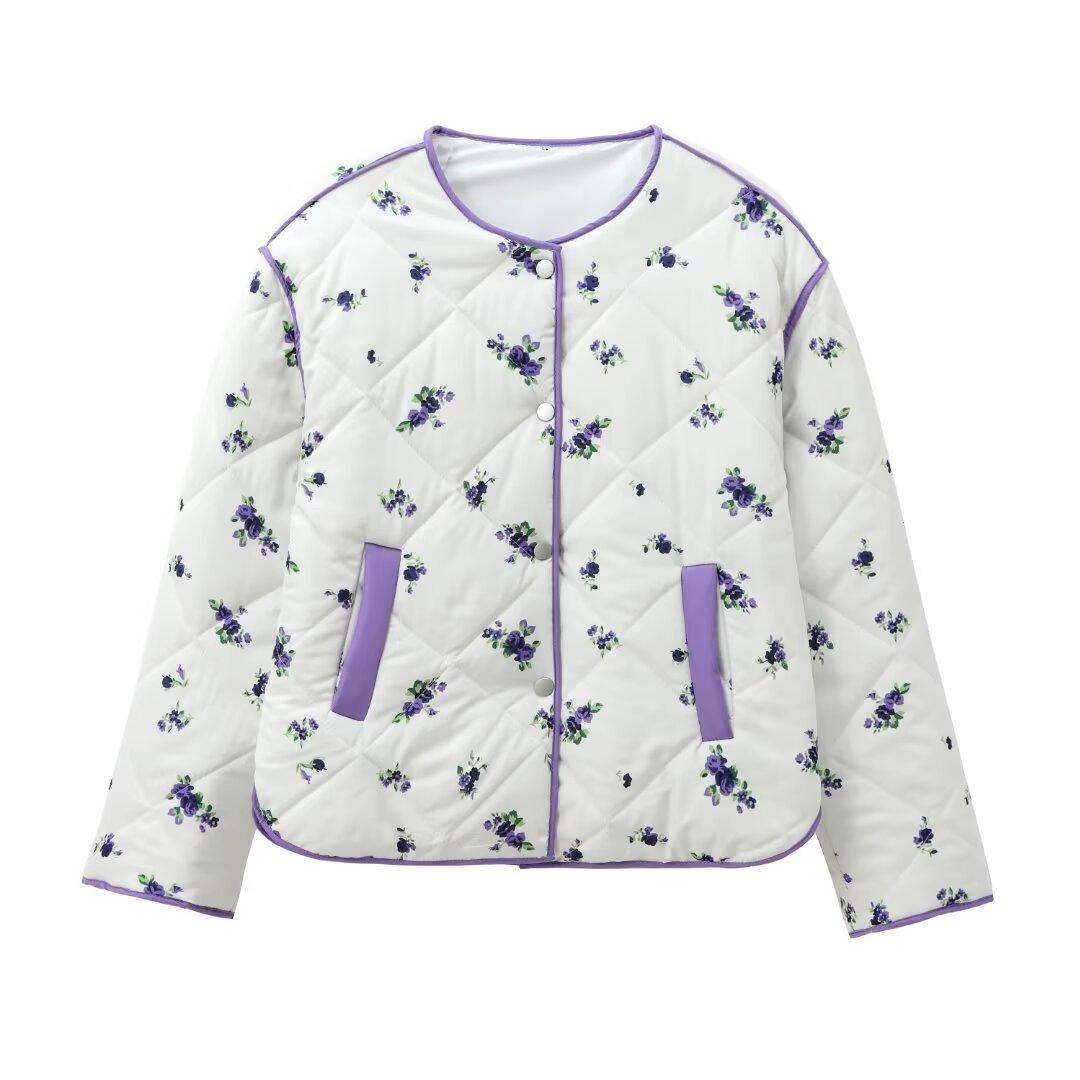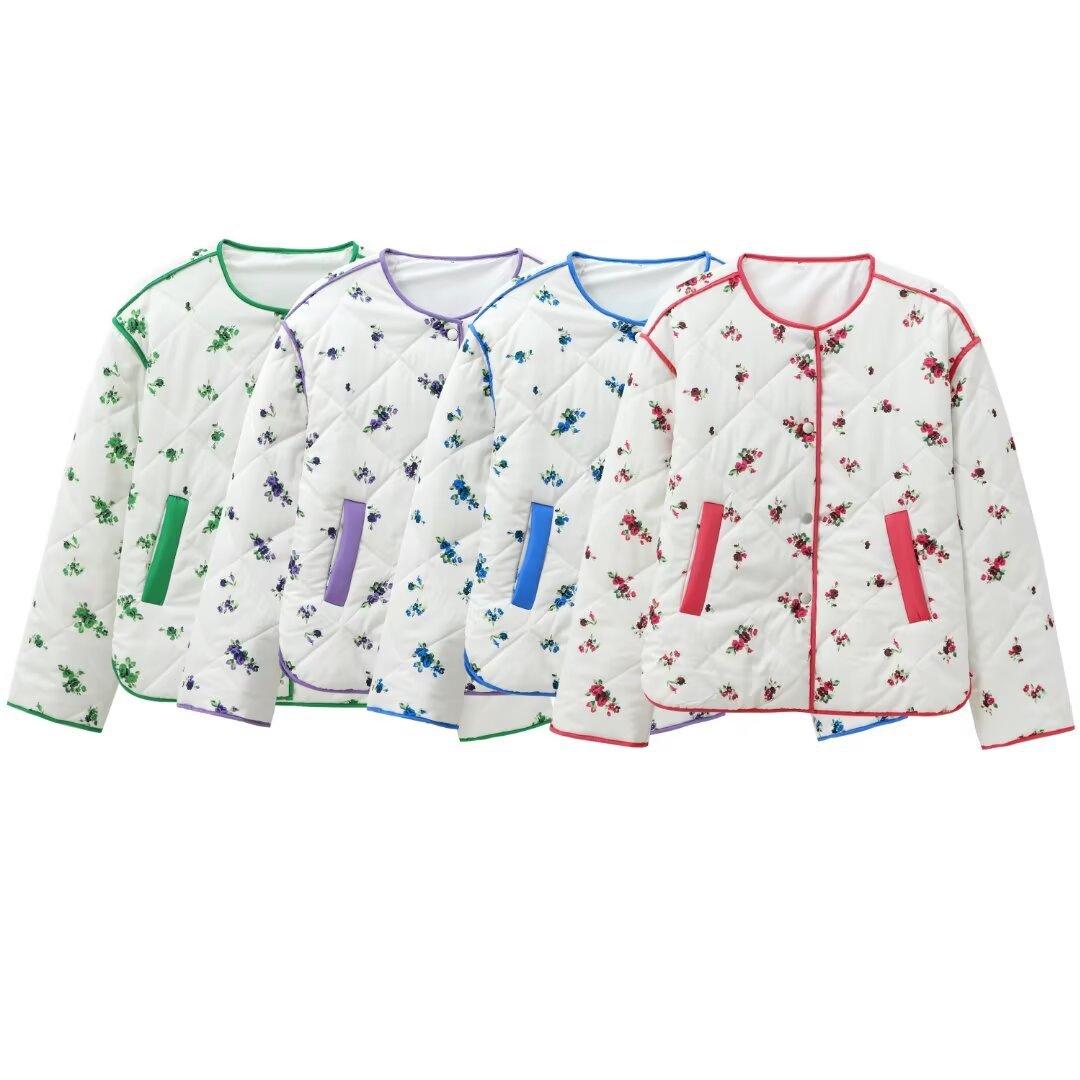 Moda europea y americana transfronteriza multicolor Joker estampado de florecitas manga larga ropa acolchada de algodón 2024 invierno nuevo L4Y20512