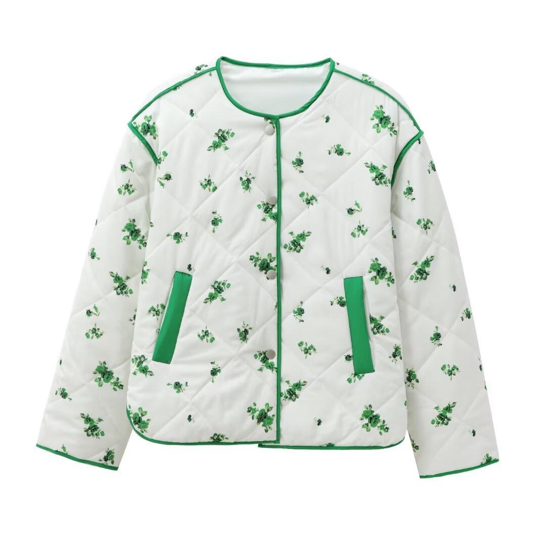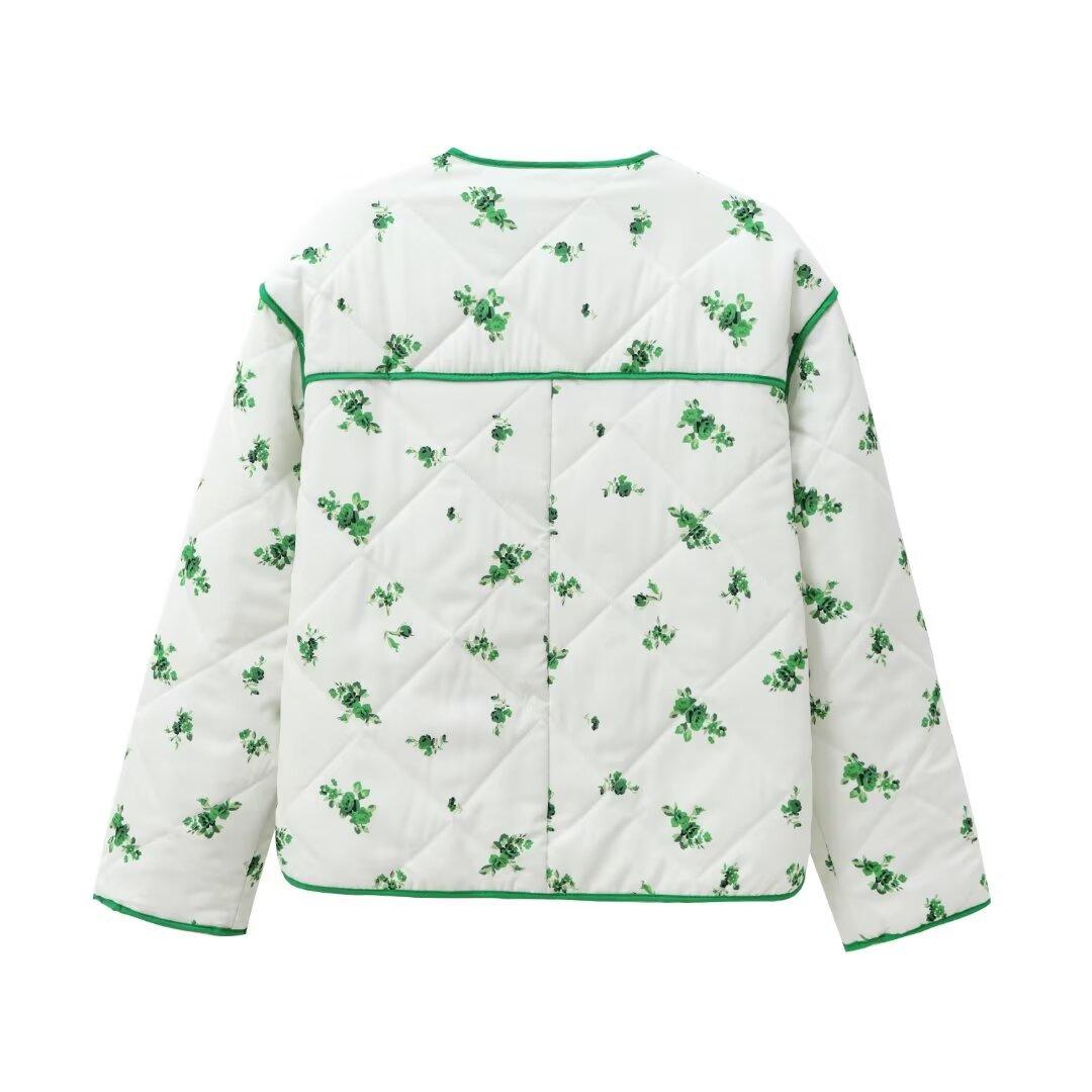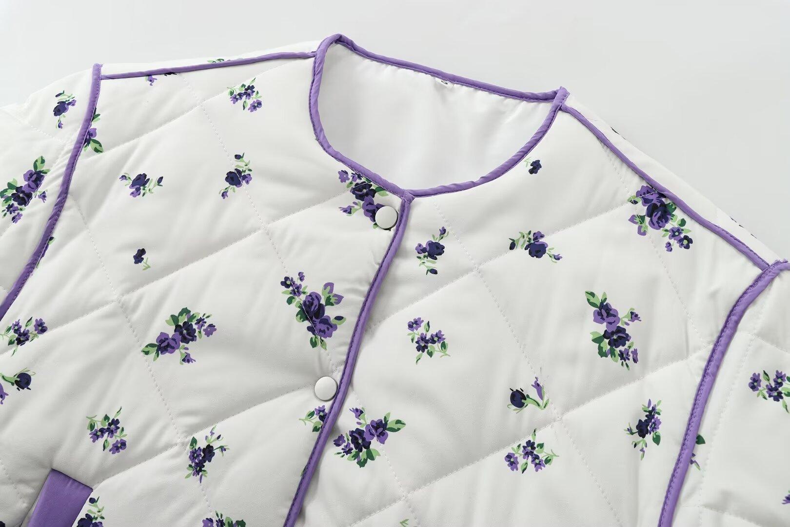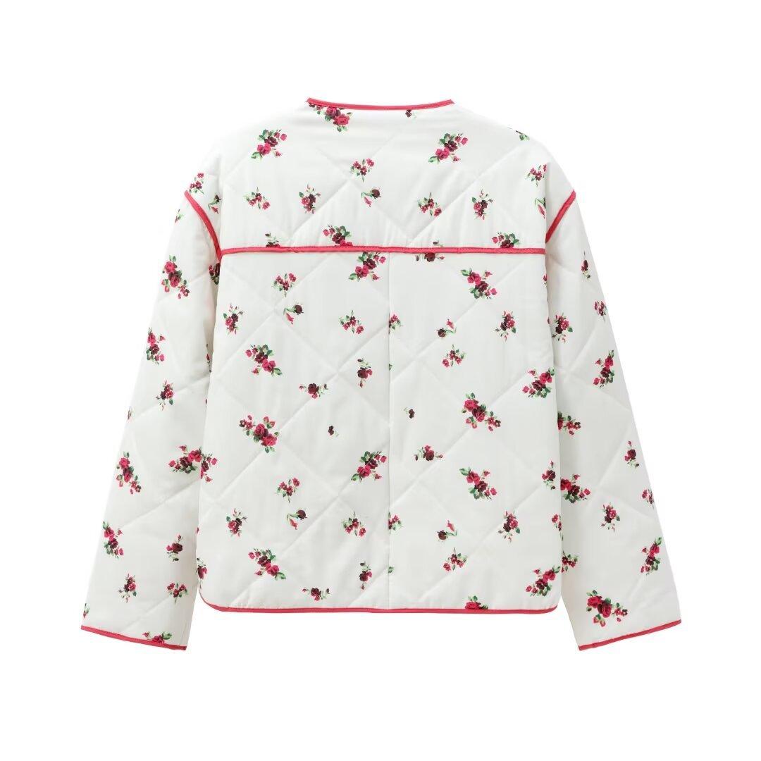 Moda europea y americana transfronteriza multicolor Joker estampado de florecitas manga larga ropa acolchada de algodón 2024 invierno nuevo L4Y20512