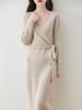 Falda Larga de Cuello Tejido de Lana 100% para Mujer, Vestido Básico Slim por Encima de la Rodilla, Falda Suéter de Cintura Alta, Nuevo Estilo Otoño e Invierno