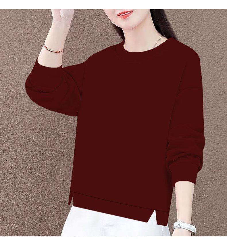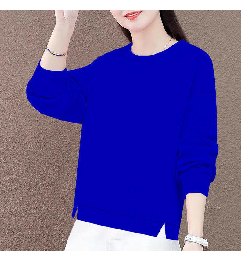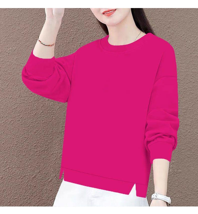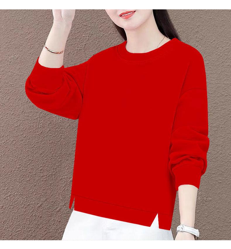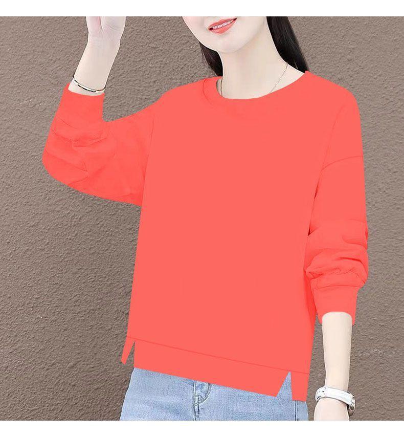Sudadera de algodón para mujer, primavera y otoño, fina, holgada, talla grande, versátil, para mujer, camiseta corta