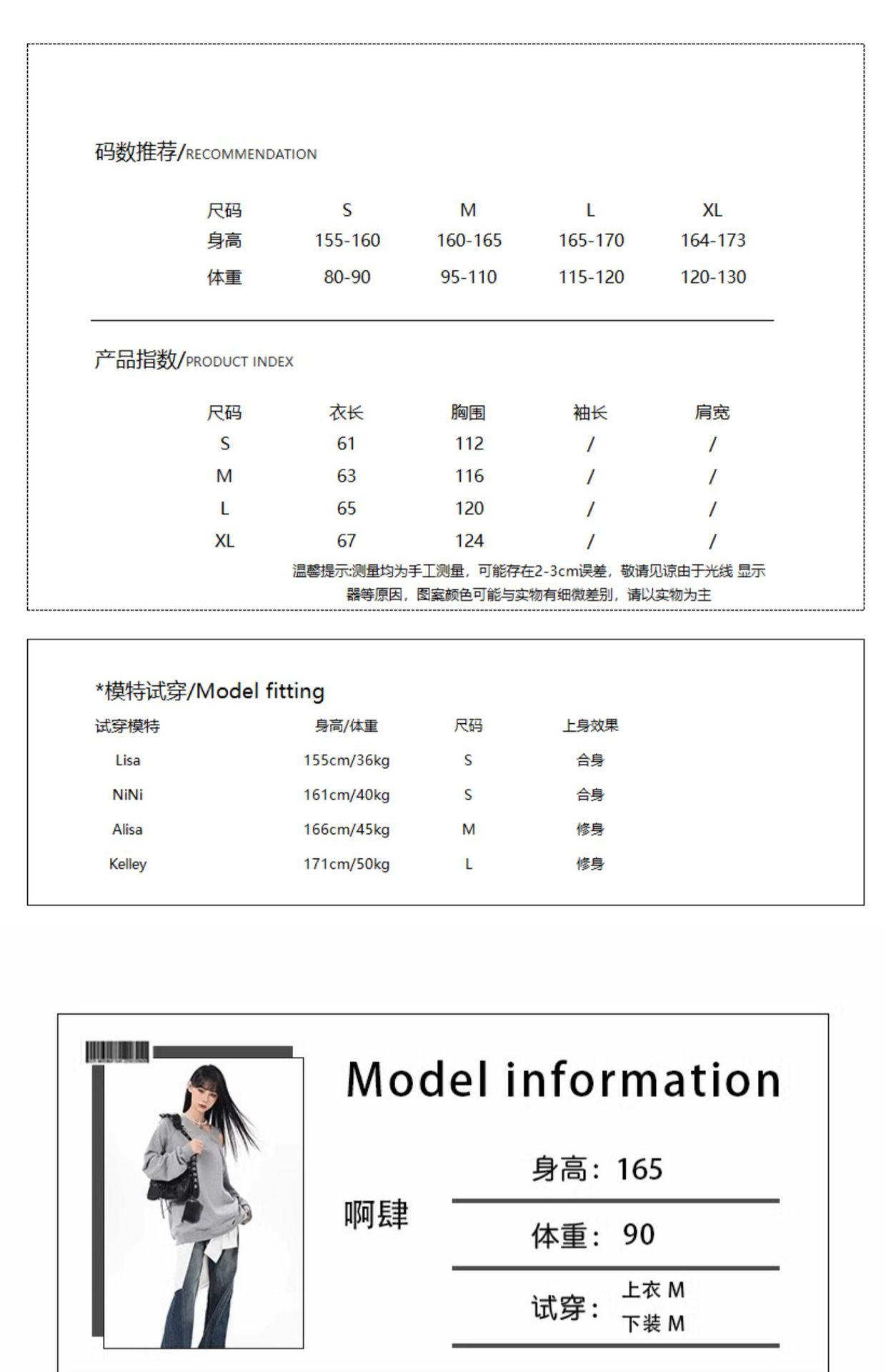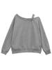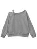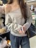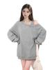 Suéter estilo americano gris sin capucha, con hombros descubiertos y hombro caído, para mujer, primavera y otoño, delgado, holgado, perezoso, de manga larga, para talla pequeña