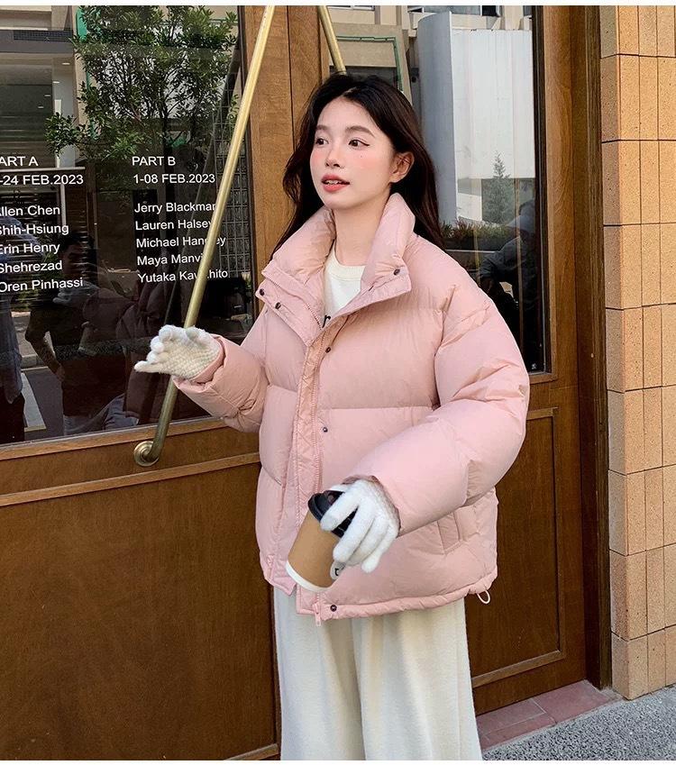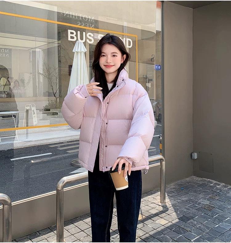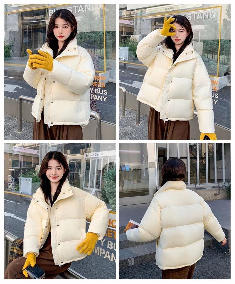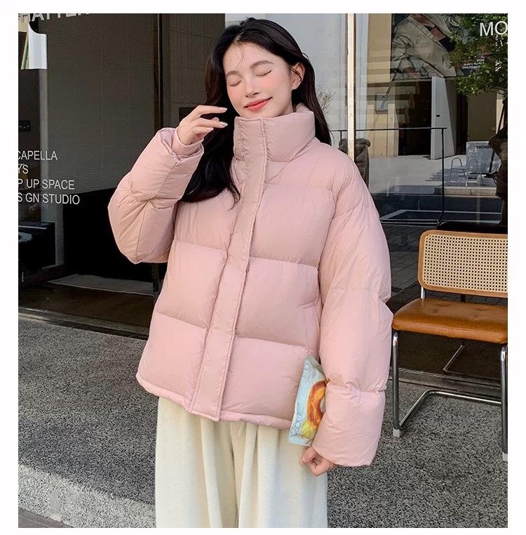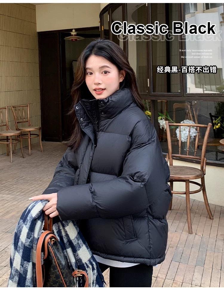 Chamarra de Plumas para Mujer 2025 Invierno Nuevo Casual Cuello Alto Más Fácil de Combinar Chaqueta Pan Corta Estilo Coreano Chaqueta Cálida para Personas Pequeñas