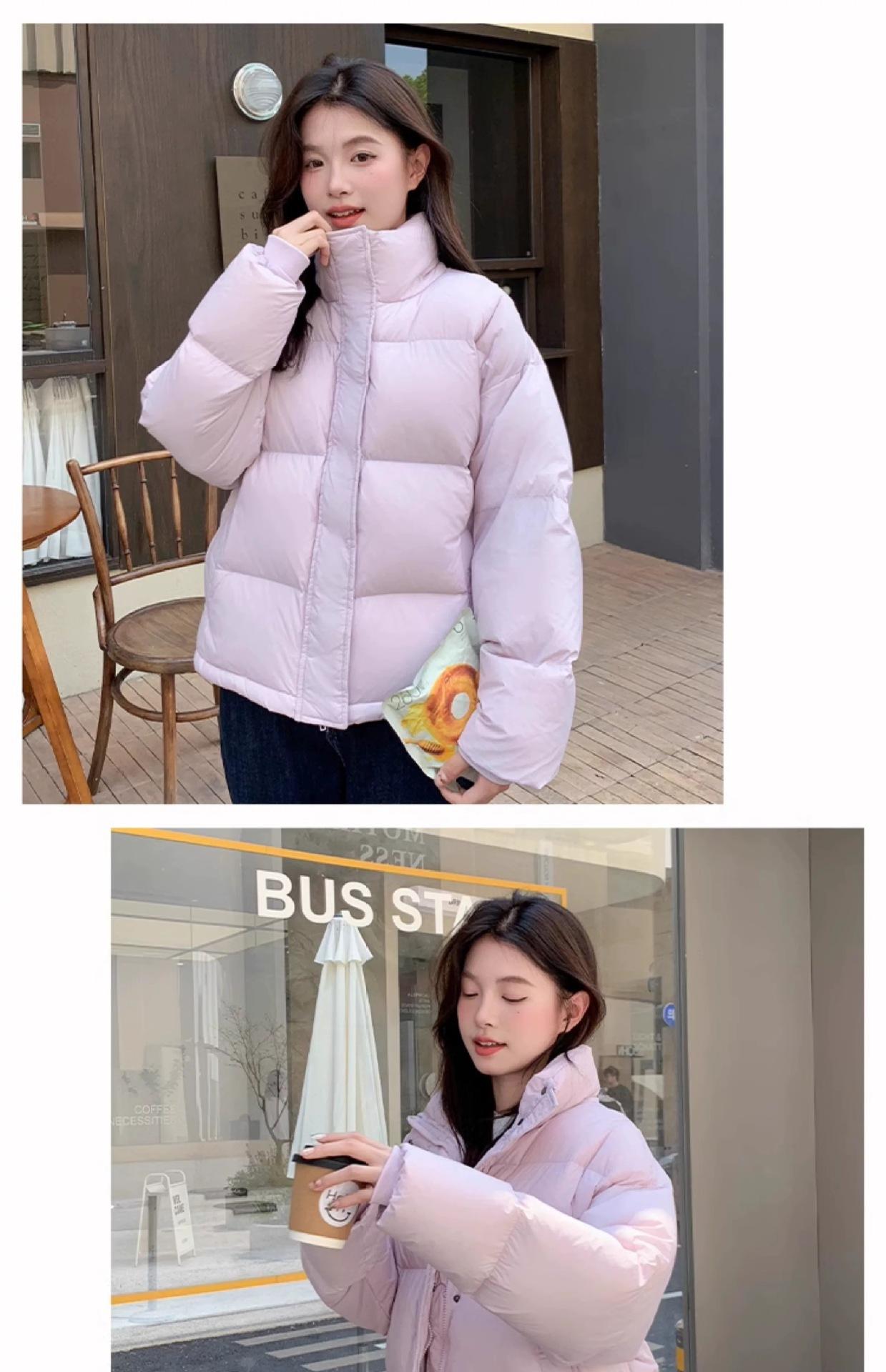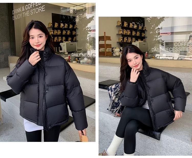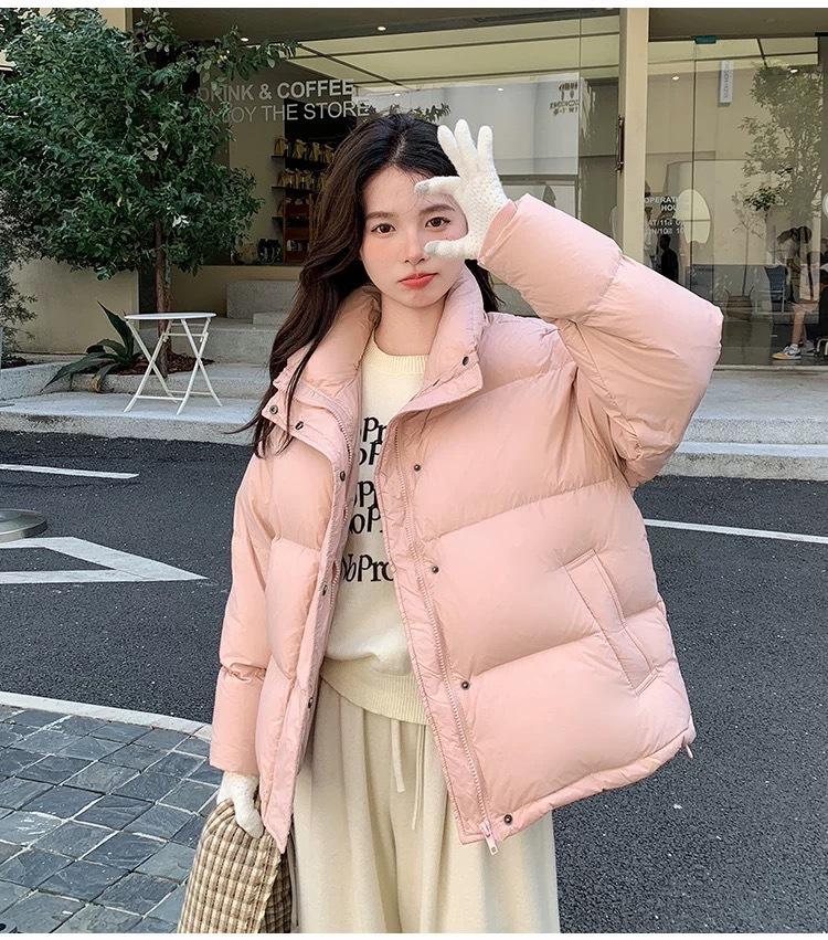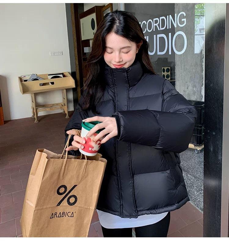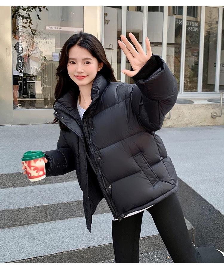 Chamarra de Plumas para Mujer 2025 Invierno Nuevo Casual Cuello Alto Más Fácil de Combinar Chaqueta Pan Corta Estilo Coreano Chaqueta Cálida para Personas Pequeñas
