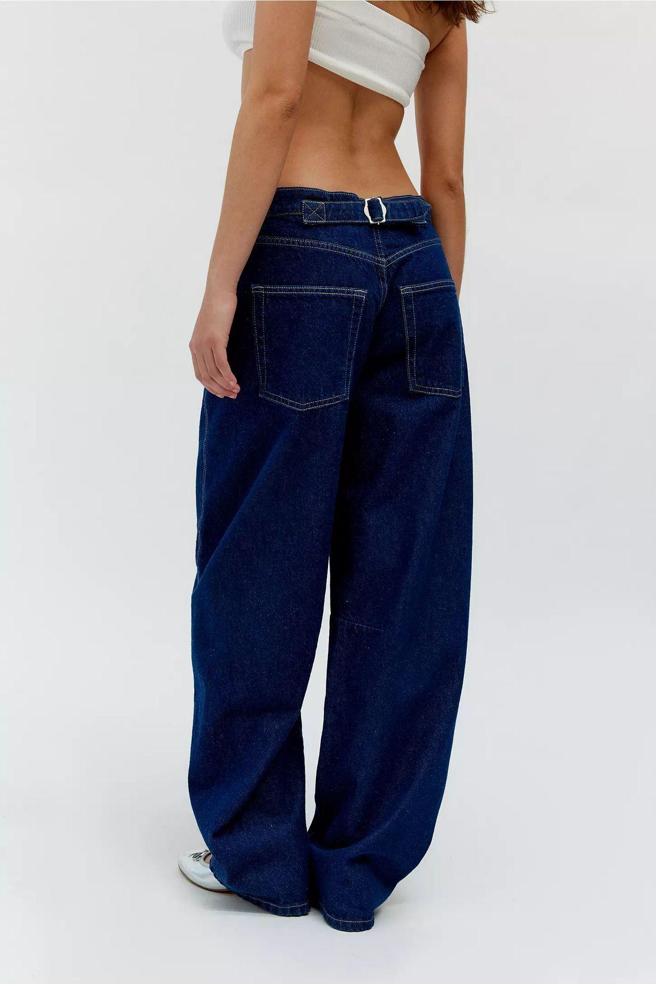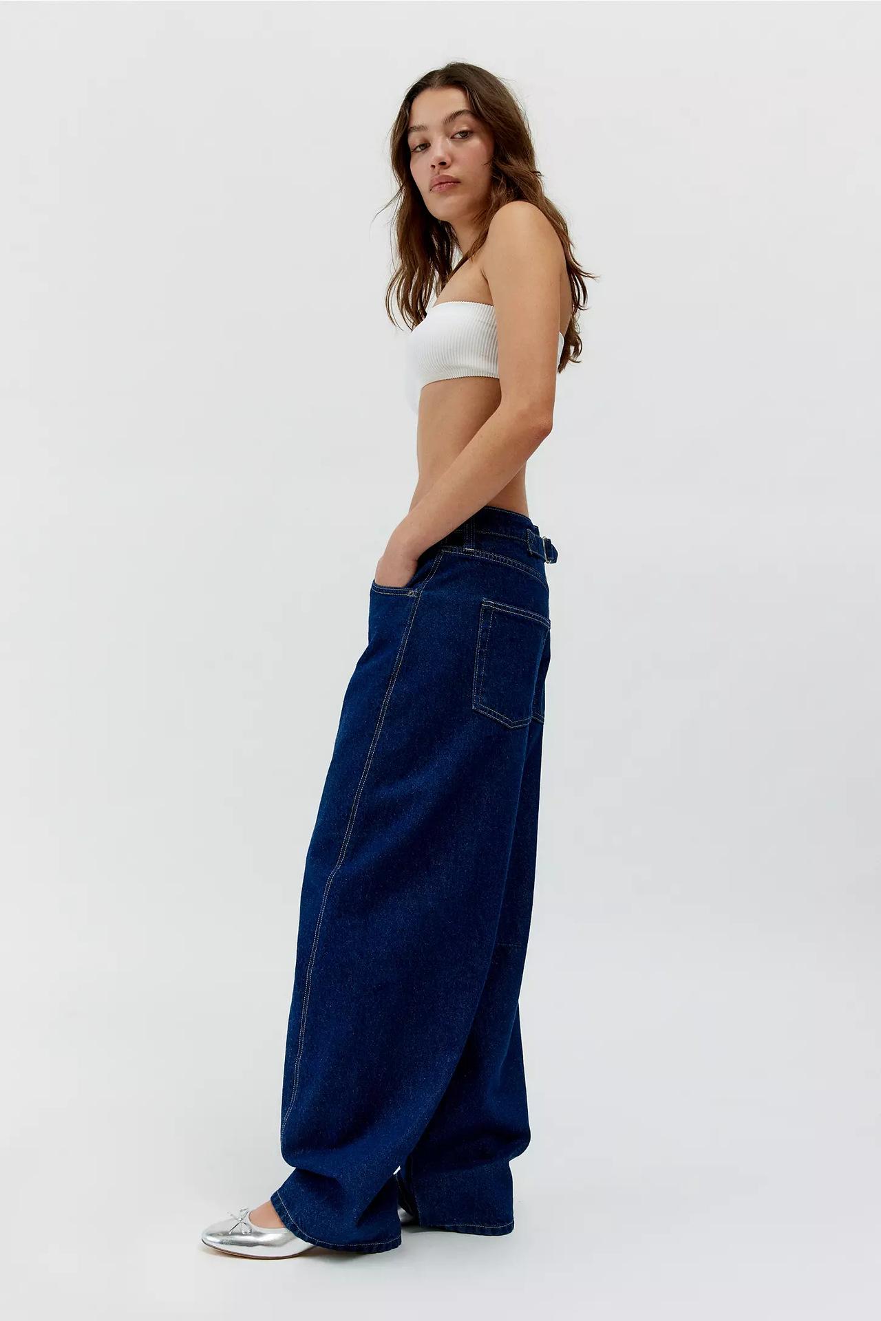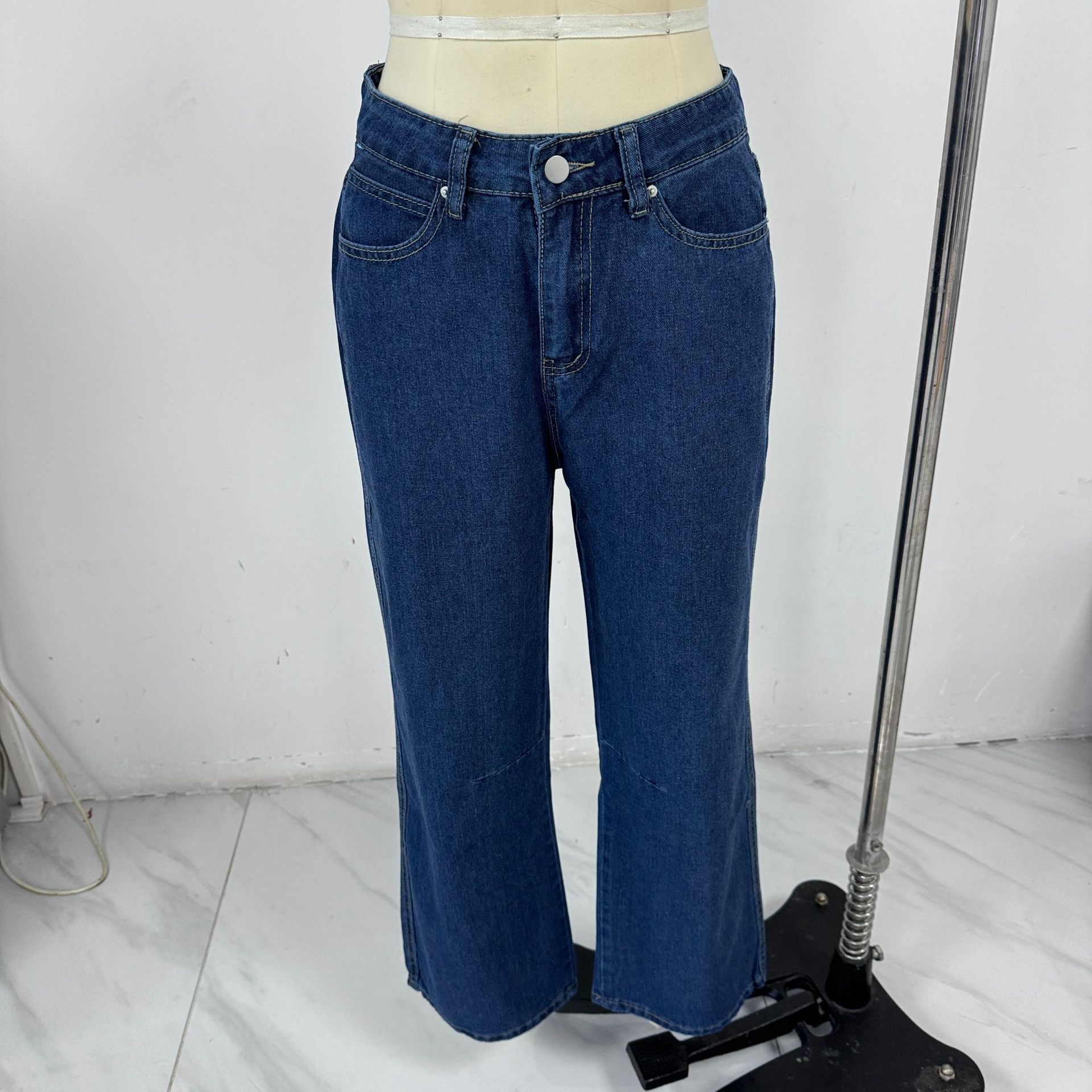 Ventas Directas de Fábrica Jeans Versátiles Europeos y Americanos Retro Lavados Azul Oscuro Pierna Ancha Sueltos Pierna Recta