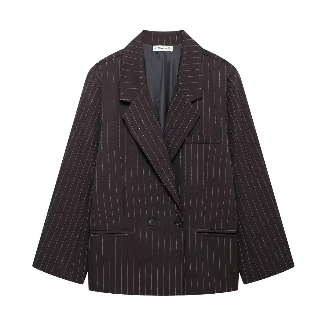 Chaqueta de traje a rayas con estampado de explosión de AliExpress para mujer, estilo informal, holgado, transfronterizo, de Europa y América.