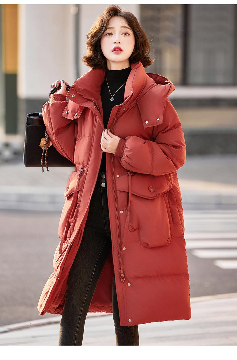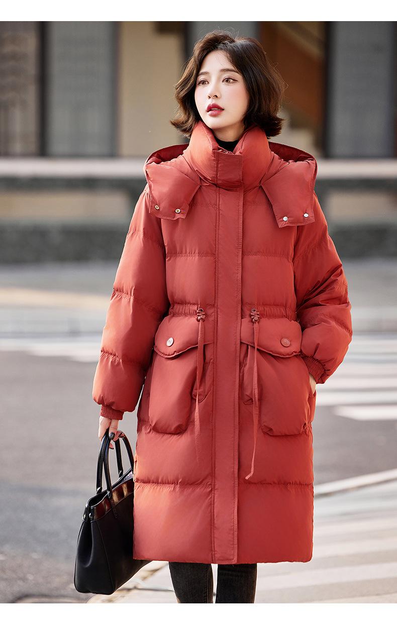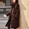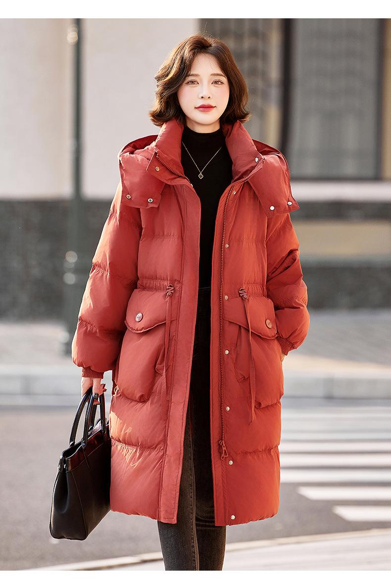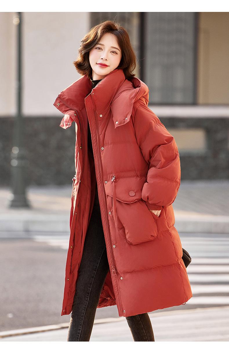 Chamarra de Plumas de Moda para Mujer de Largo Medio 2024 Invierno Nuevo de Gama Alta Entallada Suelta Adelgazante Largo hasta la Rodilla Cálida Gruesa