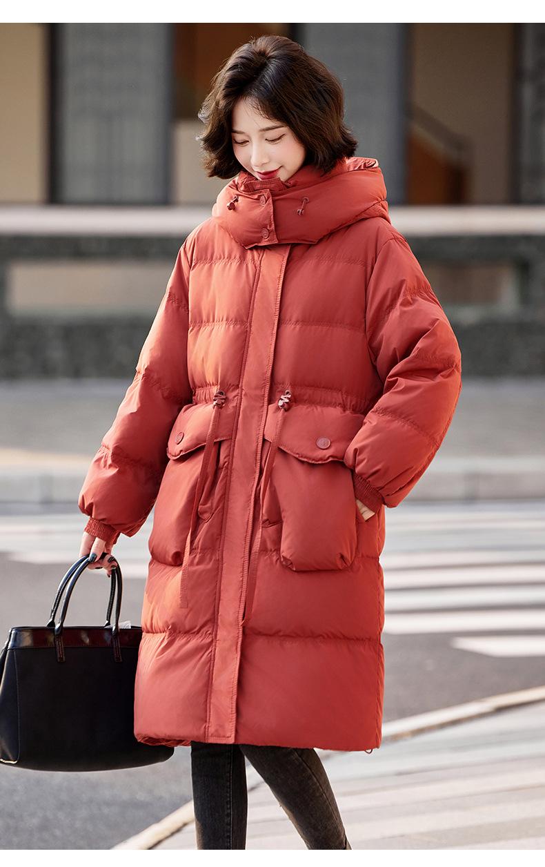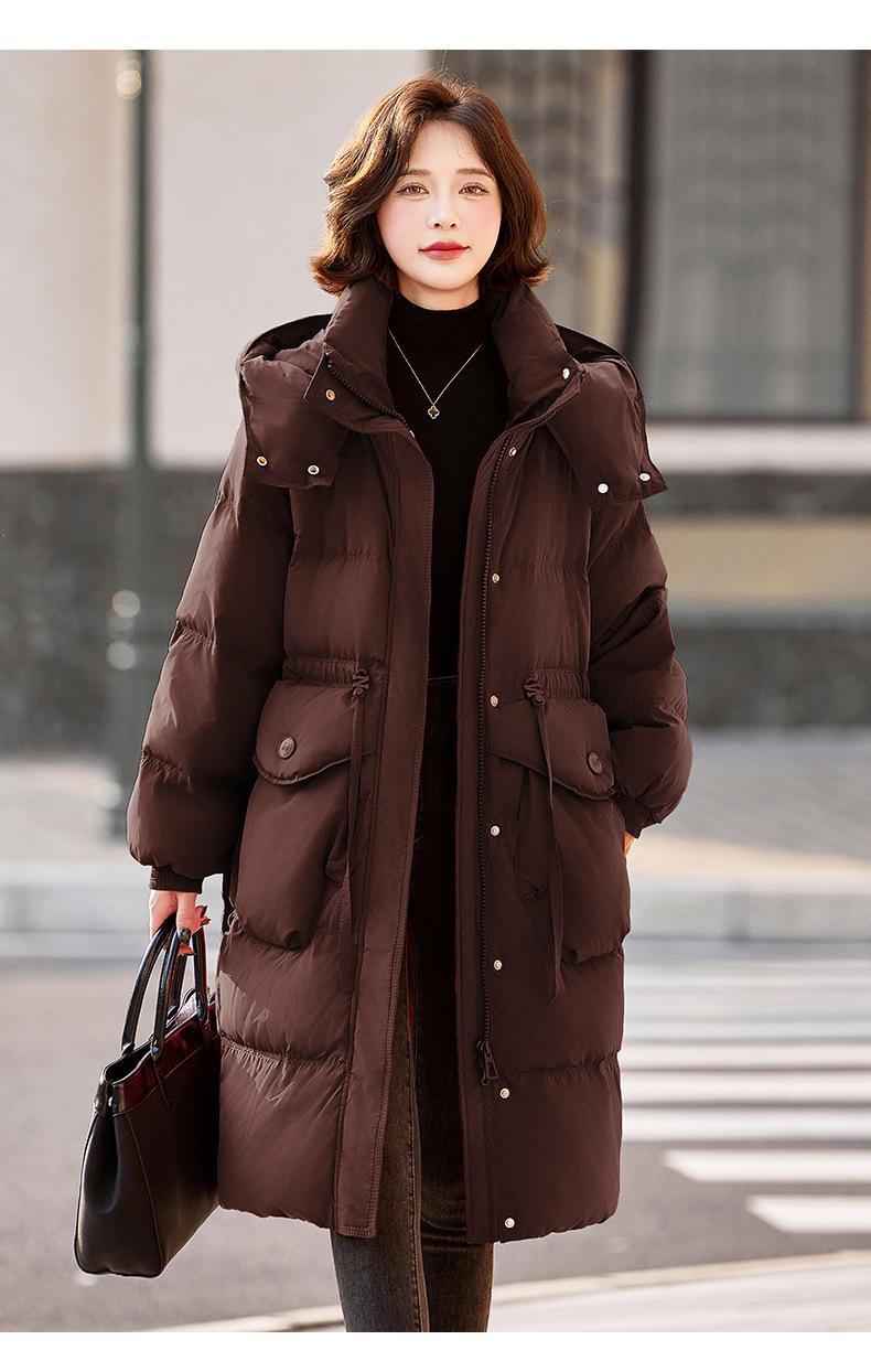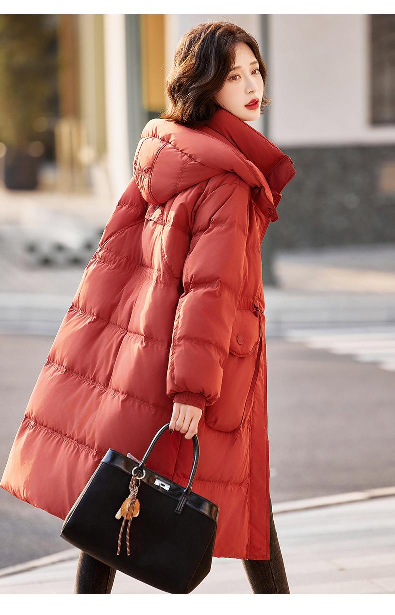 Chamarra de Plumas de Moda para Mujer de Largo Medio 2024 Invierno Nuevo de Gama Alta Entallada Suelta Adelgazante Largo hasta la Rodilla Cálida Gruesa