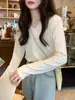 Camiseta básica de estilo coreano para mujer, suéter de punto con cuello en V, otoño e invierno 2024, nuevo suéter suave y ceroso, top de manga larga