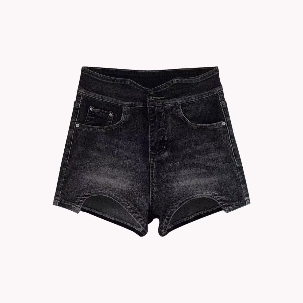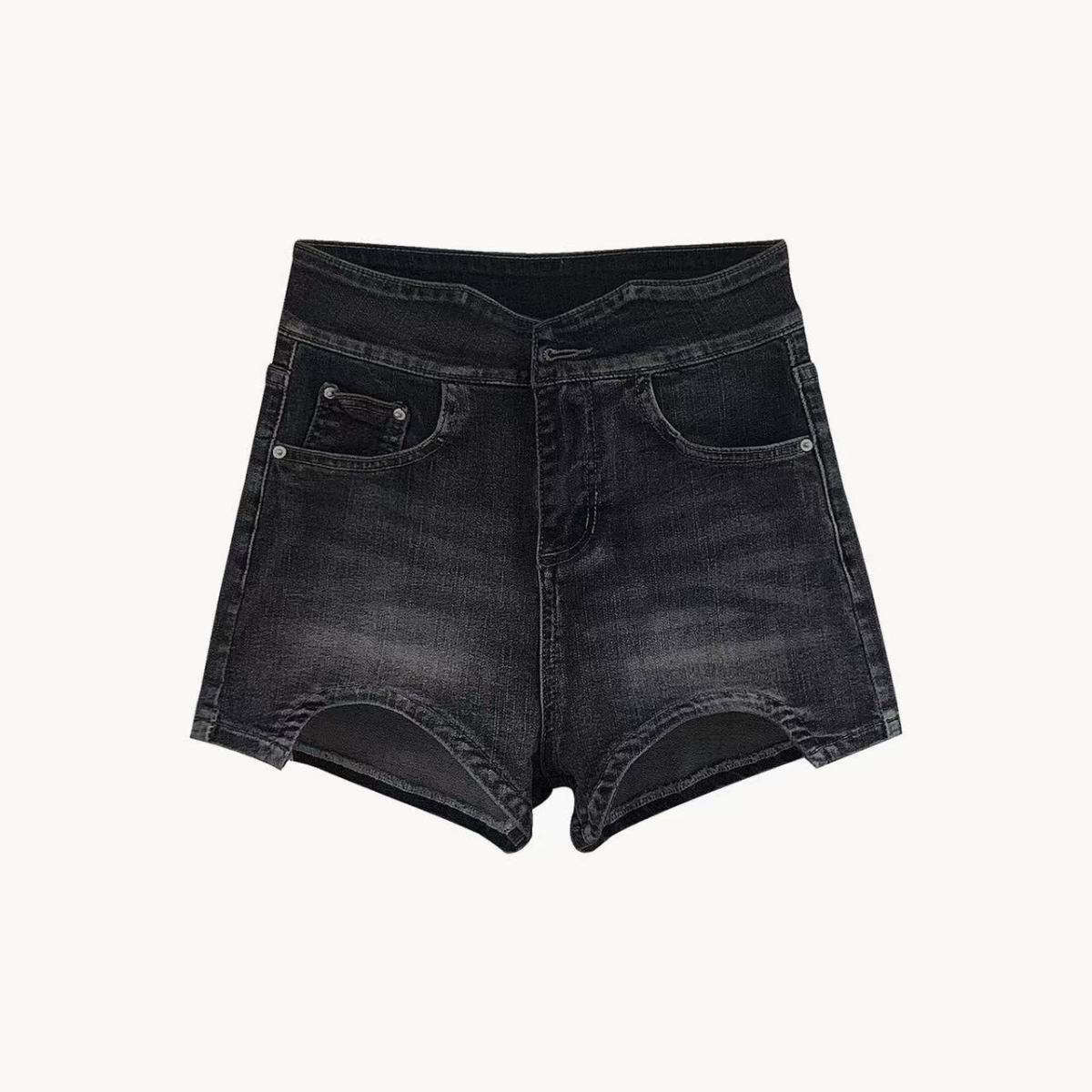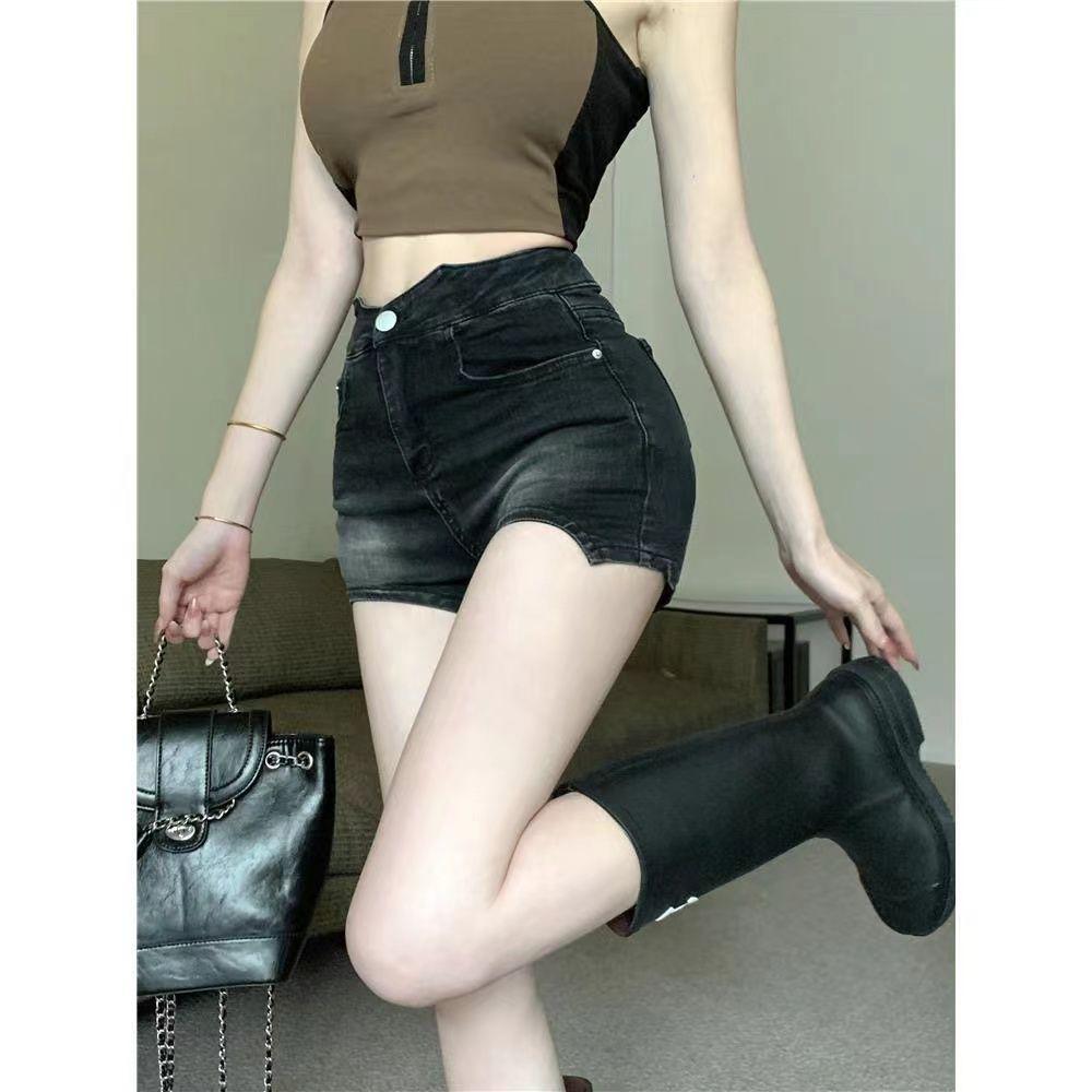 Pantalones cortos de mezclilla retro sexy estilo americano para mujer, verano 2024, nuevos, de talle alto, ajustados, corte A, pantalones cortos hot