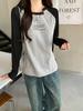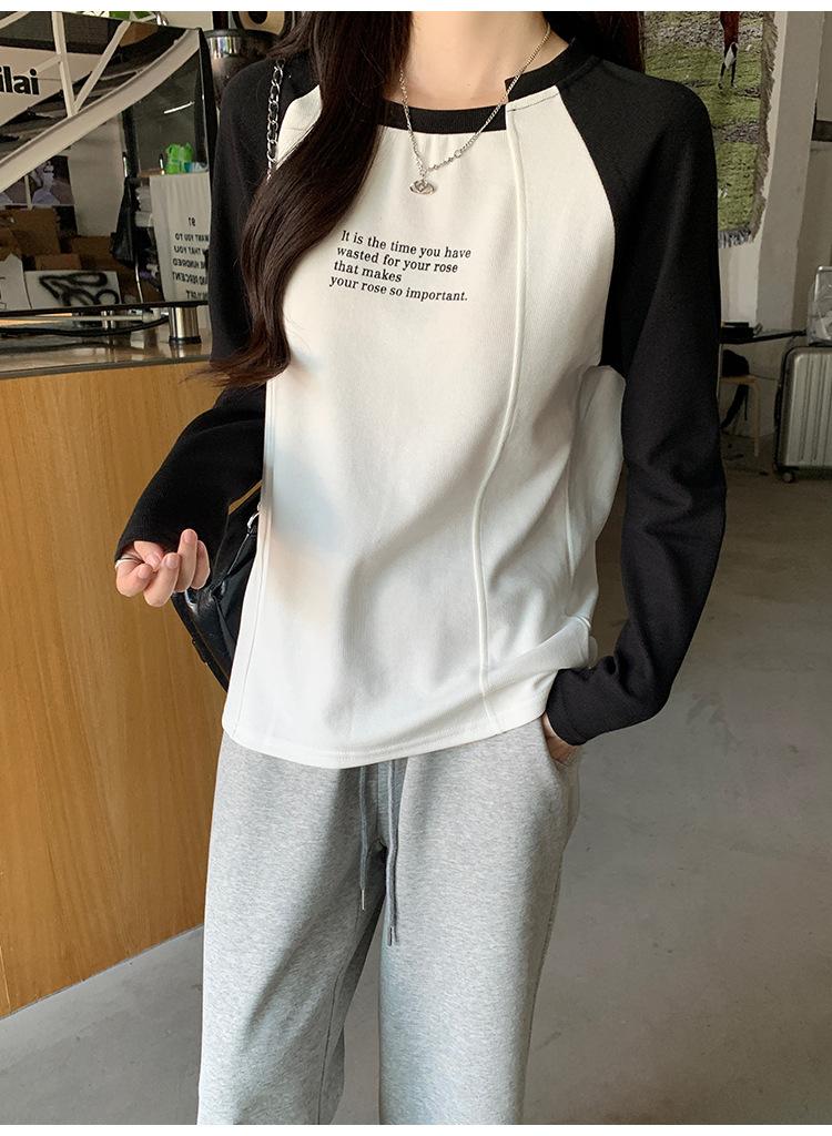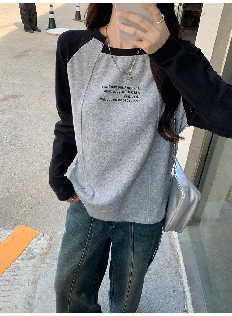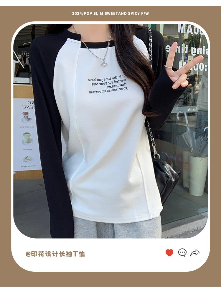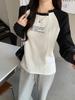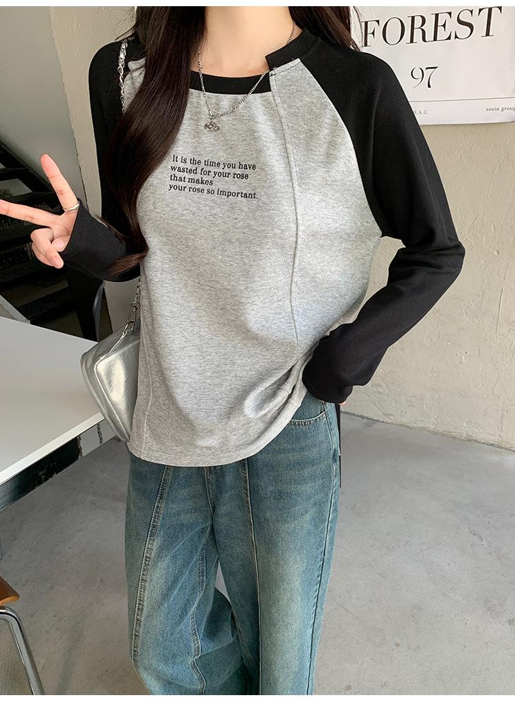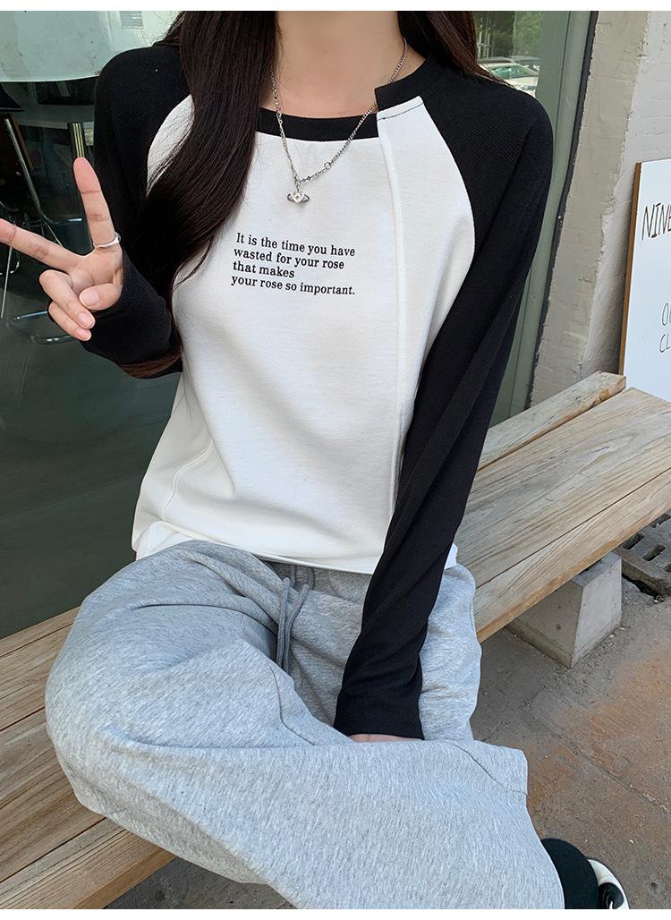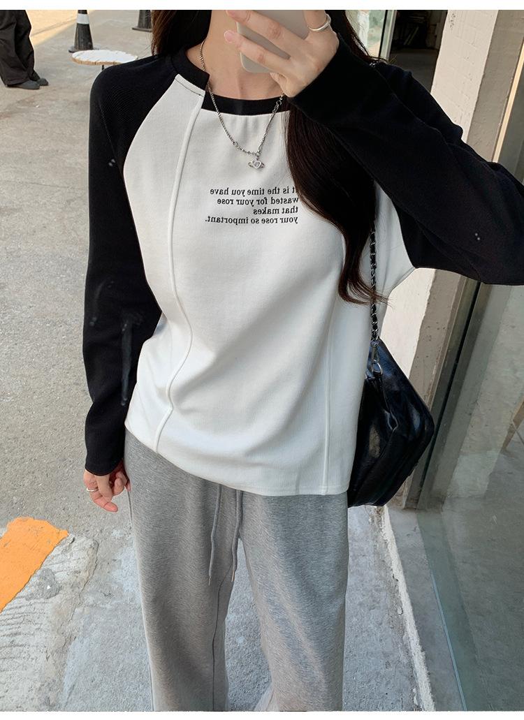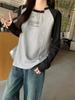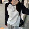 Camiseta Top de Diseño Nicho Estilo Coreano Manga Raglán Letra Suelta Color Empalmado a Medida Nuevo en Otoño 2024