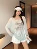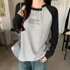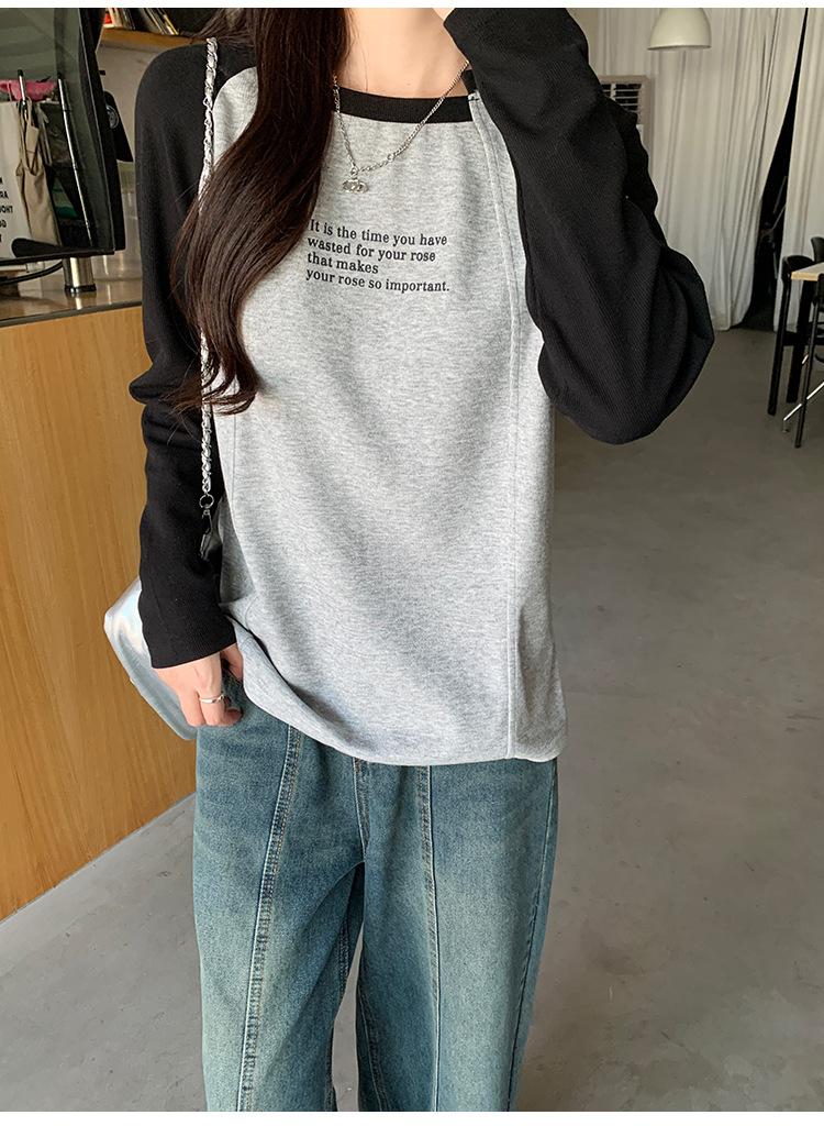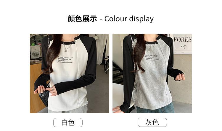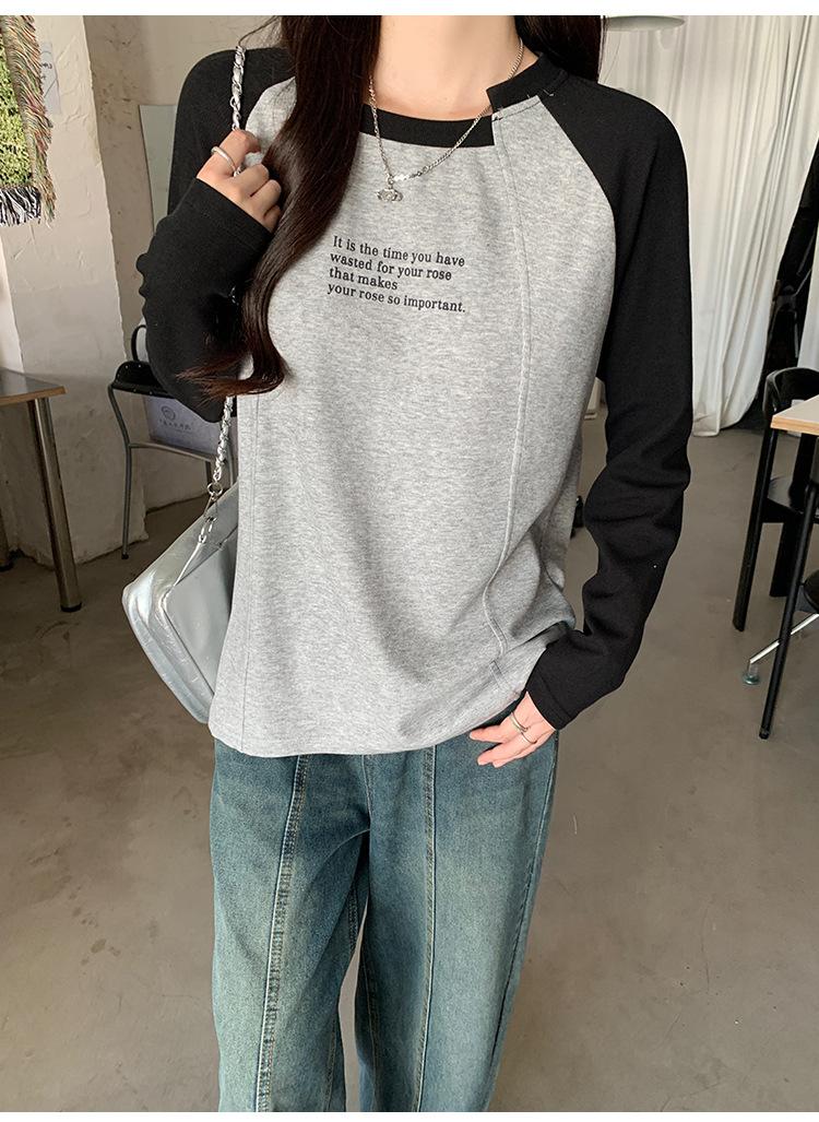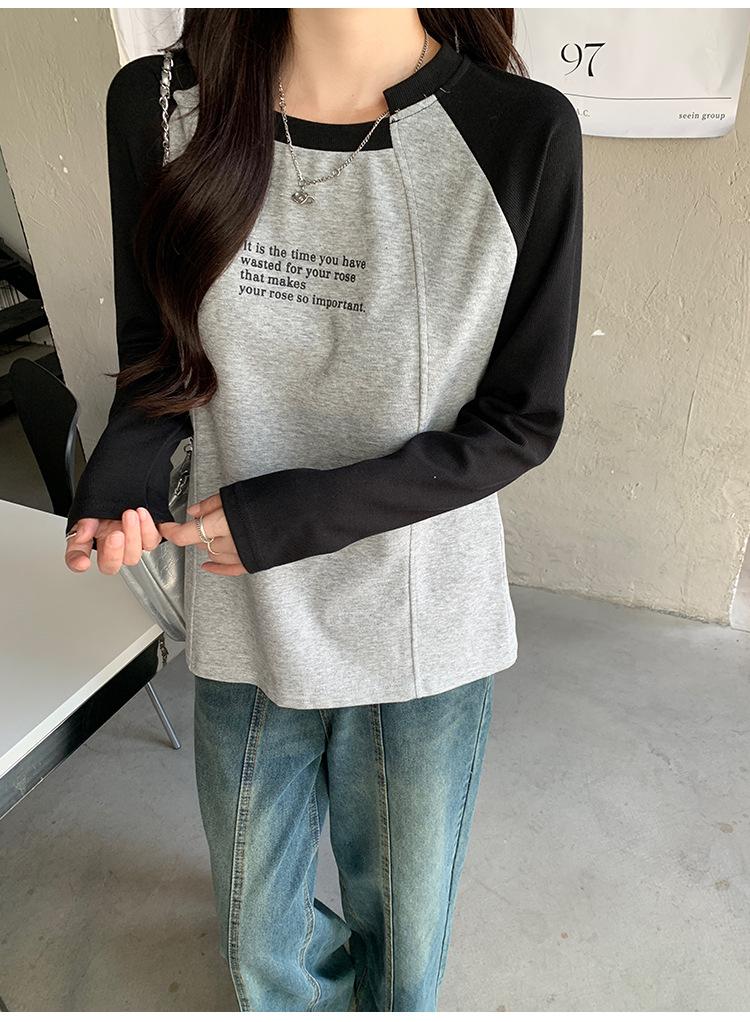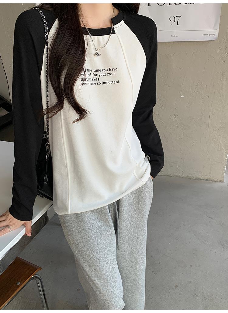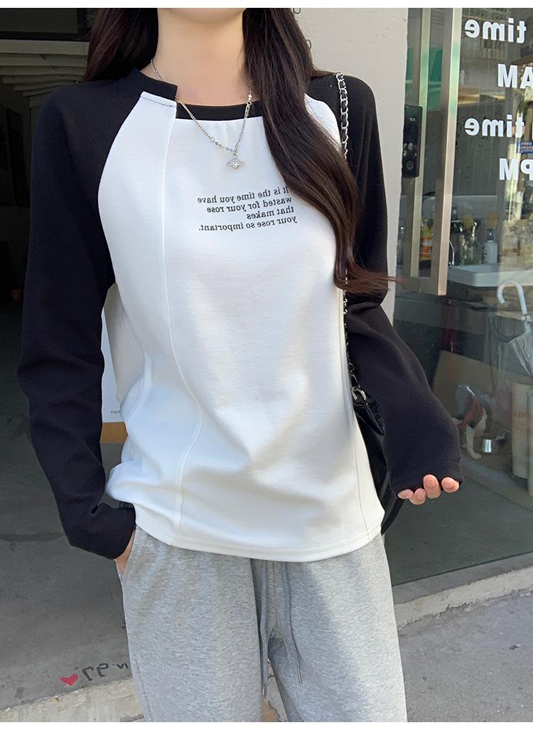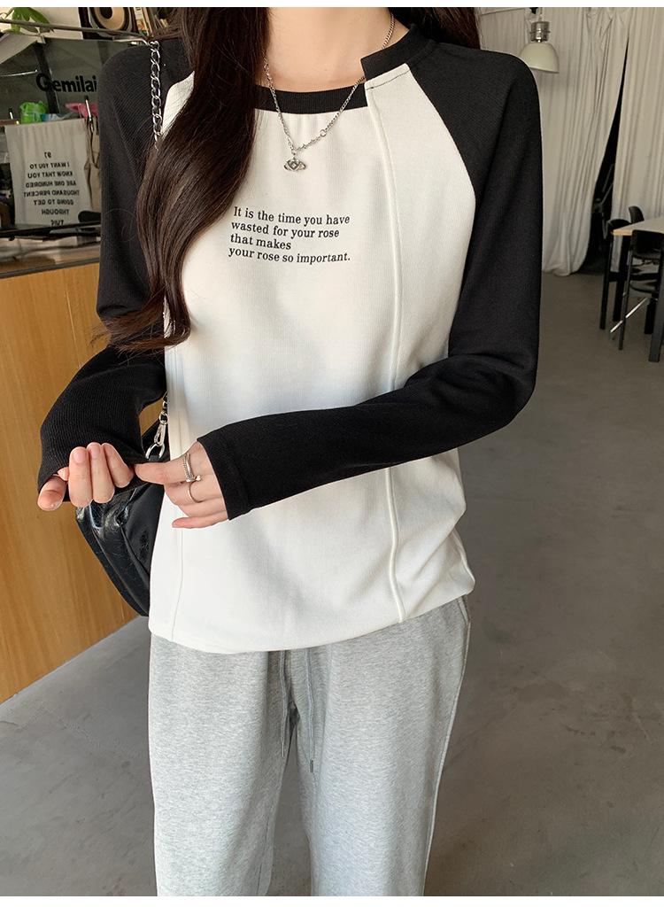 Camiseta Top de Diseño Nicho Estilo Coreano Manga Raglán Letra Suelta Color Empalmado a Medida Nuevo en Otoño 2024
