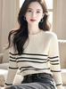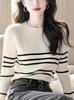 Suéter de punto a rayas blancas para mujer, otoño e invierno 2024, nuevo jersey adelgazante de alta calidad con cuello en V y manga larga.