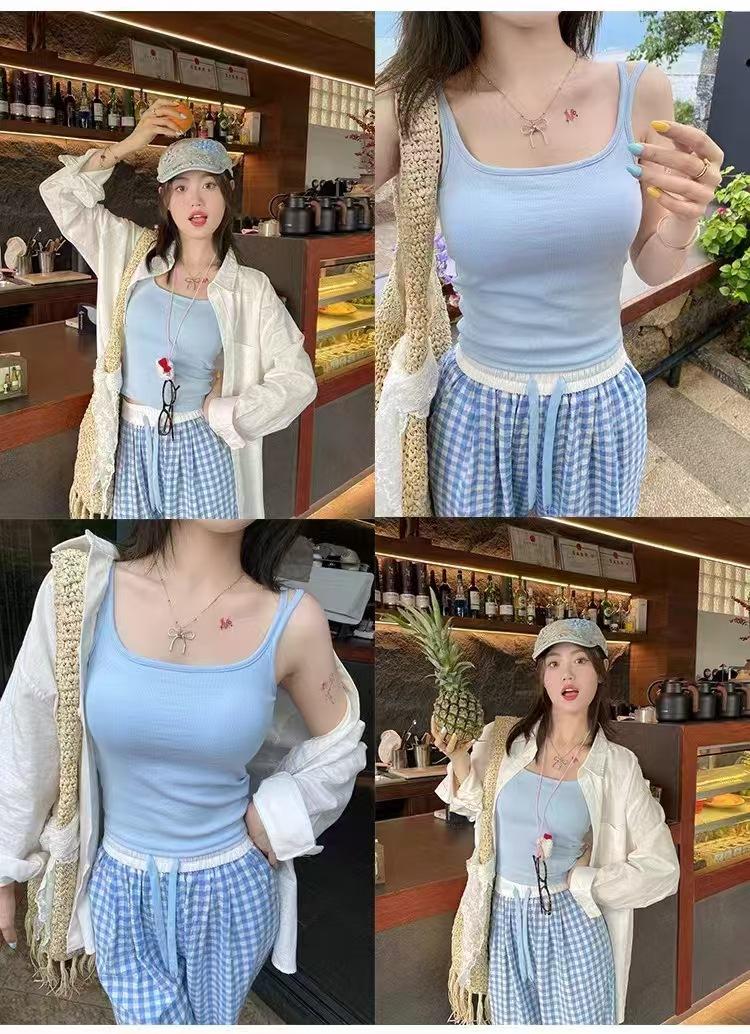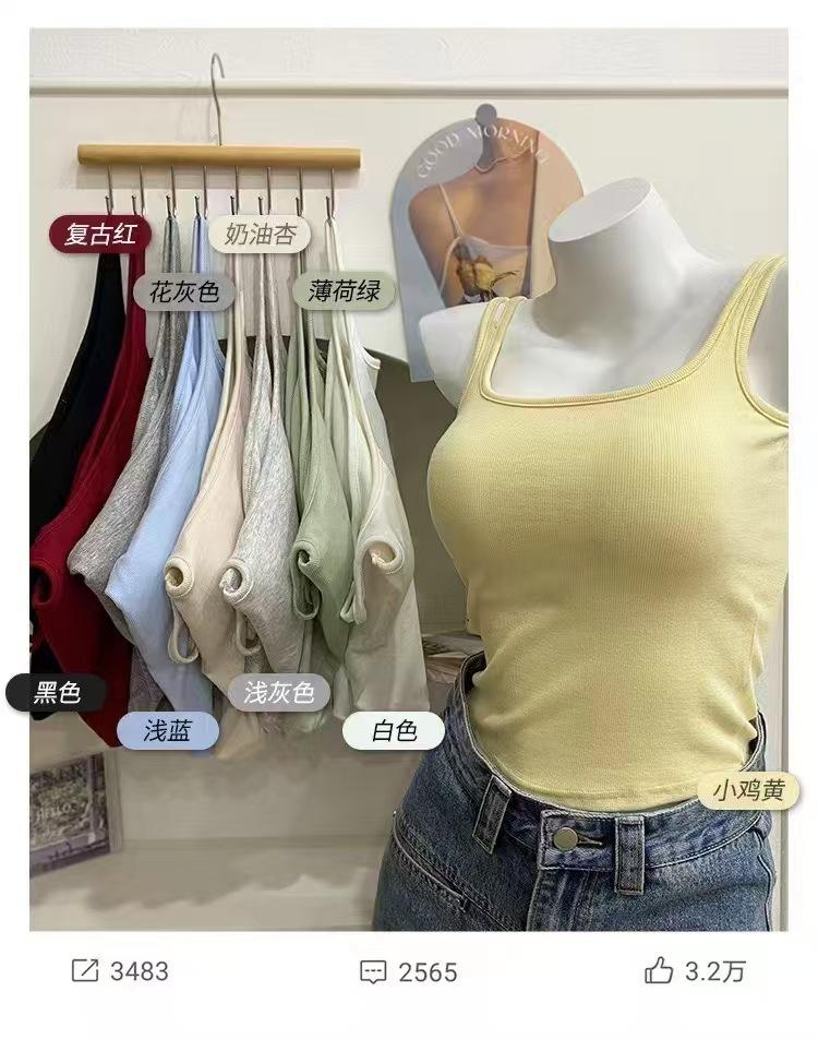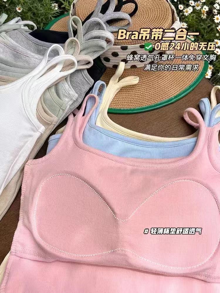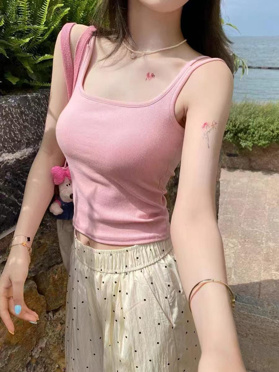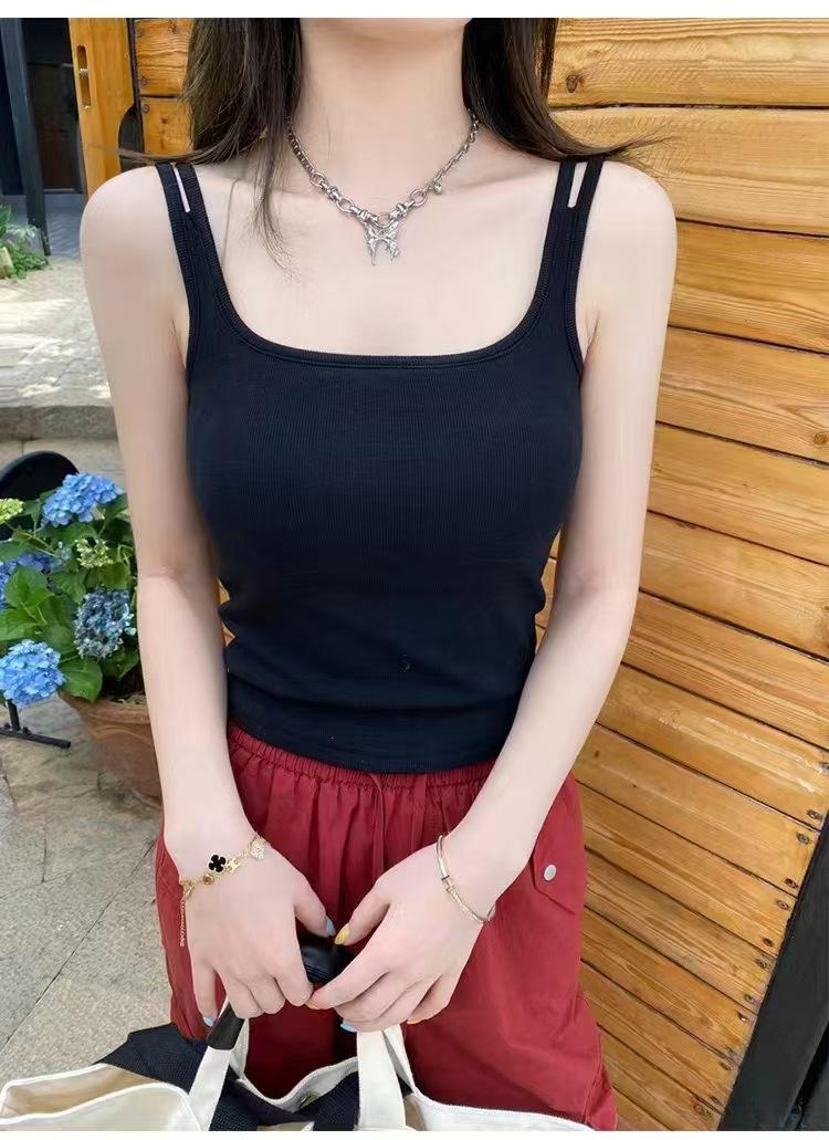 Chaleco interior de otoño e invierno con almohadilla para el pecho para mujer, nuevo estilo 2024, hermosa espalda, ropa exterior de verano, doble tirante, base, top que combina con todo.