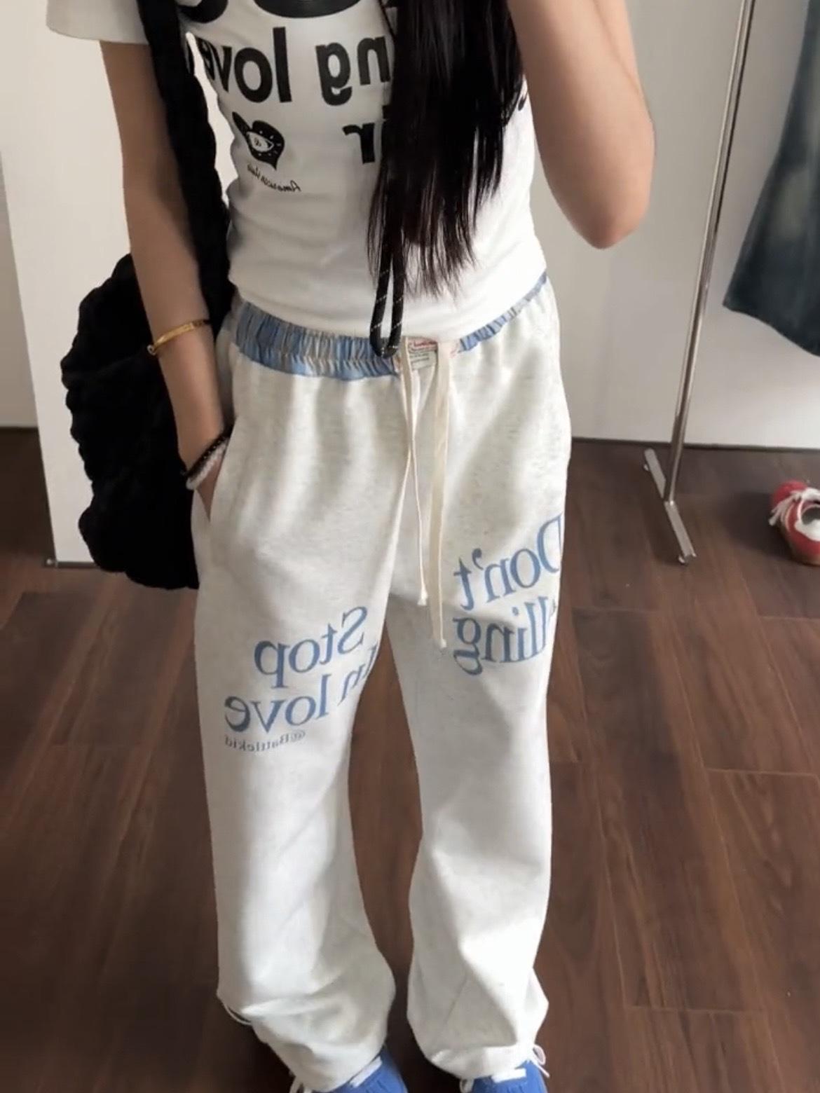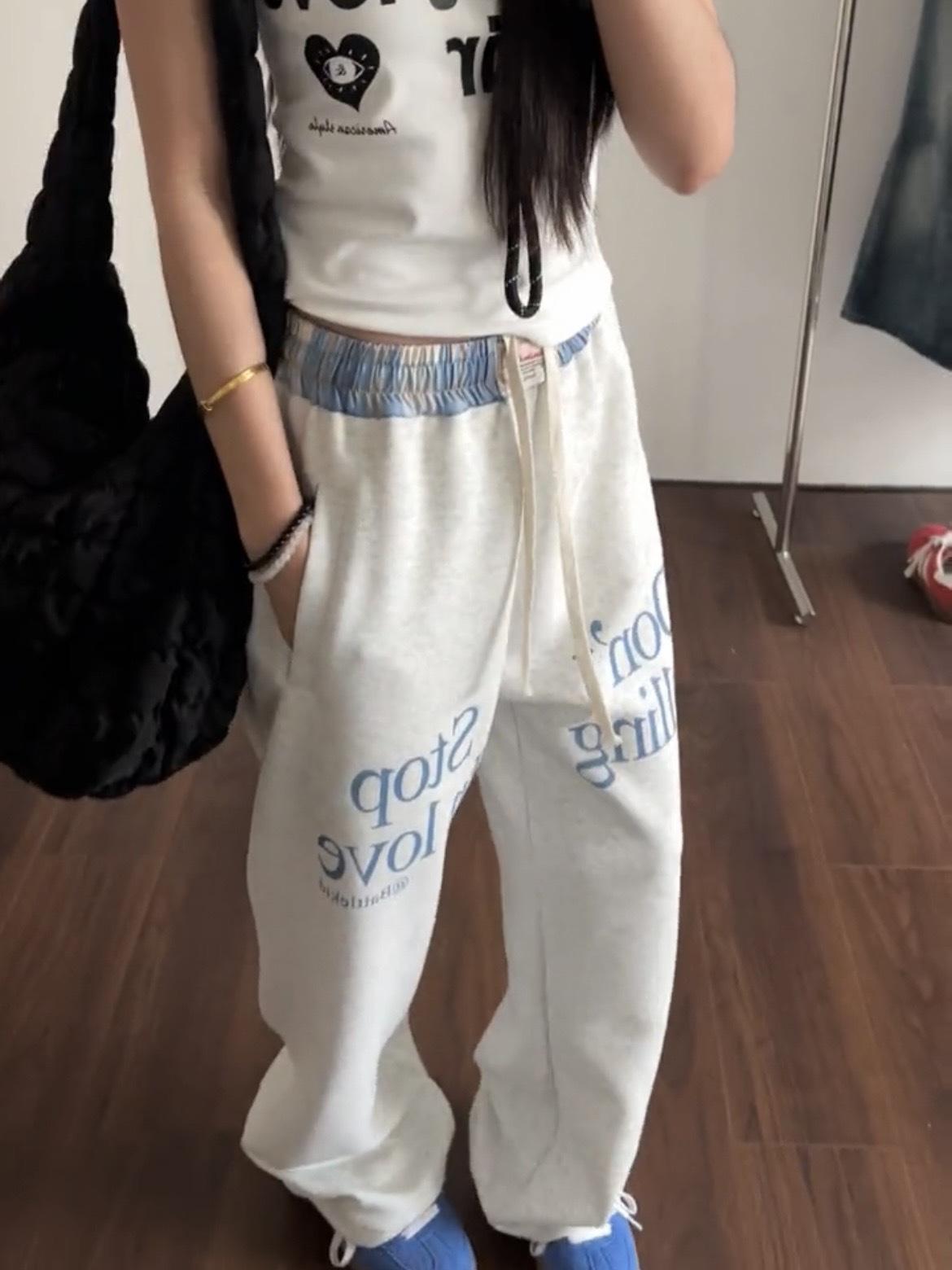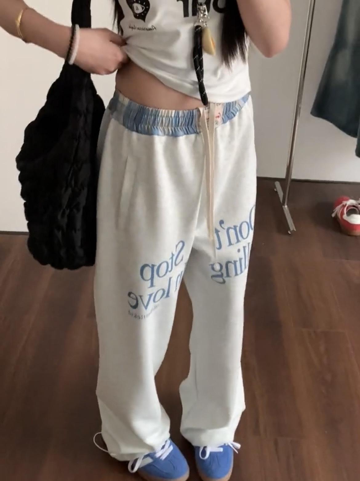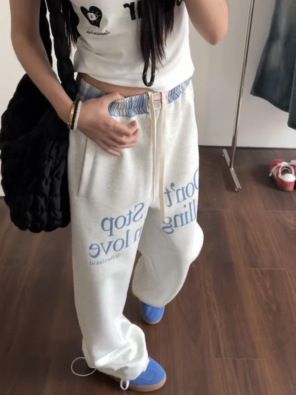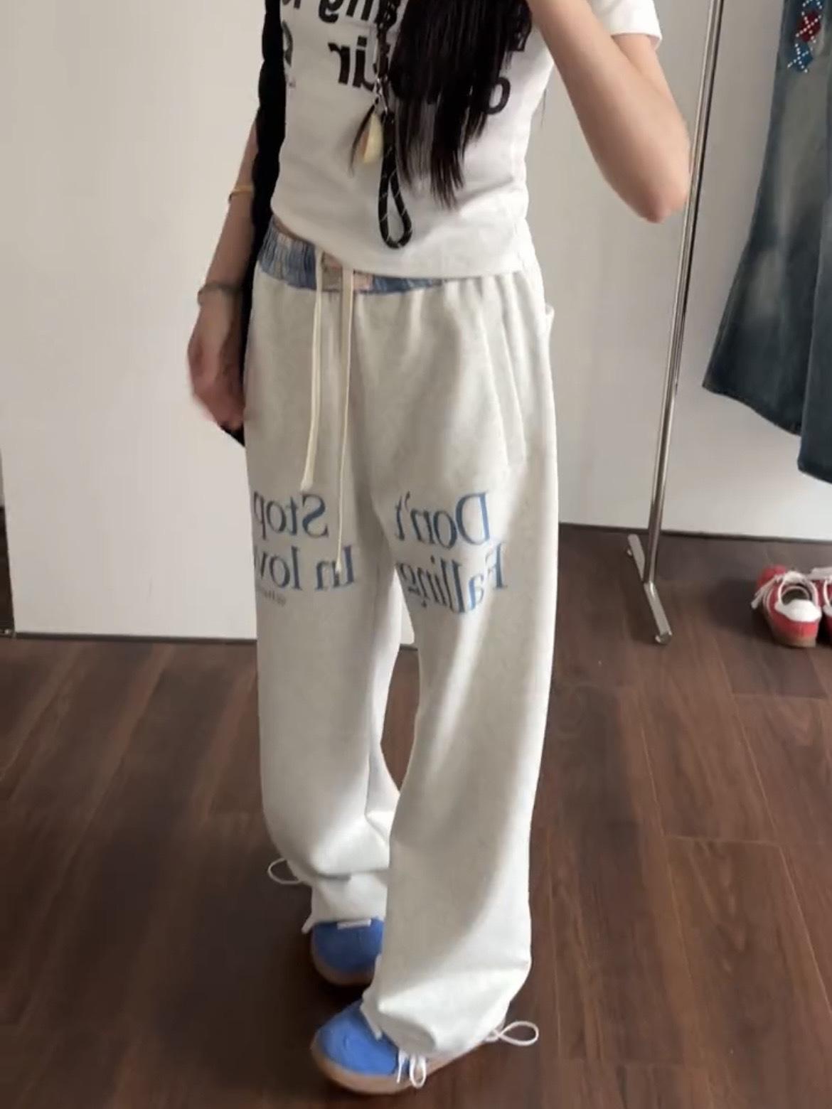 Pantalones deportivos casuales con estampado de letras de hip-hop estilo americano para mujer, pantalones deportivos de pierna recta, otoño, costura falsa de dos piezas, sueltos, de pierna ancha