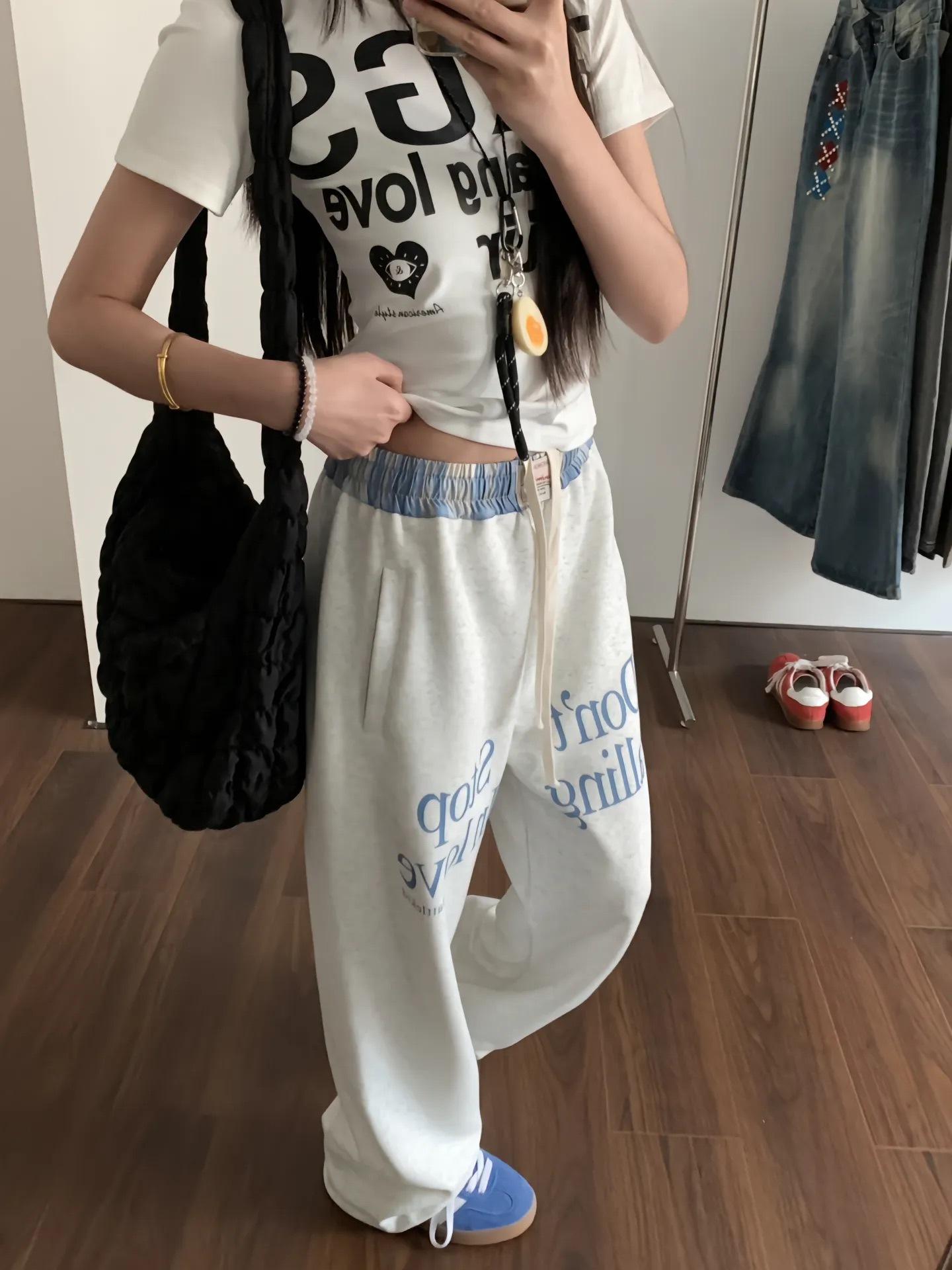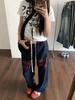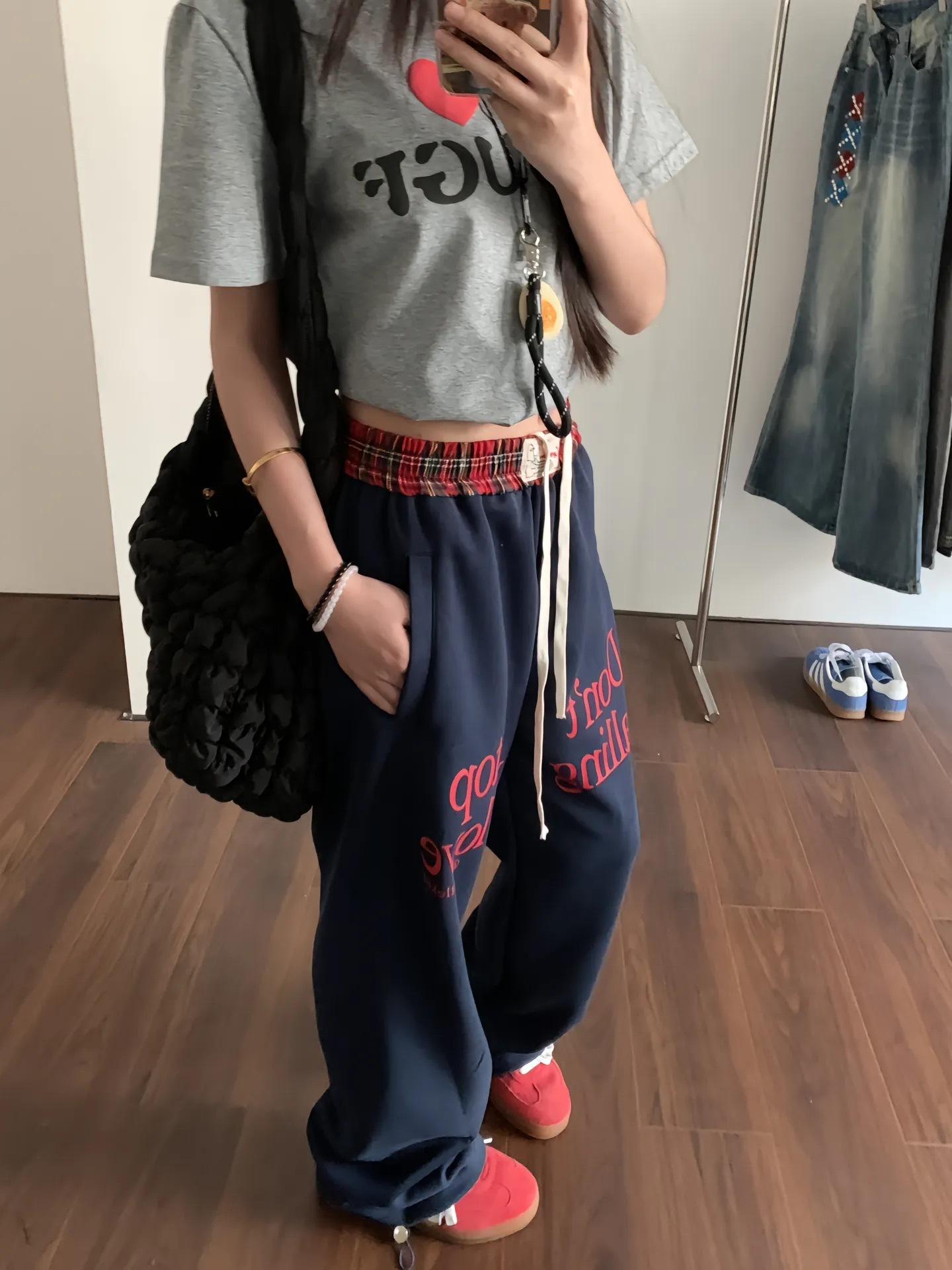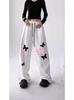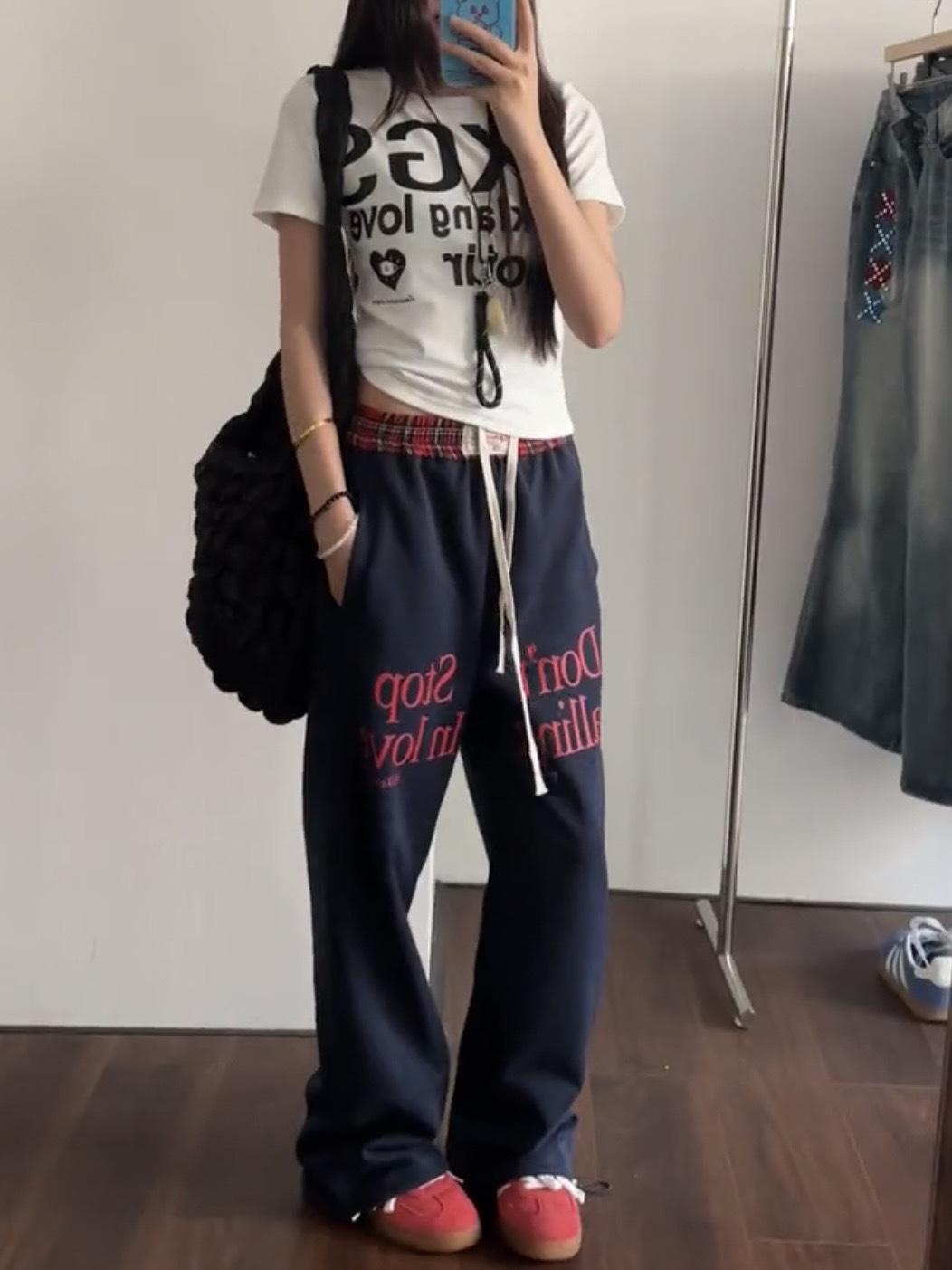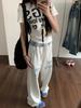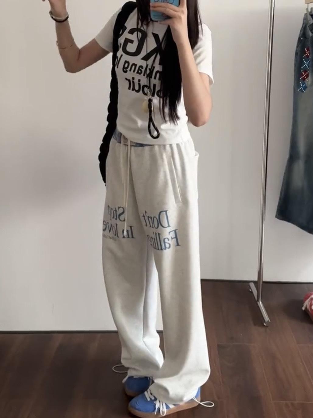 Pantalones deportivos casuales con estampado de letras de hip-hop estilo americano para mujer, pantalones deportivos de pierna recta, otoño, costura falsa de dos piezas, sueltos, de pierna ancha