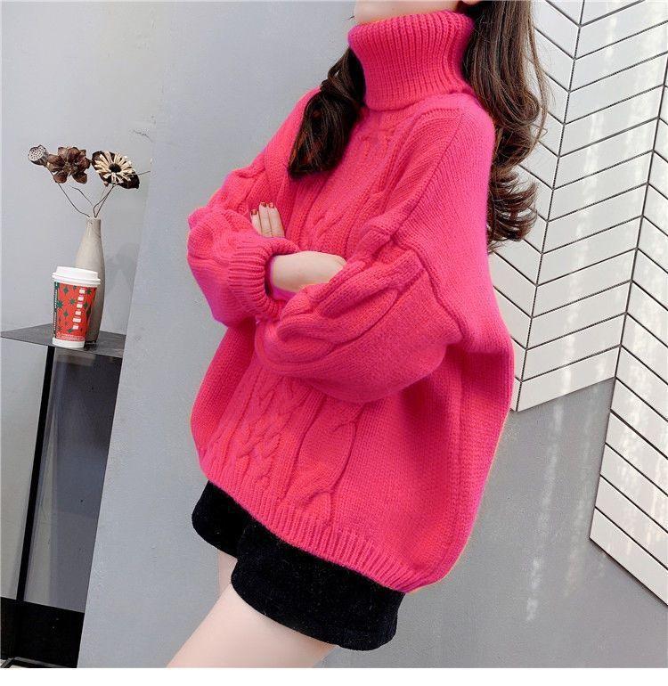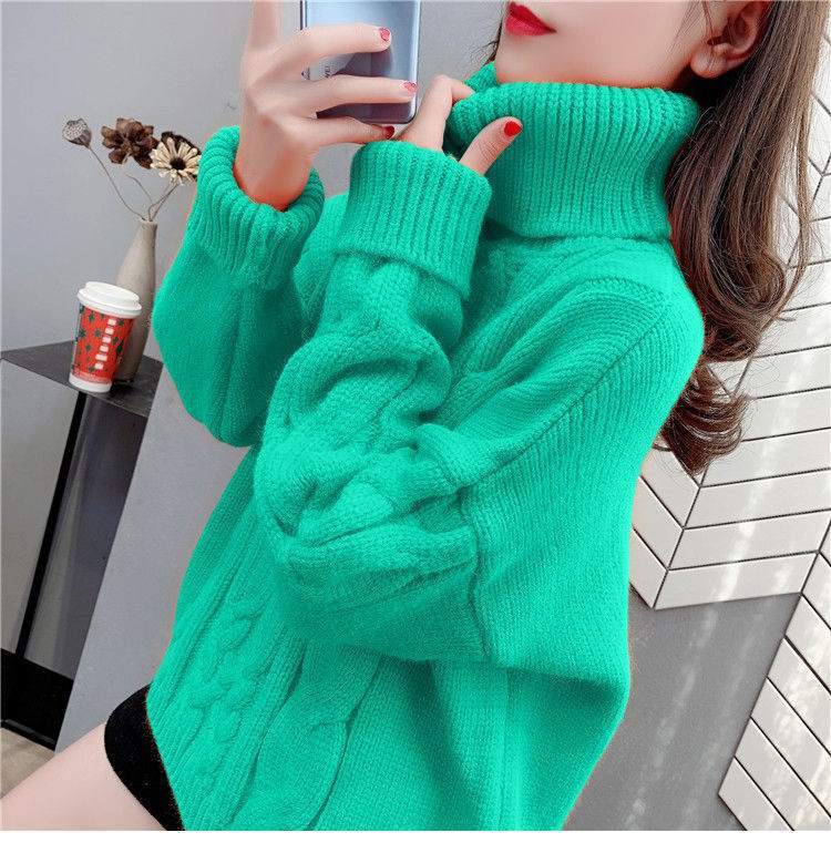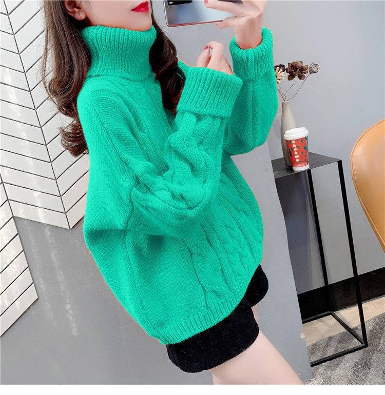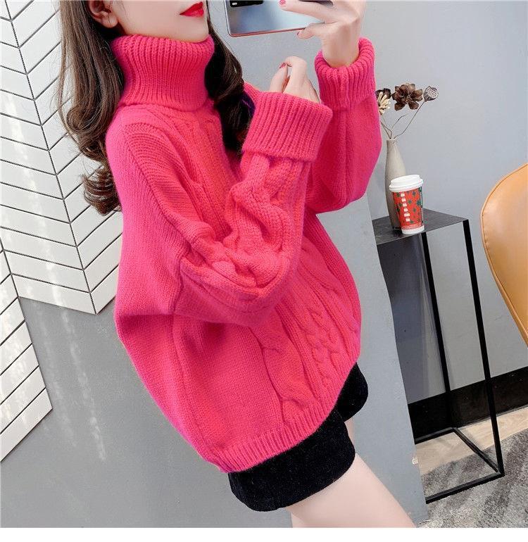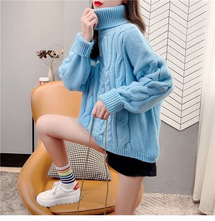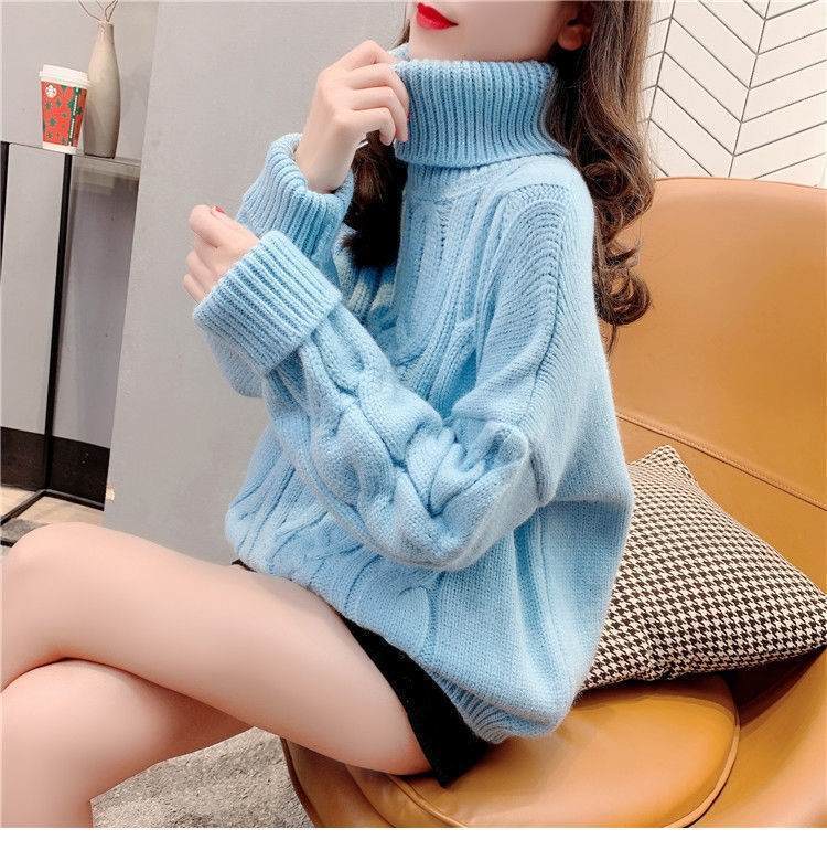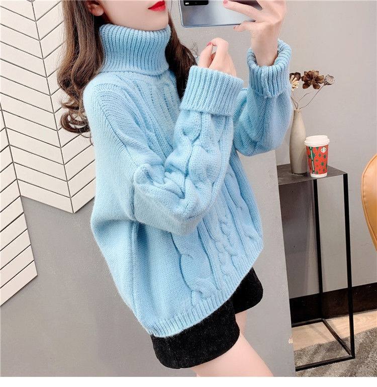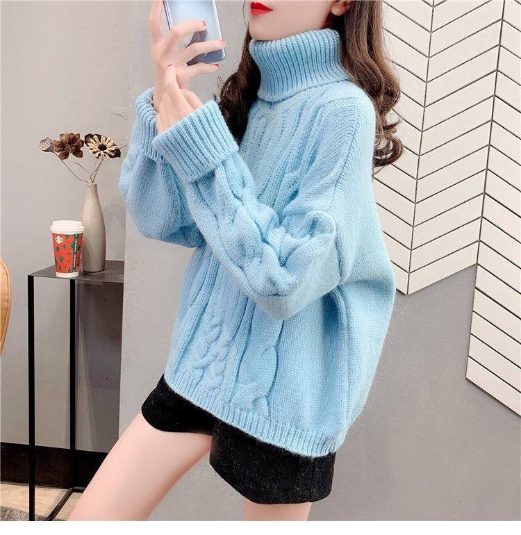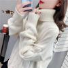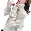 Suéter Blanco de Cuello Alto con Trenzas para Mujer Otoño e Invierno Estilo Perezoso Popular Holgado con Forro Polar Grueso Interior Camiseta Base de Punto