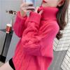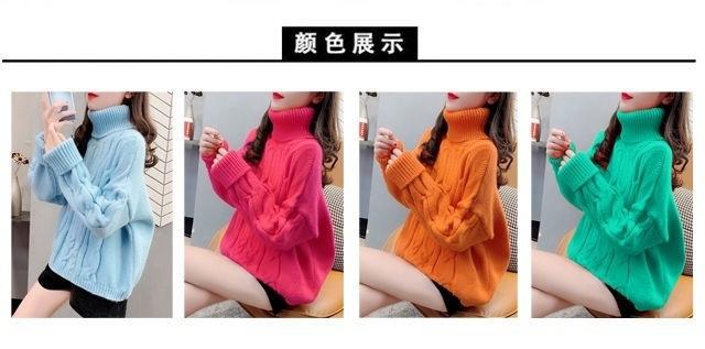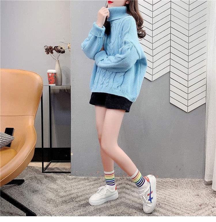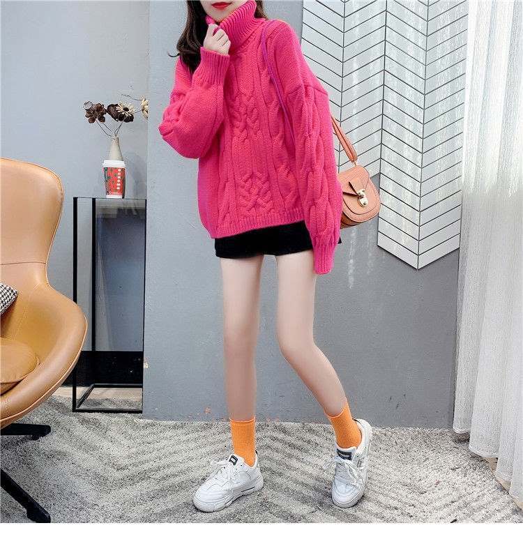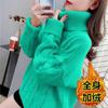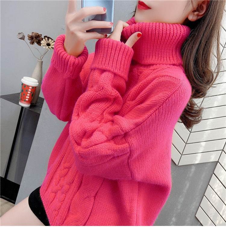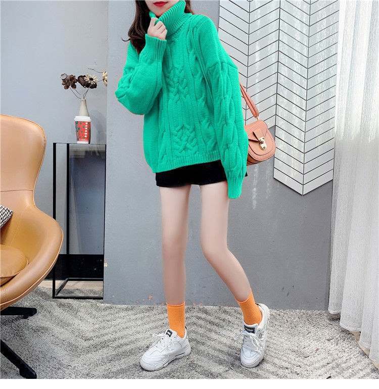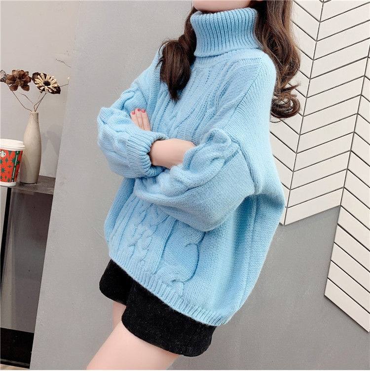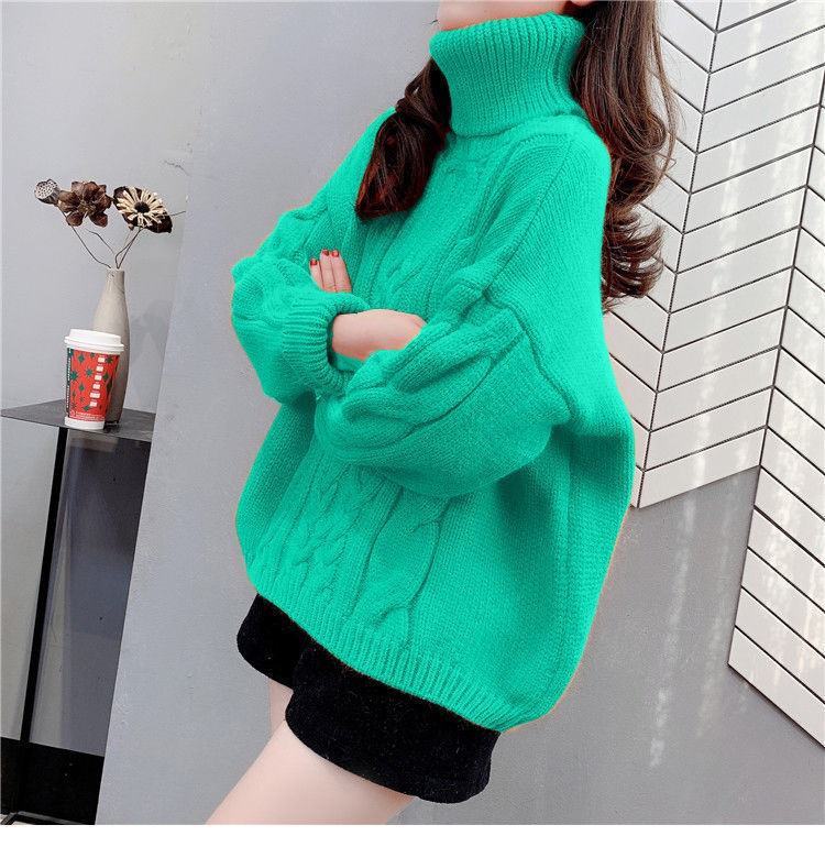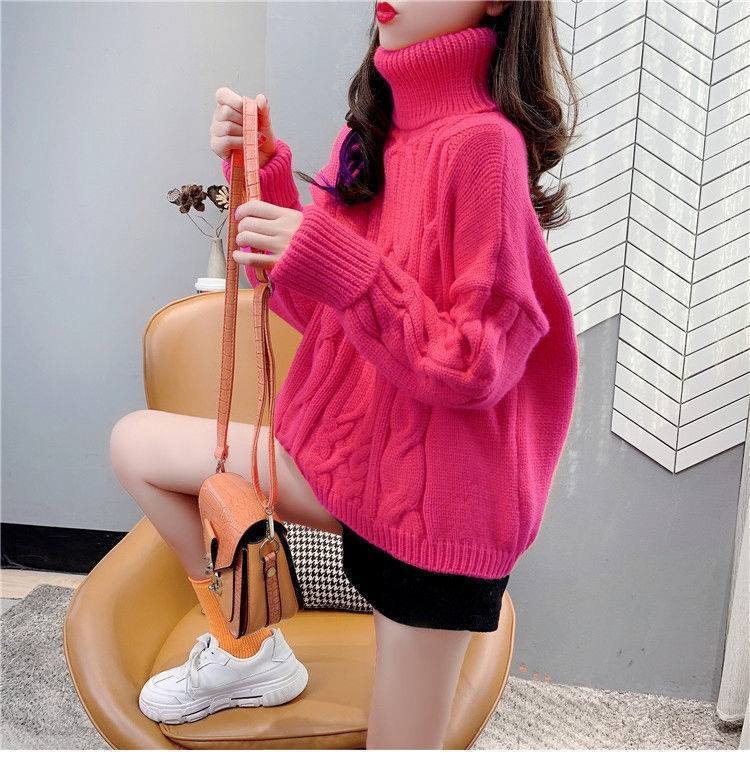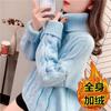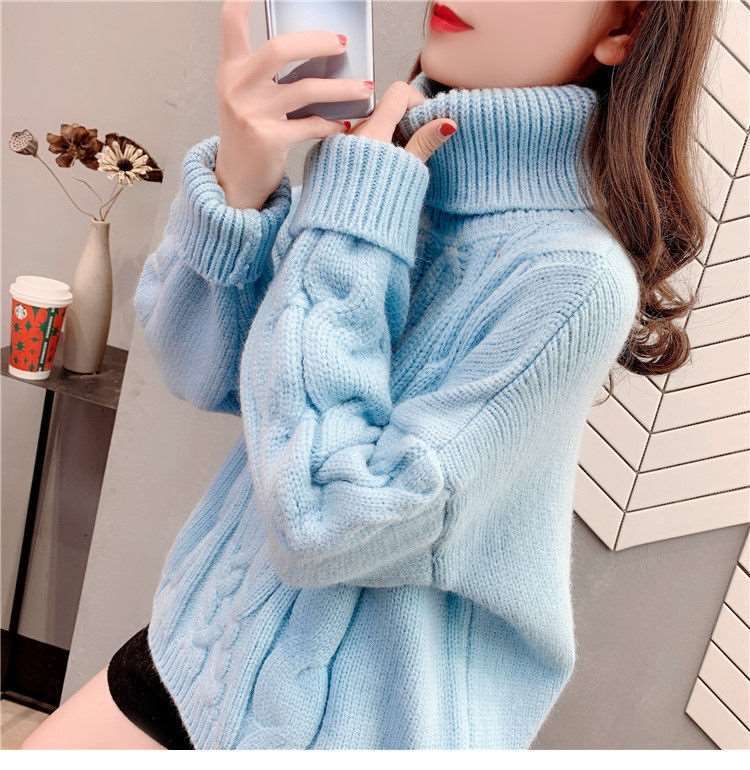 Suéter Blanco de Cuello Alto con Trenzas para Mujer Otoño e Invierno Estilo Perezoso Popular Holgado con Forro Polar Grueso Interior Camiseta Base de Punto