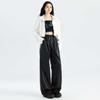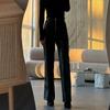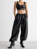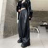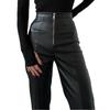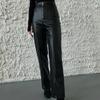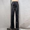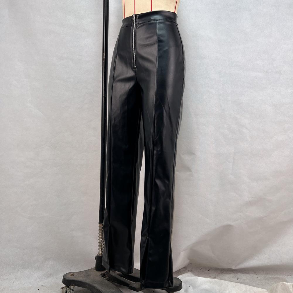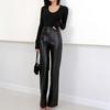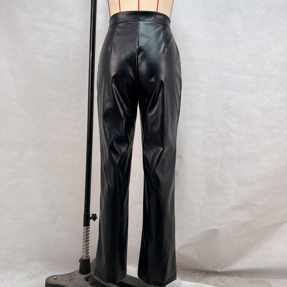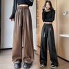 Pantalones casuales de cuero transfronterizos europeos y americanos, otoño e invierno, cintura alta, adelgazantes, pantalones casuales rectos, pantalones de cuero de PU con pierna ancha, color sólido dividido