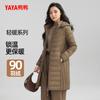 Chaqueta de plumón de pato para mujer 2025 Invierno Ligera Media longitud Nueva Moda Capucha Desmontable Abrigo Entallado de Cintura J