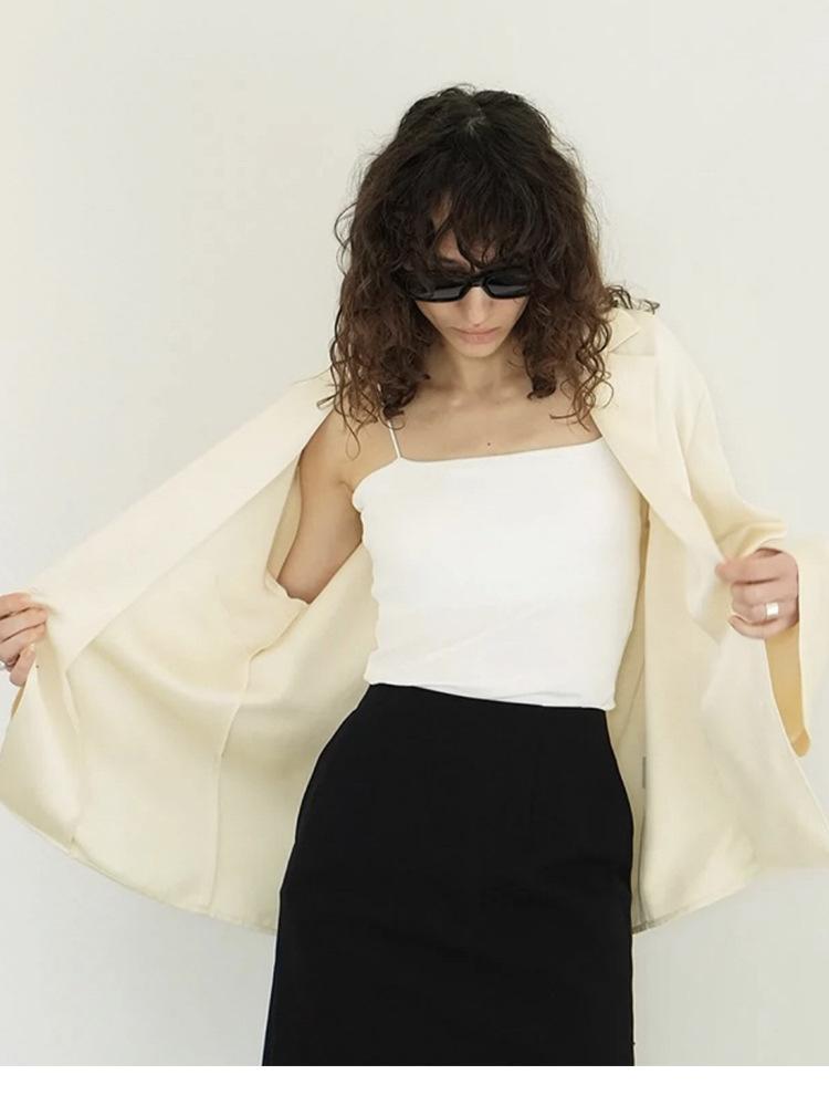 Compra MCL Hecho en Casa Estilo Matsumoto Camisola Fina para Mujer 24ss Primavera y Verano con Almohadilla en el Pecho Elástica Combinable Top Básico al por mayor en Joom.pro