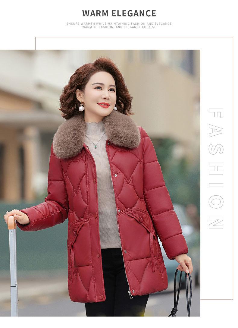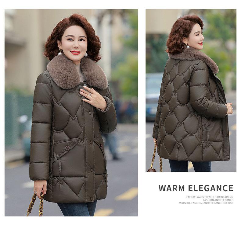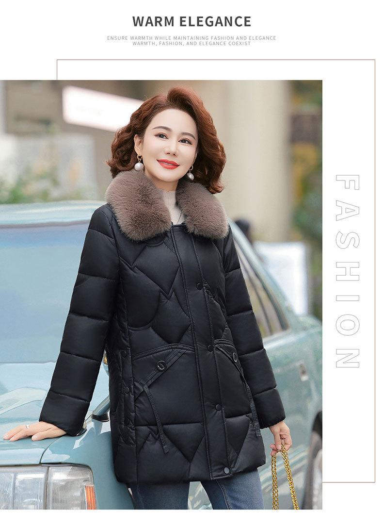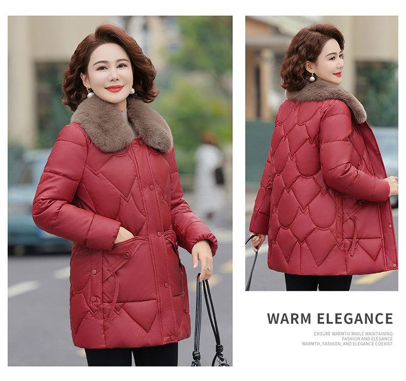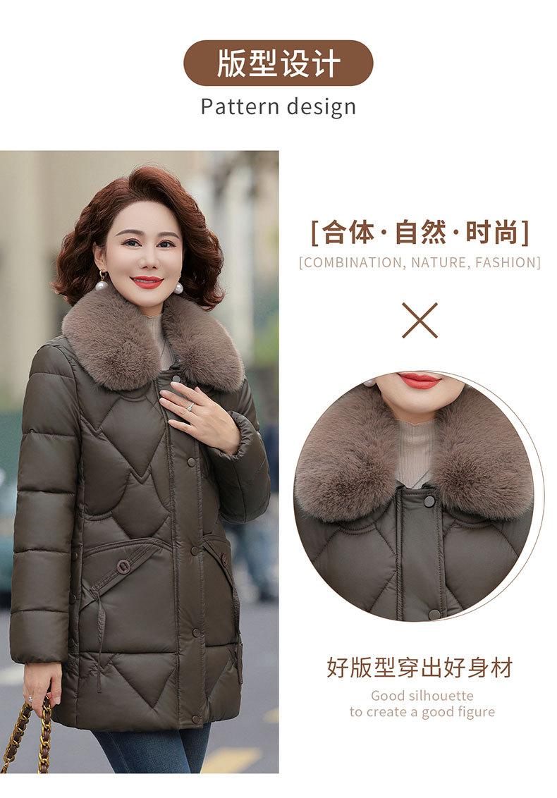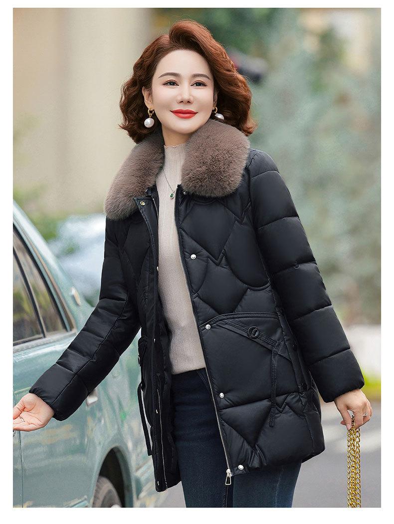 Abrigo nuevo para madre de mediana edad para mujer de talla grande, grueso y cálido, para mujeres de mediana edad y mayores de 50 años, con cuello de lana, holgado, acolchado de algodón