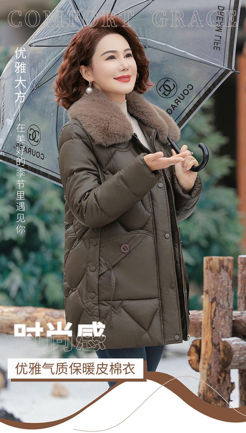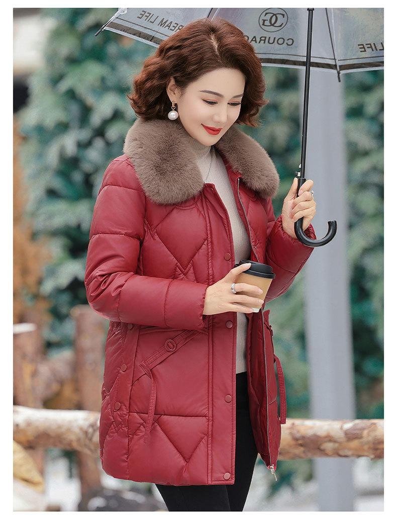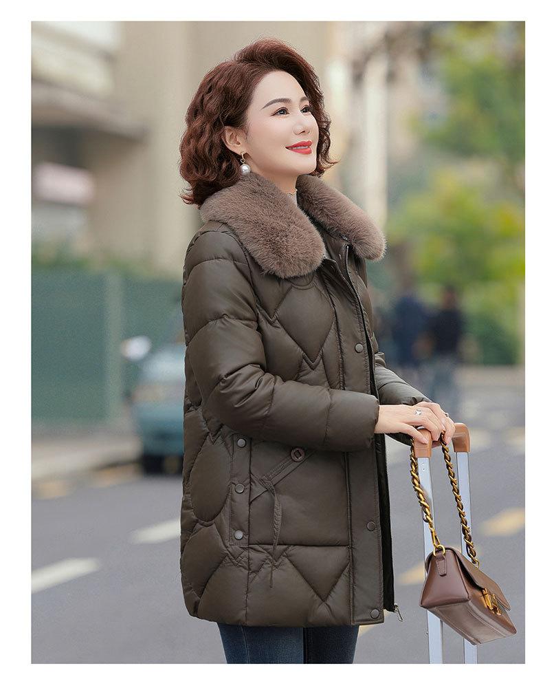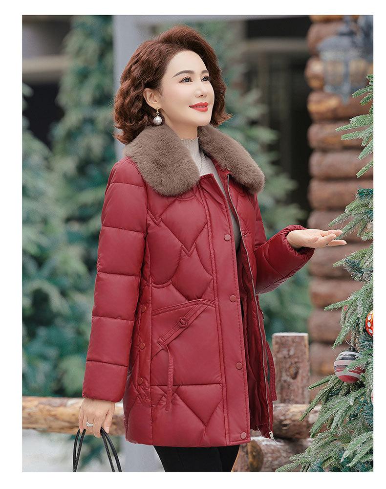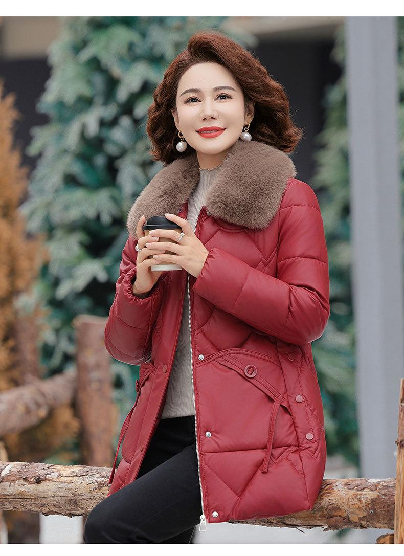 Abrigo nuevo para madre de mediana edad para mujer de talla grande, grueso y cálido, para mujeres de mediana edad y mayores de 50 años, con cuello de lana, holgado, acolchado de algodón
