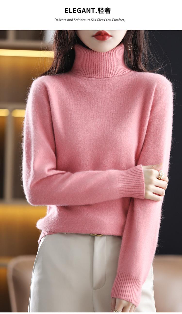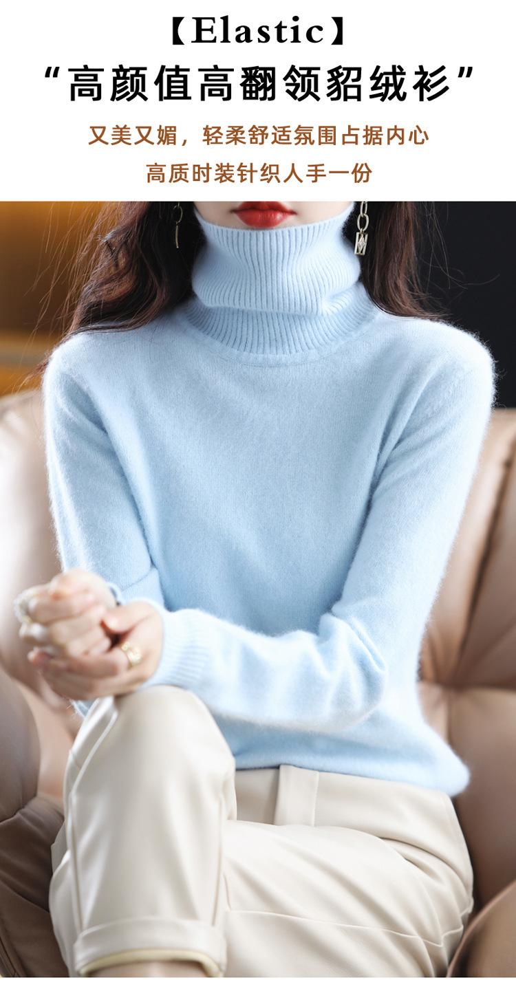Suéter de punto de cachemira de color liso, holgado, de cuello alto, corto, de terciopelo de visón, para mujer, otoño e invierno, novedad