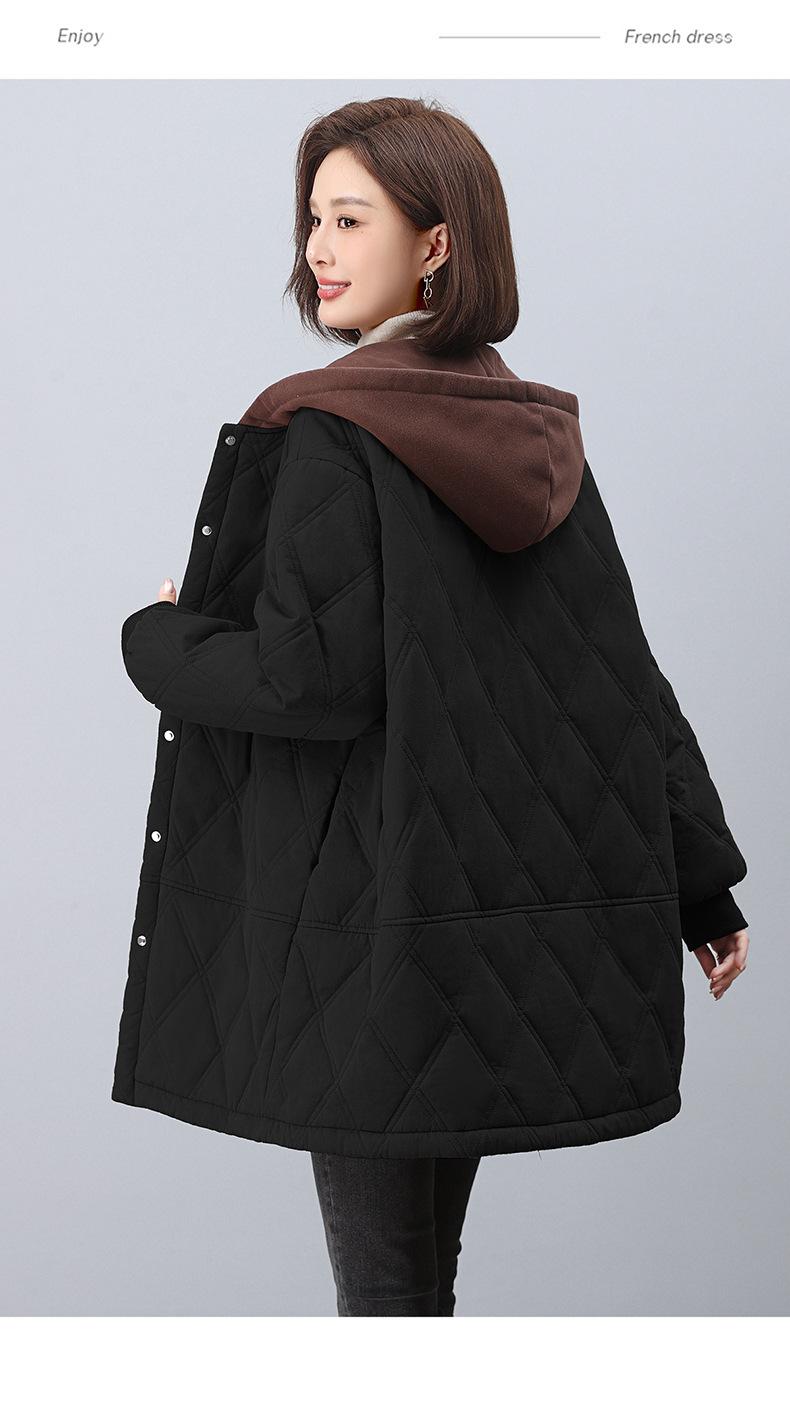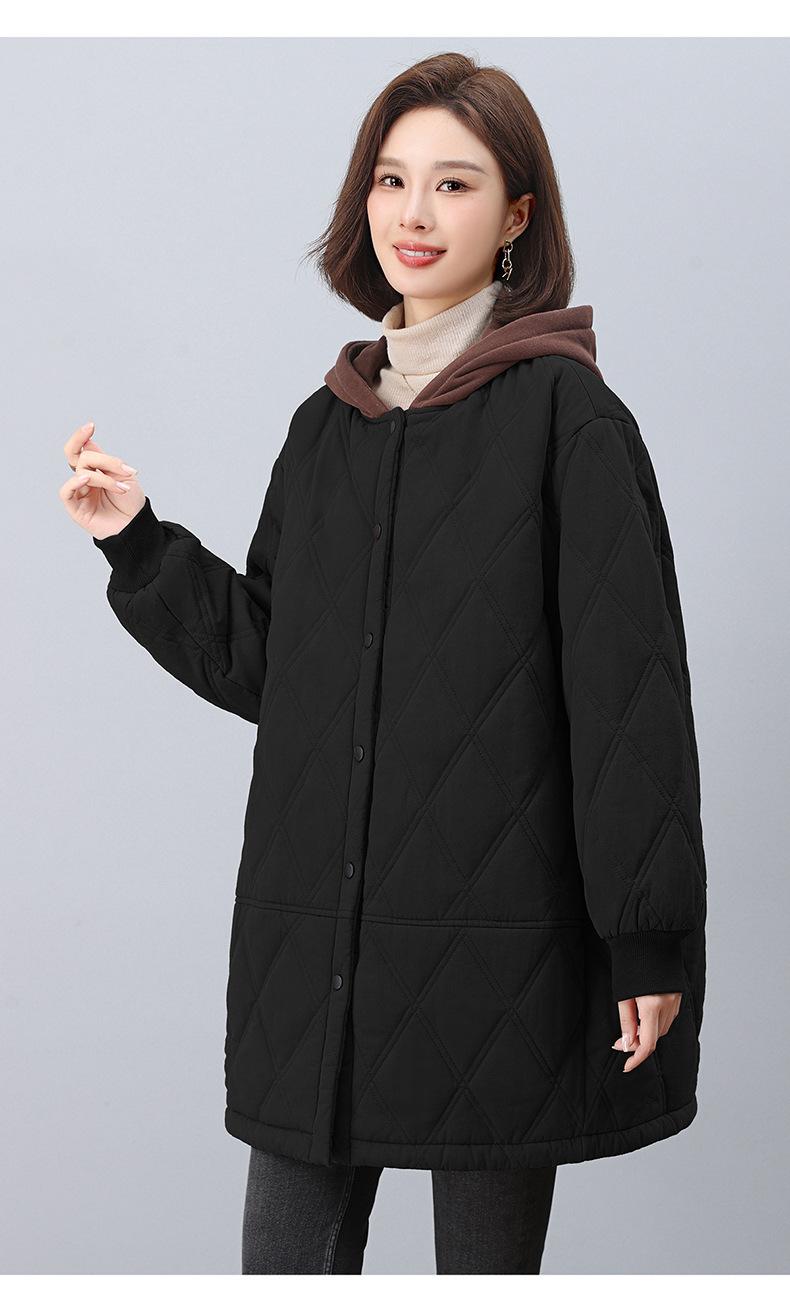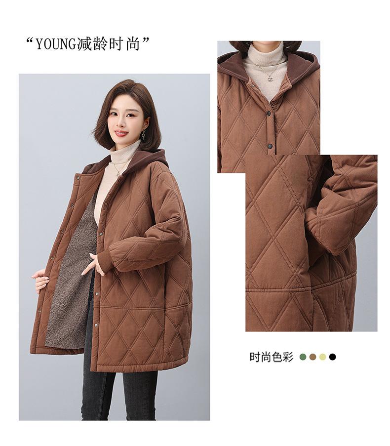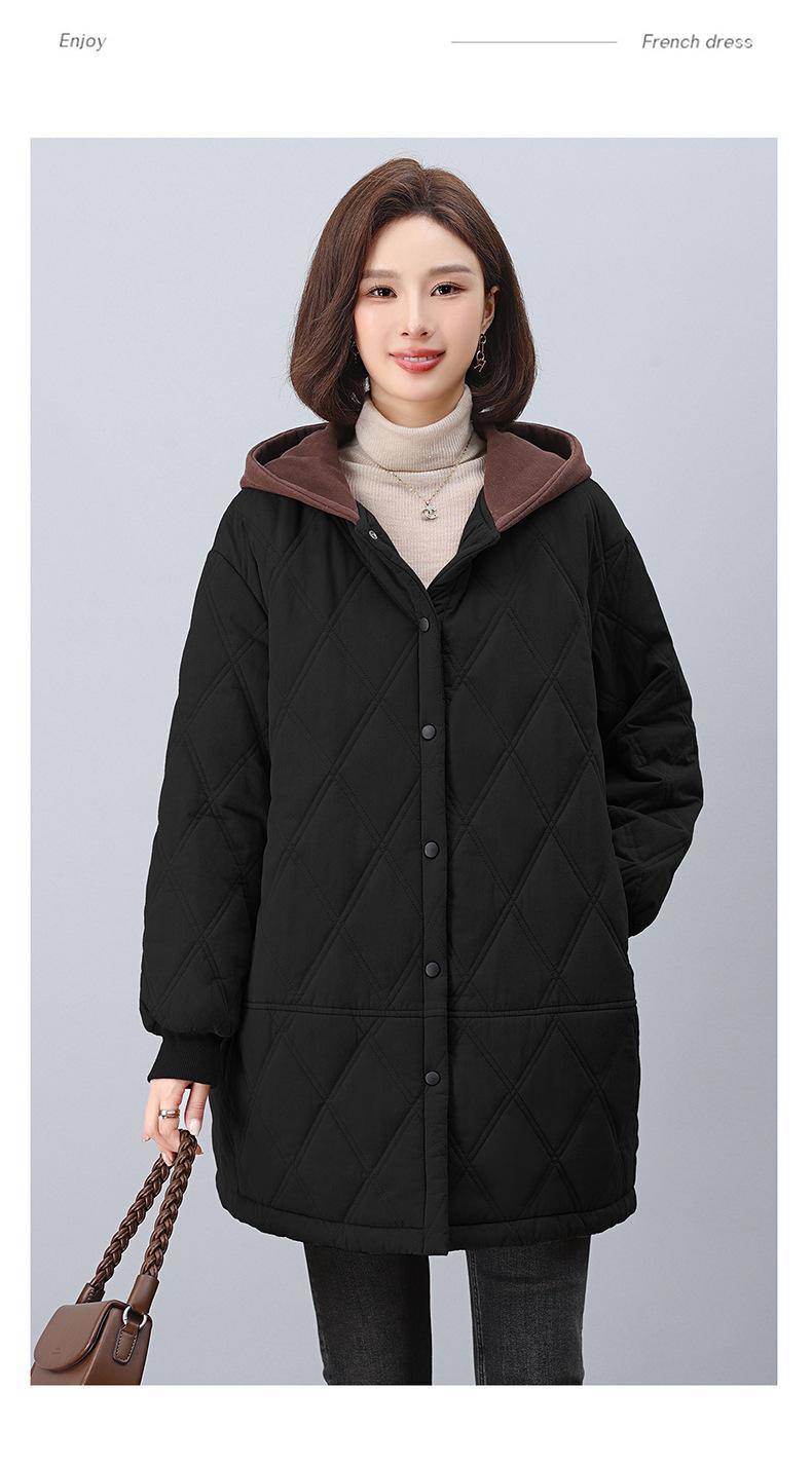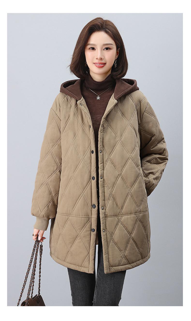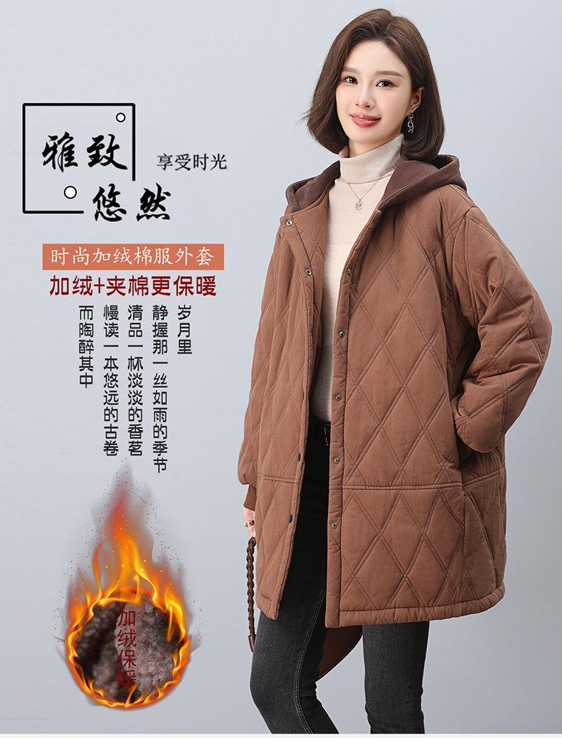 Chaqueta acolchada de algodón de longitud media con forro polar para mujer 2024 invierno nueva holgada talla grande para madre de mediana edad y anciana abrigo grueso cálido acolchado de algodón