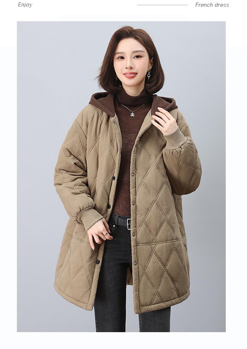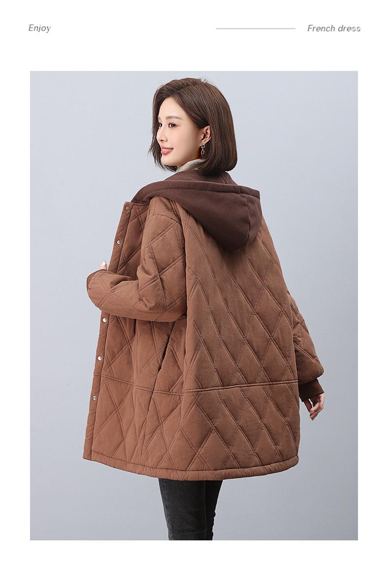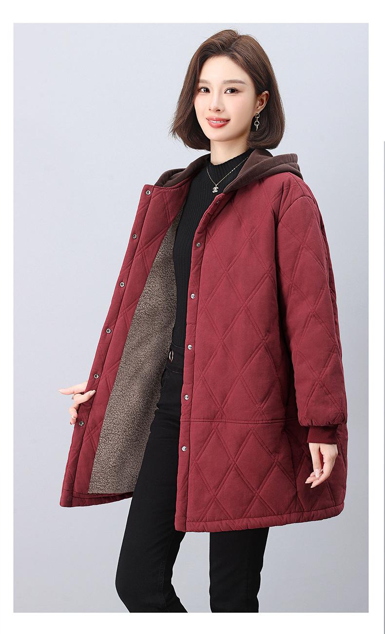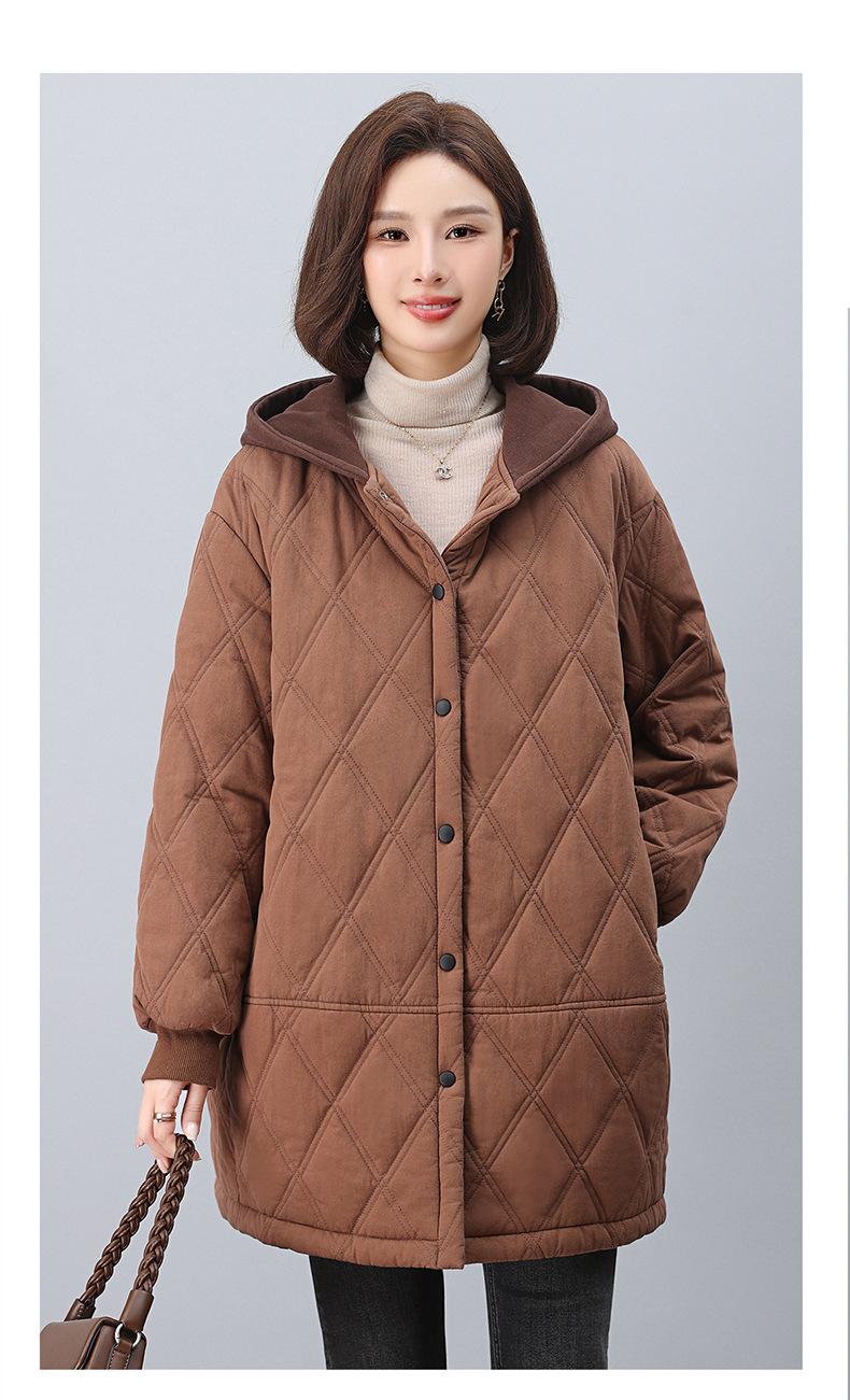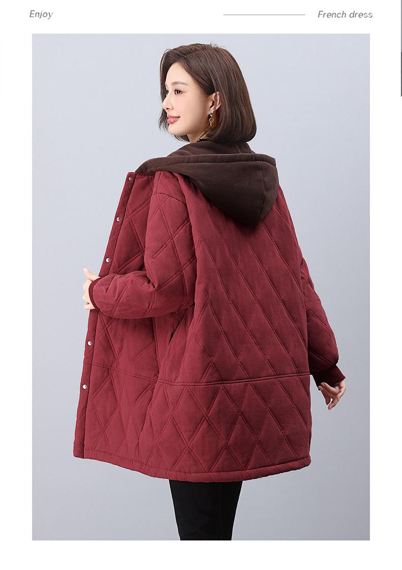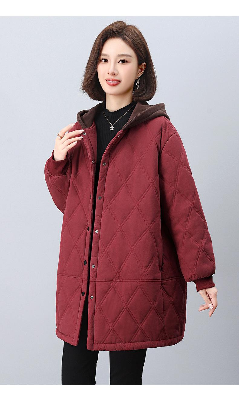 Chaqueta acolchada de algodón de longitud media con forro polar para mujer 2024 invierno nueva holgada talla grande para madre de mediana edad y anciana abrigo grueso cálido acolchado de algodón