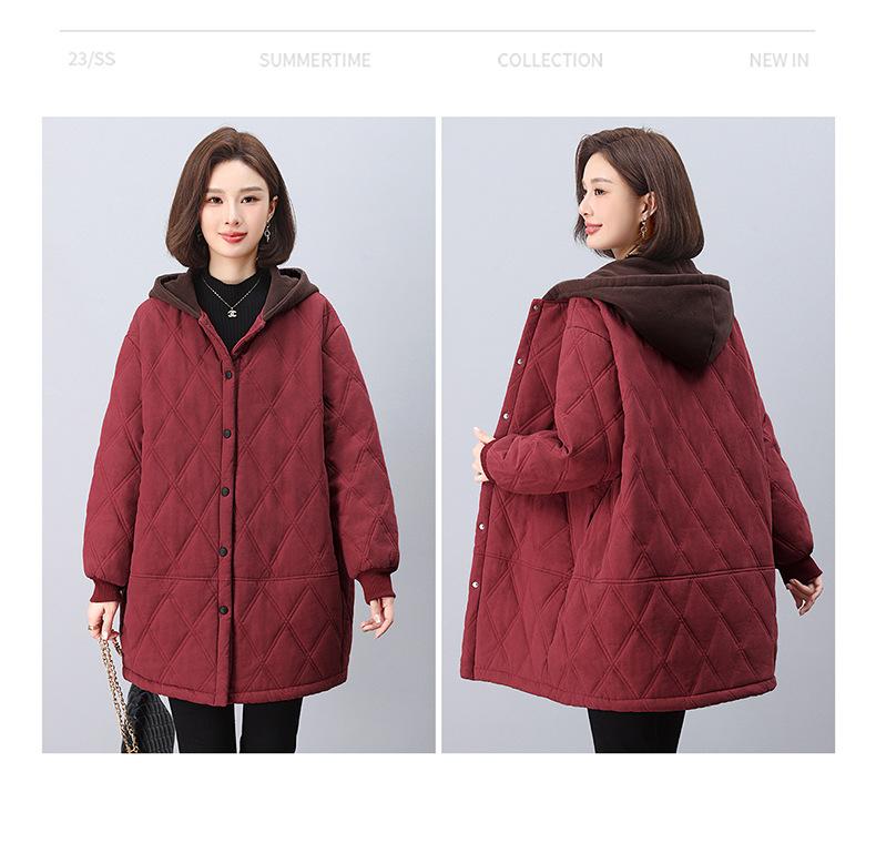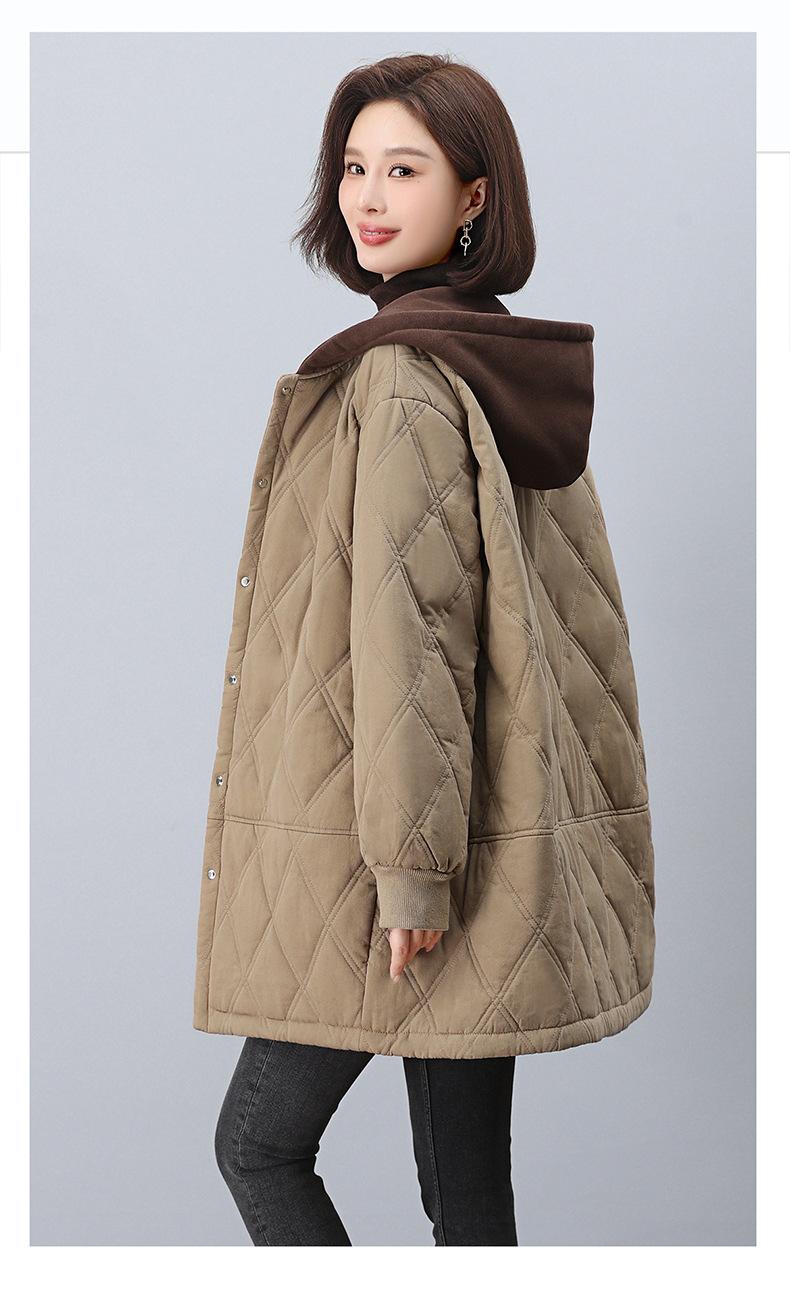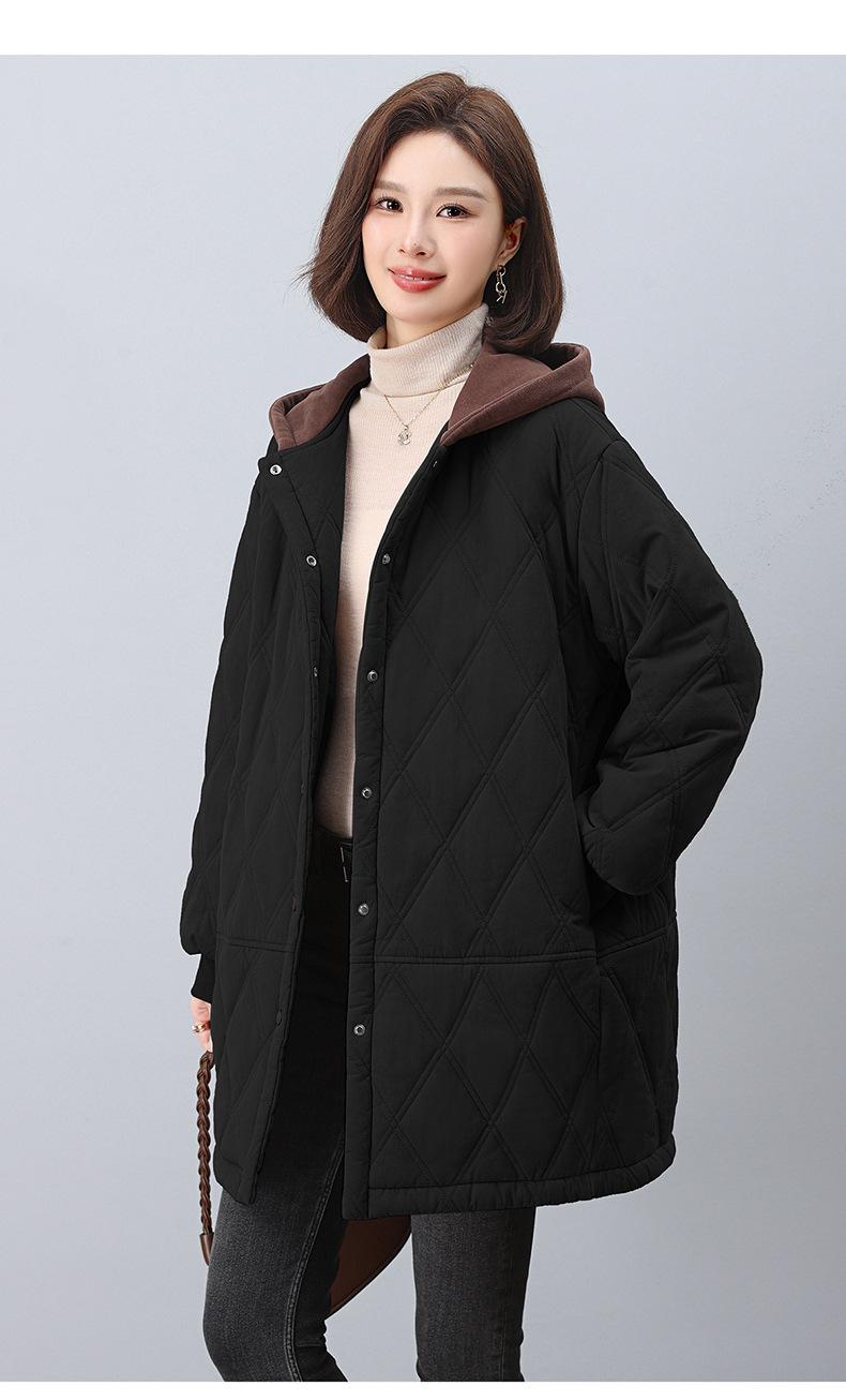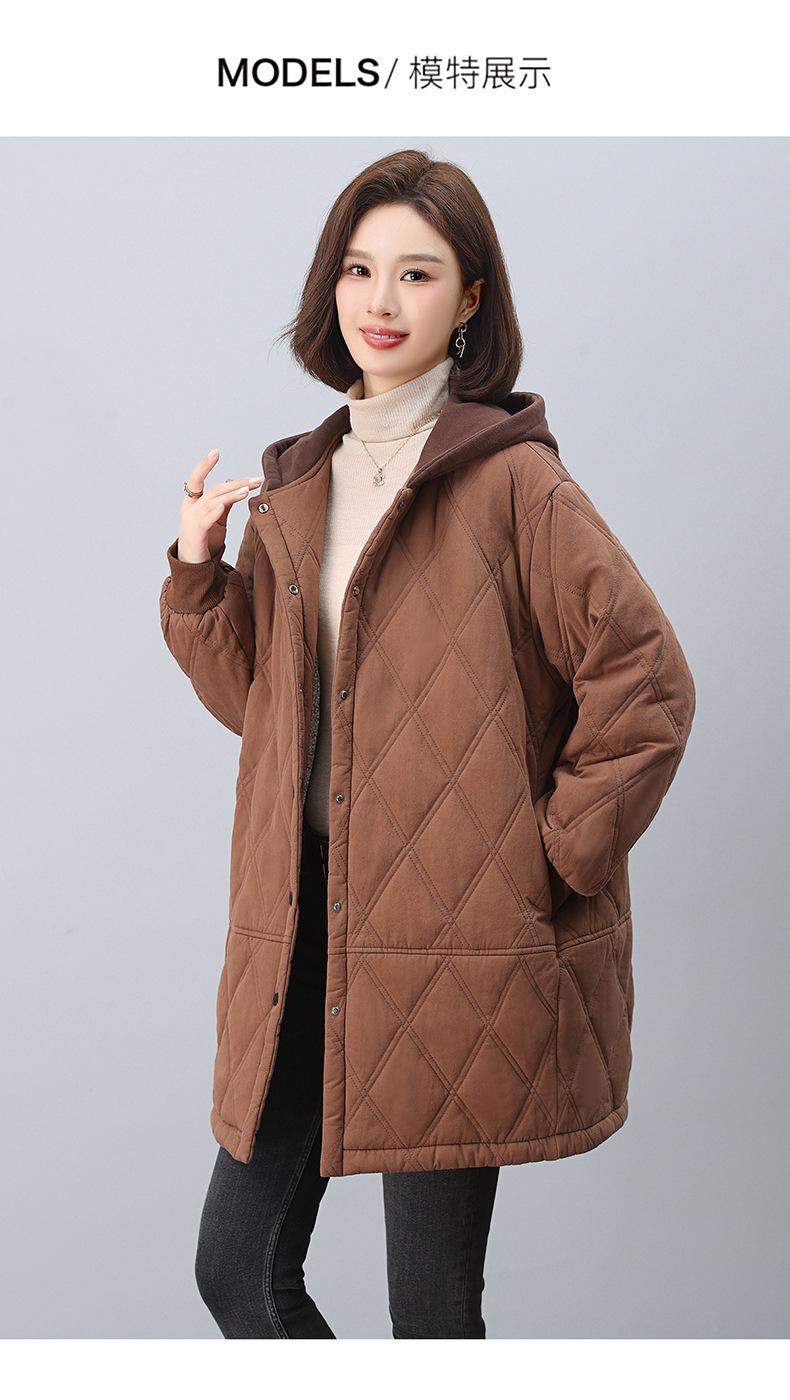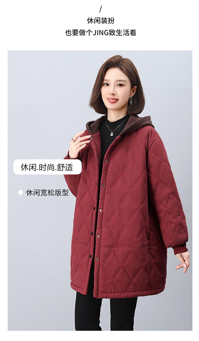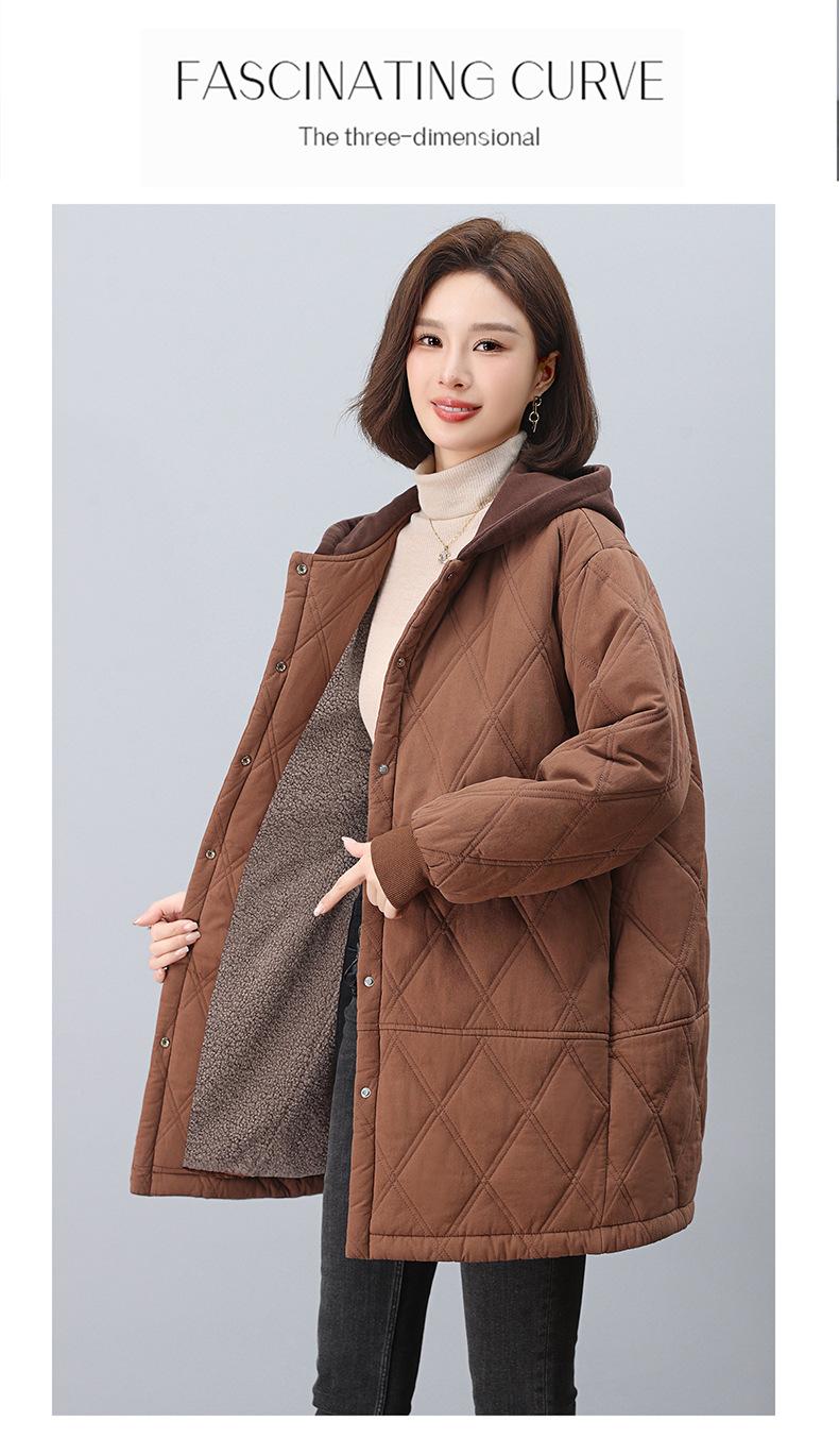 Chaqueta acolchada de algodón de longitud media con forro polar para mujer 2024 invierno nueva holgada talla grande para madre de mediana edad y anciana abrigo grueso cálido acolchado de algodón