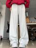 Pantalones deportivos grises para mujer, holgados y adelgazantes, primavera y otoño 2024, cintura alta, informales, pierna ancha, pantalones deportivos americanos pequeños.