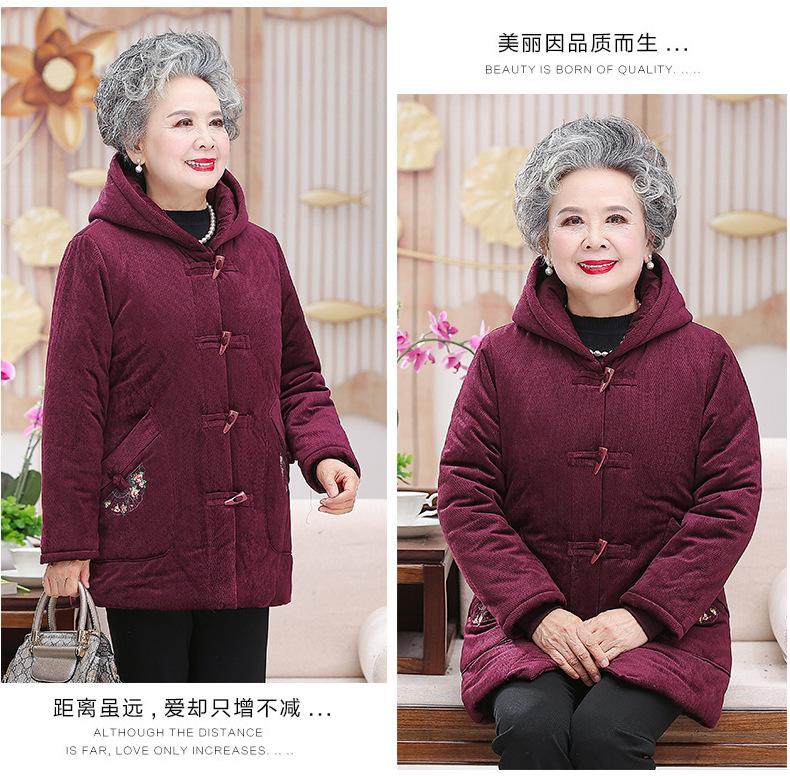 Abrigo de algodón para abuela al por mayor con forro polar de invierno ropa para mujer de 80 años abrigo de algodón suave para madre no fresco abrigo grueso