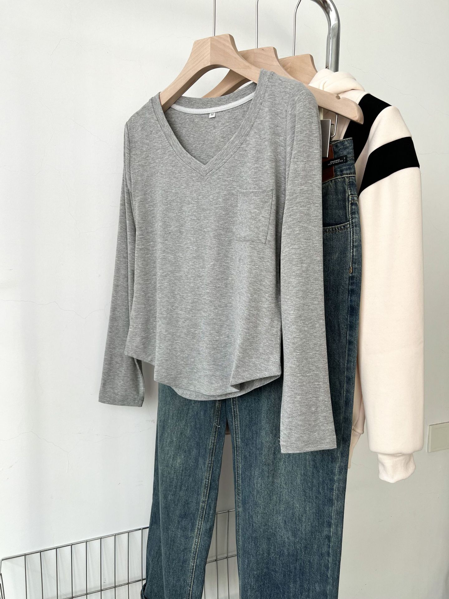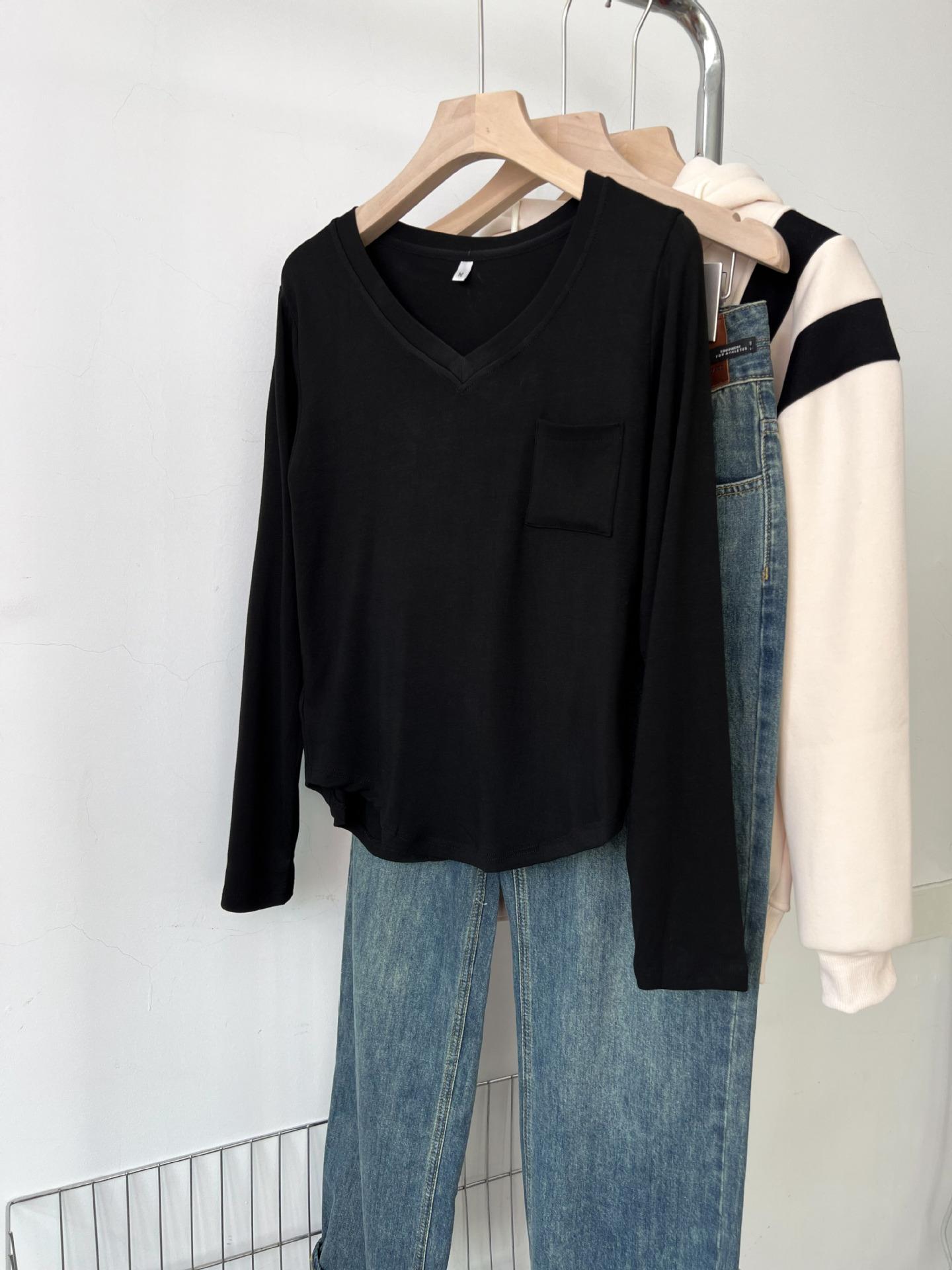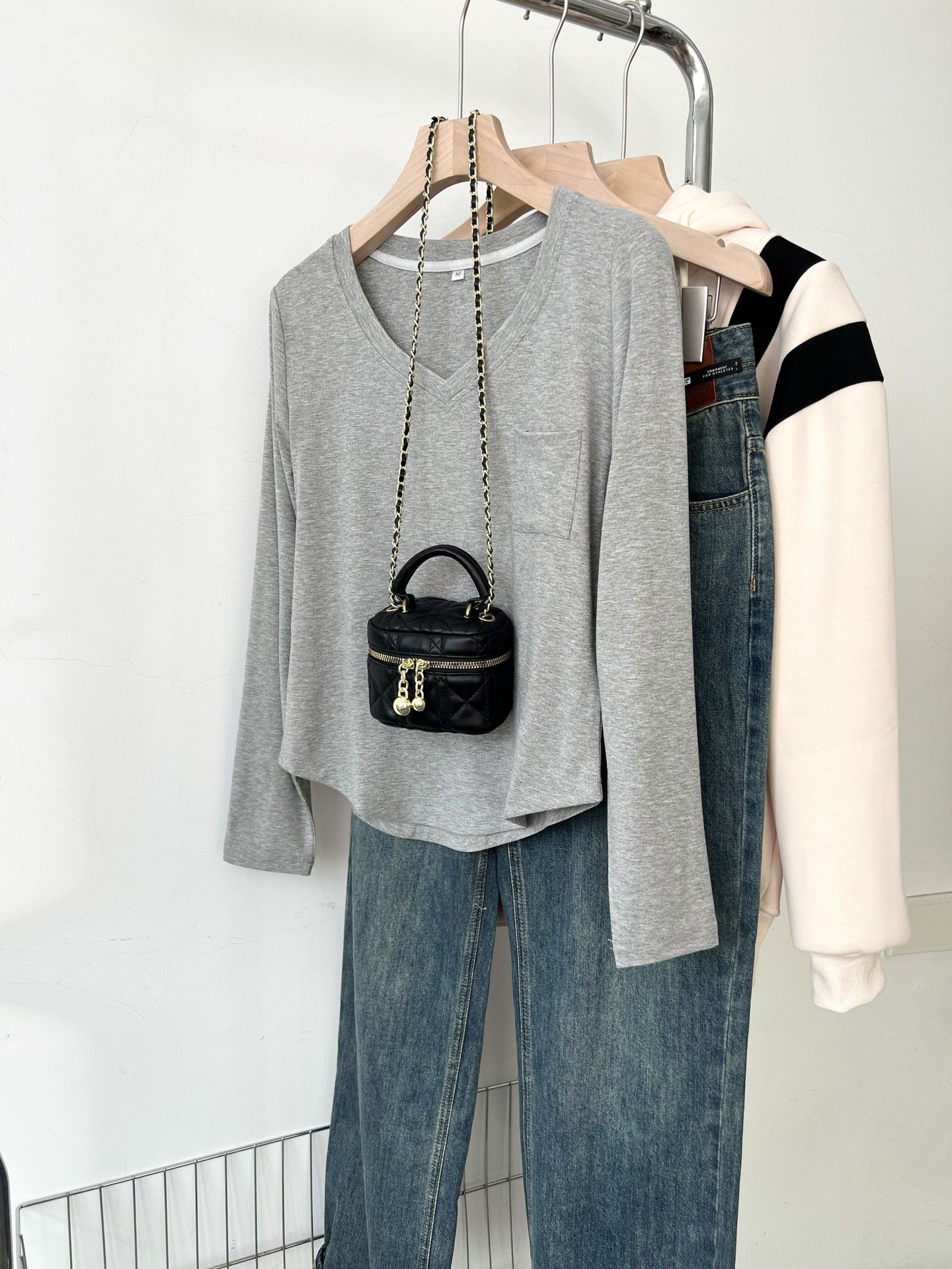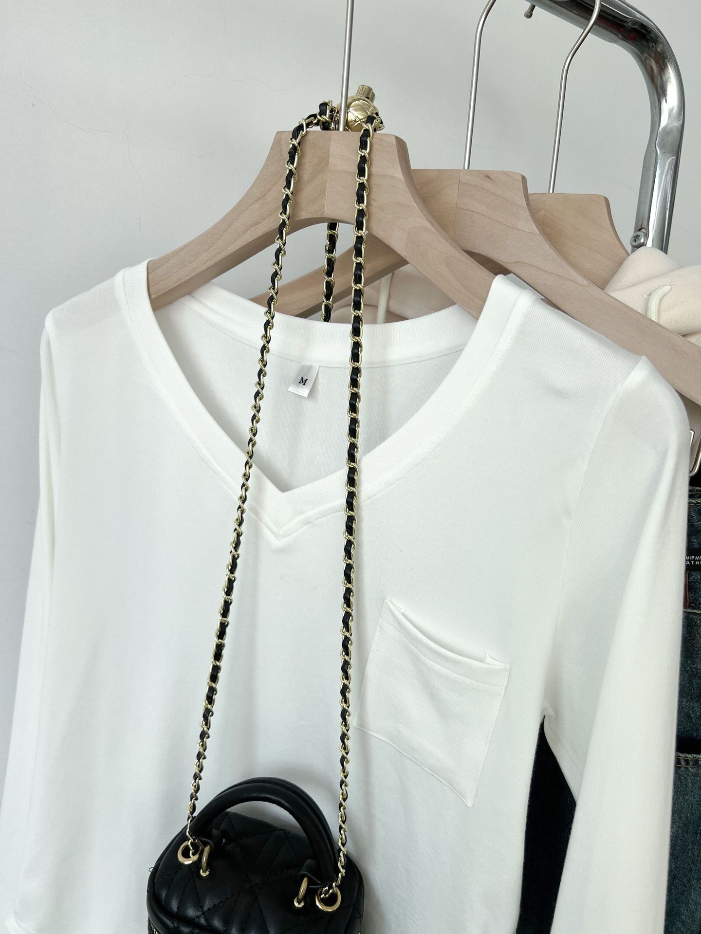 Camiseta de manga larga ajustada con cuello en V para mujer, novedad de otoño e invierno de 2024, camisa interior con temperamento de talla grande, chaqueta al por mayor