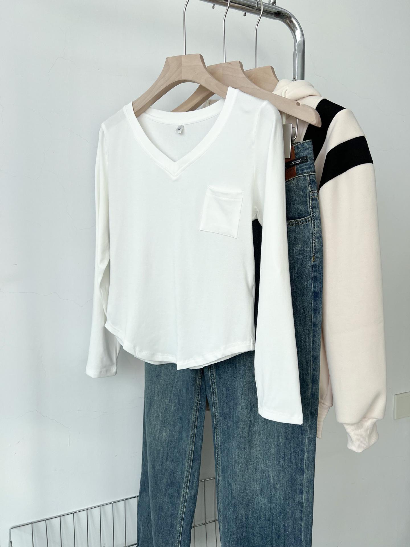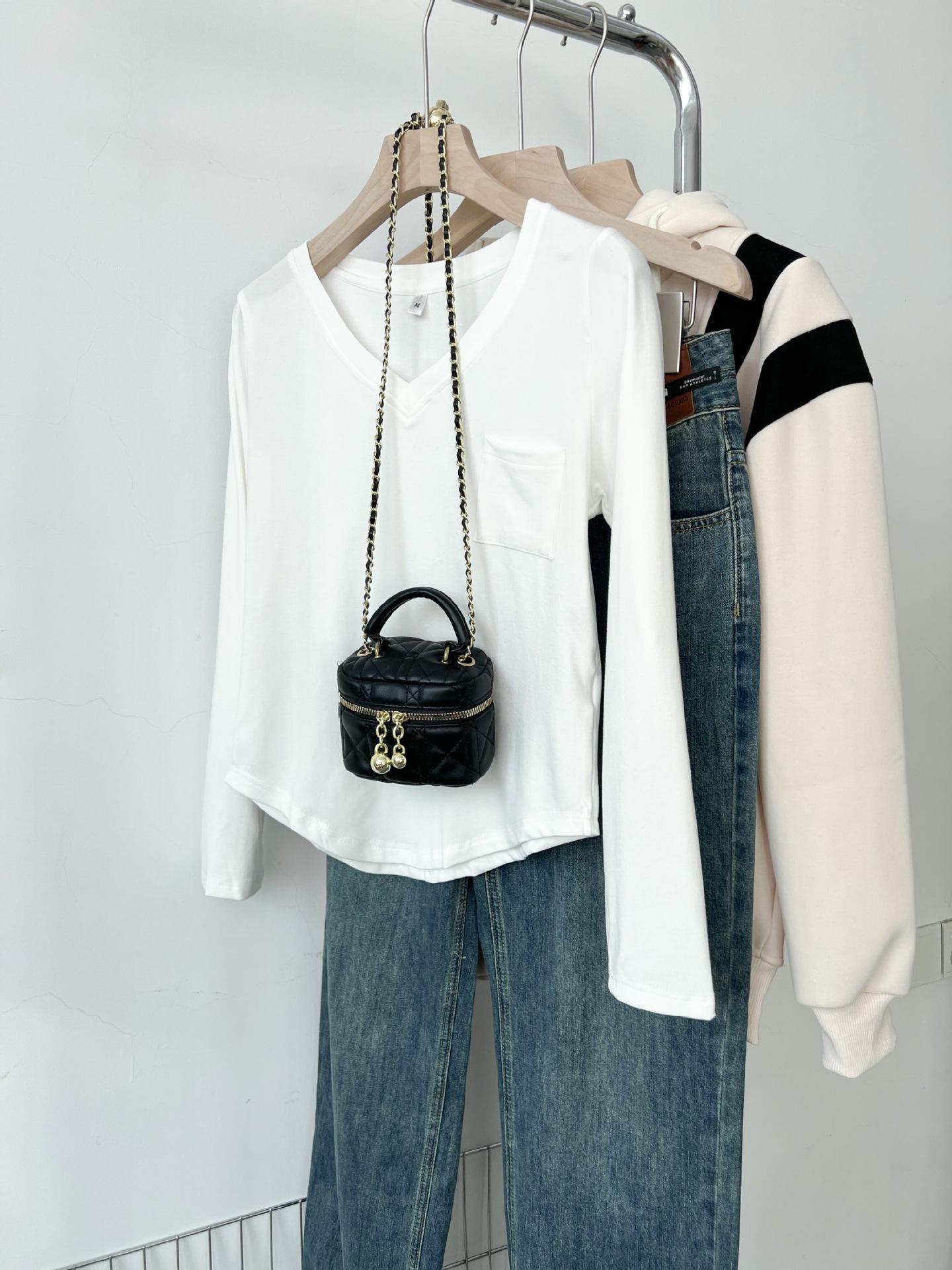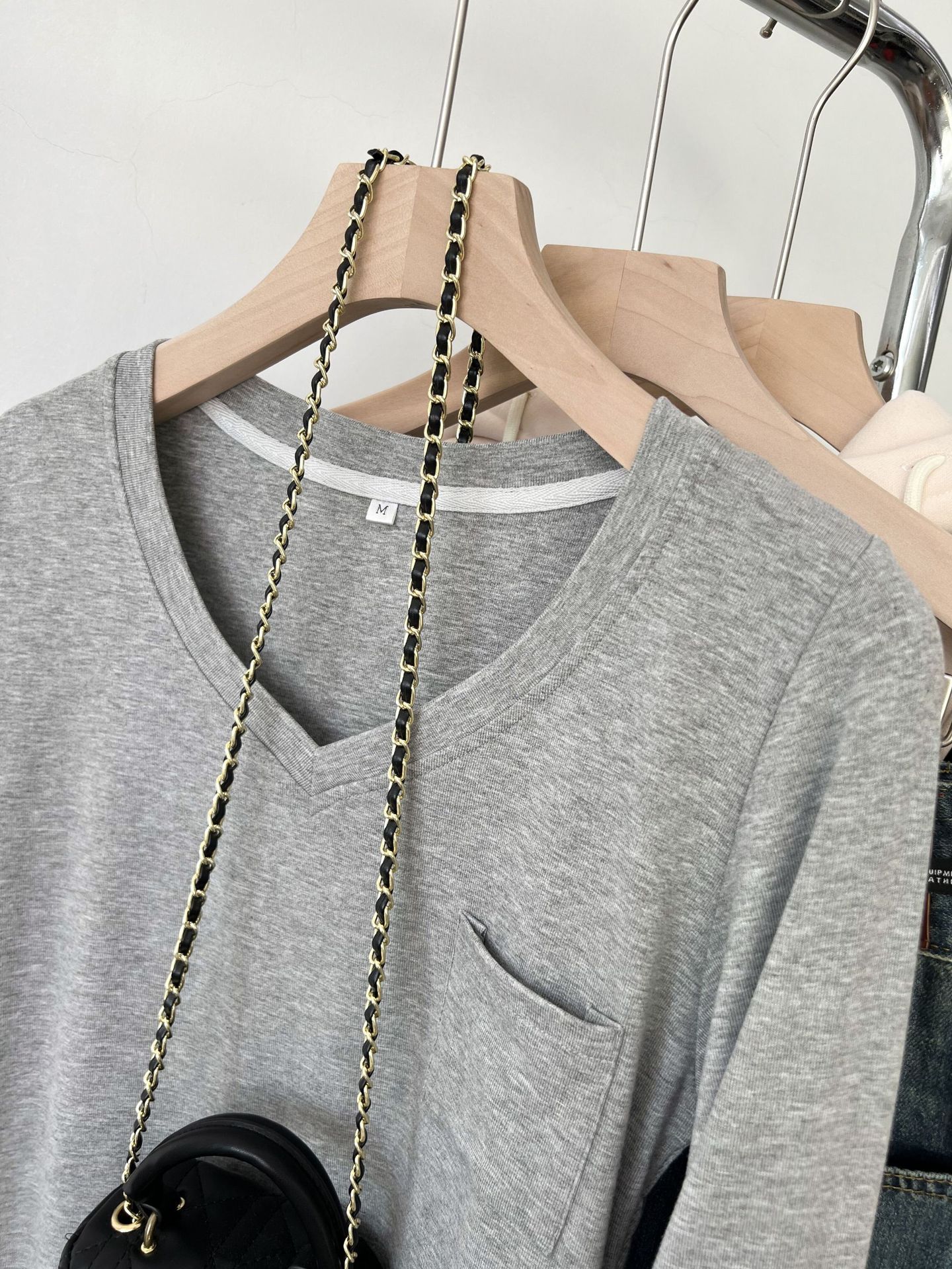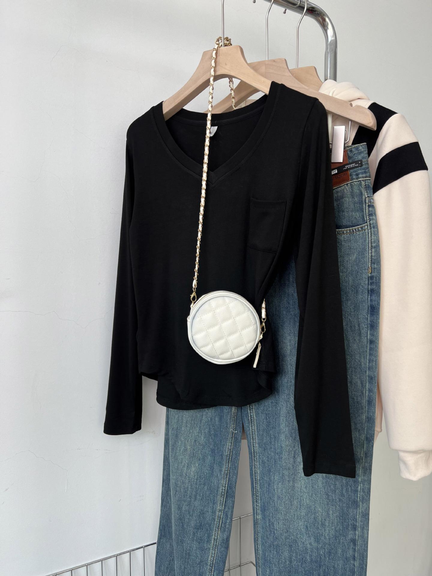 Camiseta de manga larga ajustada con cuello en V para mujer, novedad de otoño e invierno de 2024, camisa interior con temperamento de talla grande, chaqueta al por mayor