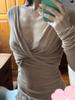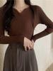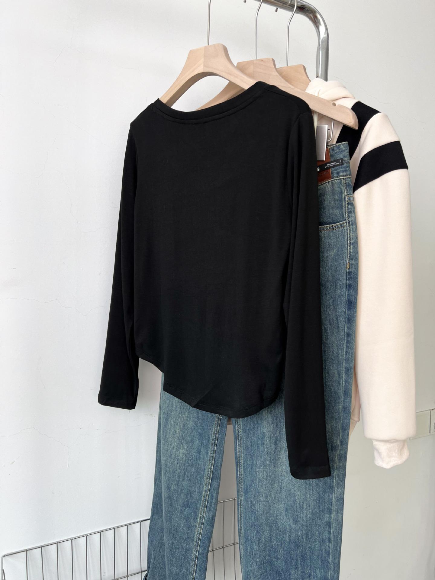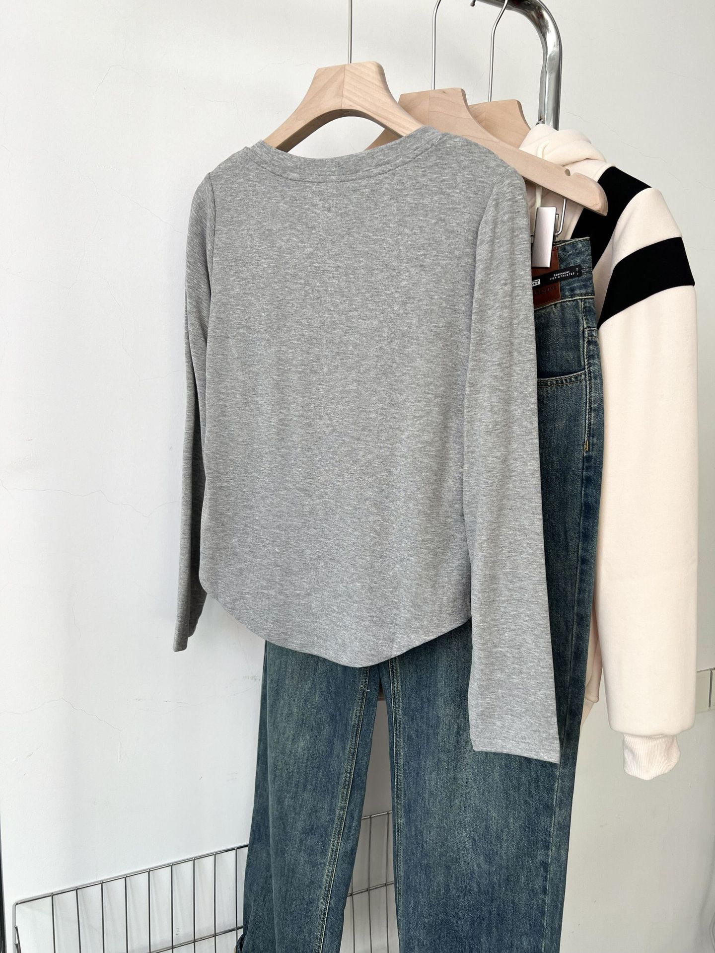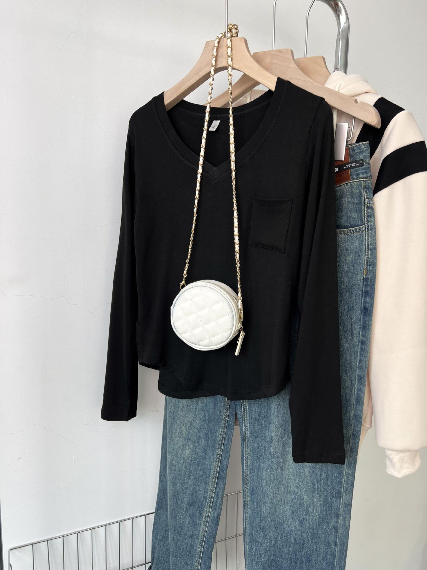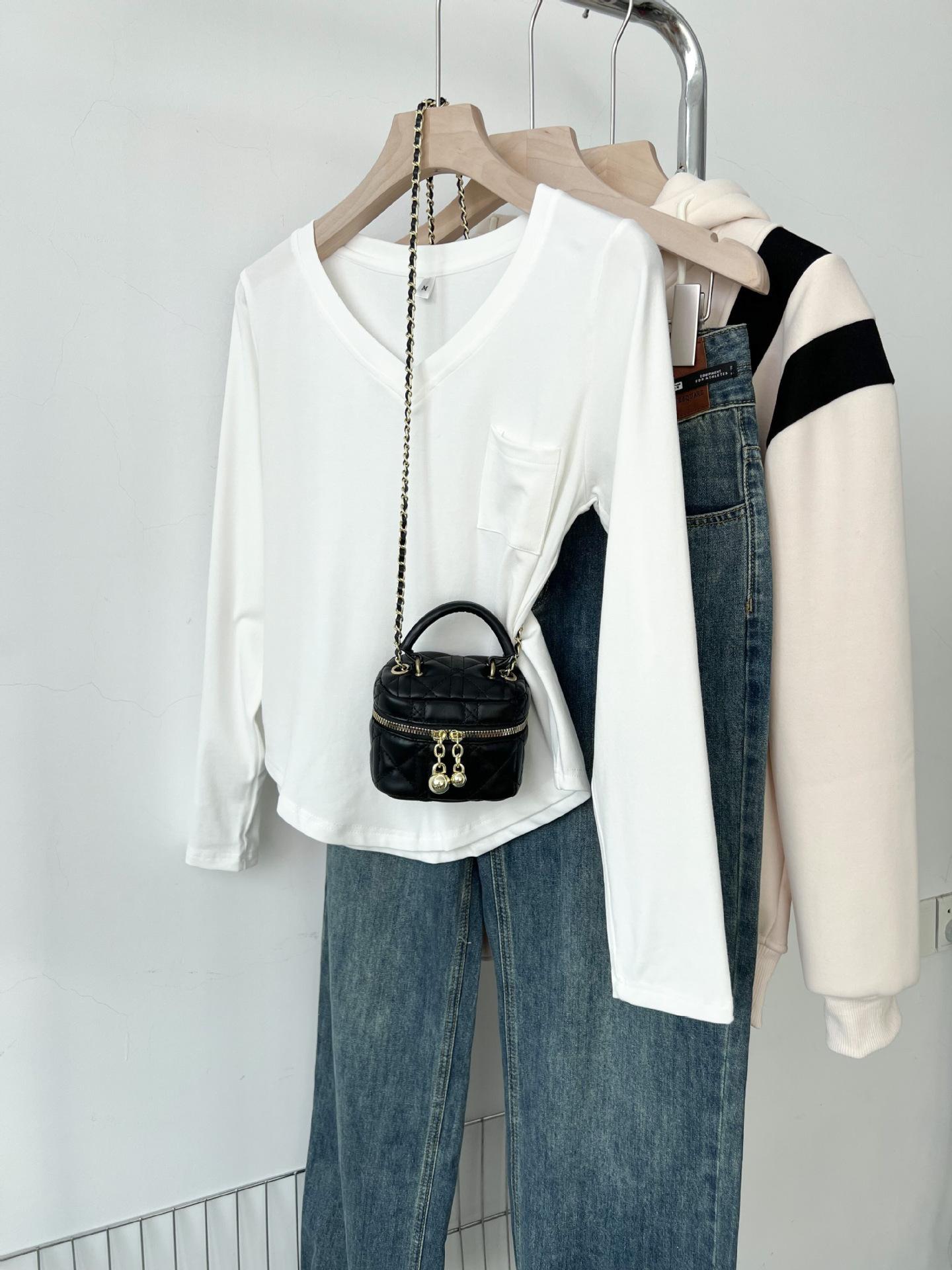 Camiseta de manga larga ajustada con cuello en V para mujer, novedad de otoño e invierno de 2024, camisa interior con temperamento de talla grande, chaqueta al por mayor