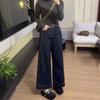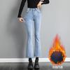Pantalones vaqueros vintage de cintura alta lavados para mujer, otoño e invierno 2024, nuevos pantalones largos casuales de pierna recta gruesa con forro polar