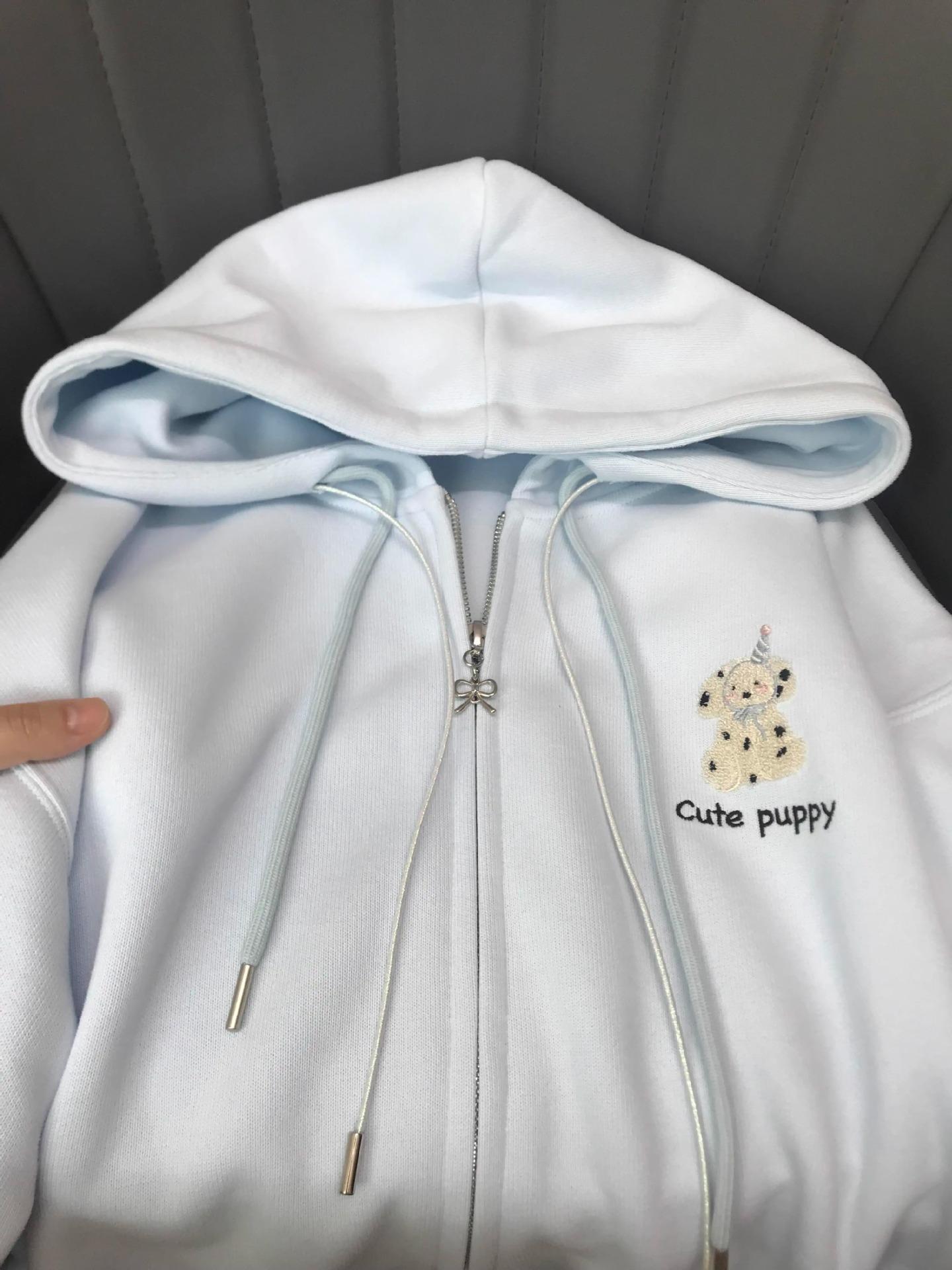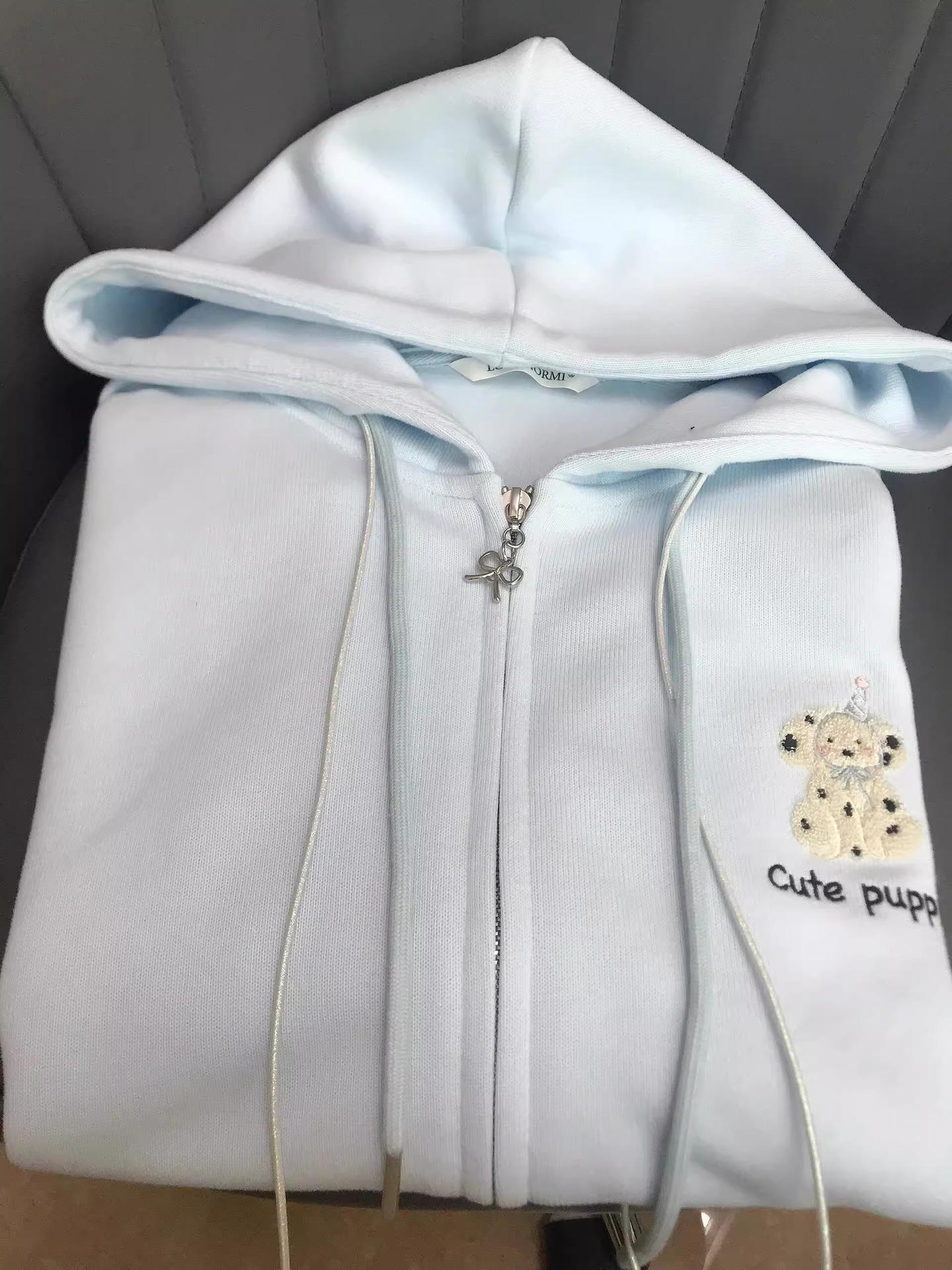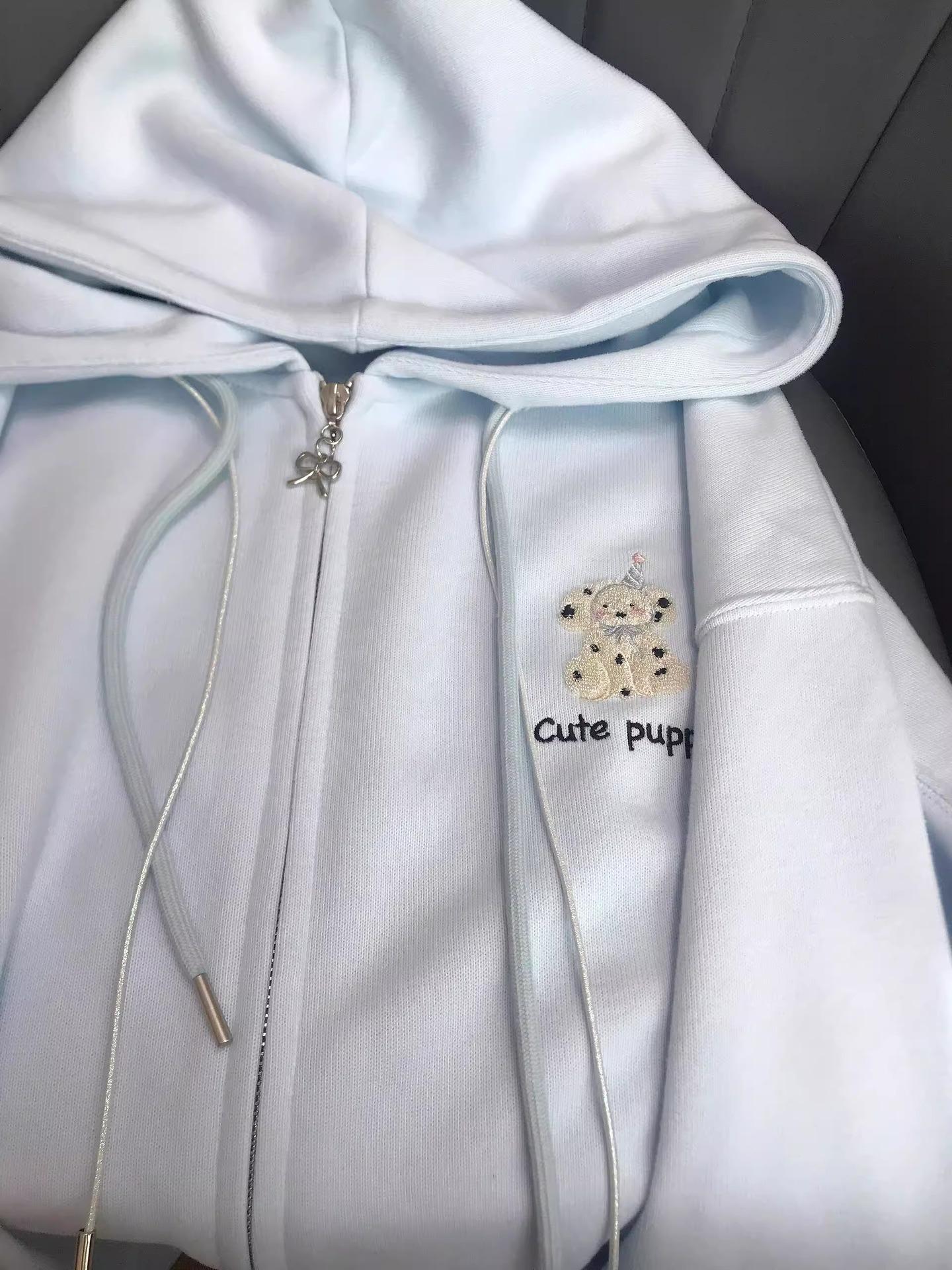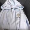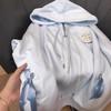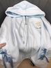 Azul claro Suéter Cárdigan con Capucha Bordado con Lazo para Mujer Primavera y Otoño Diseño Holgado Estilo Lazy Sentido del Diseño Abrigo fufu de Leche
